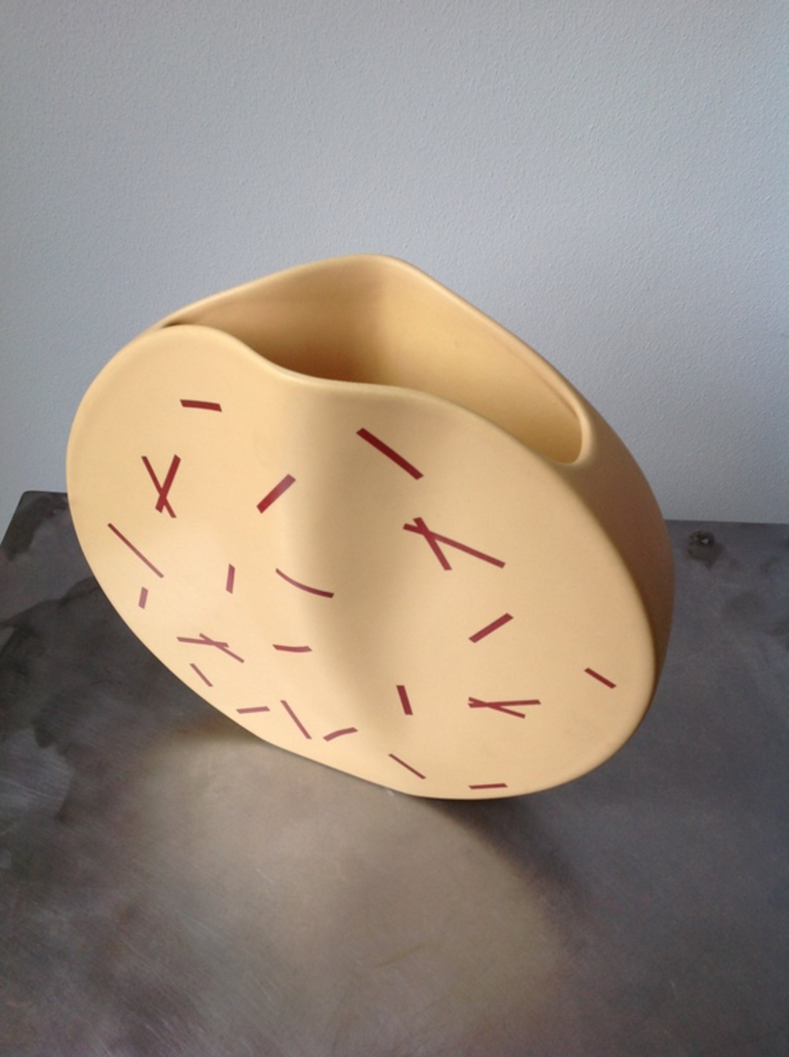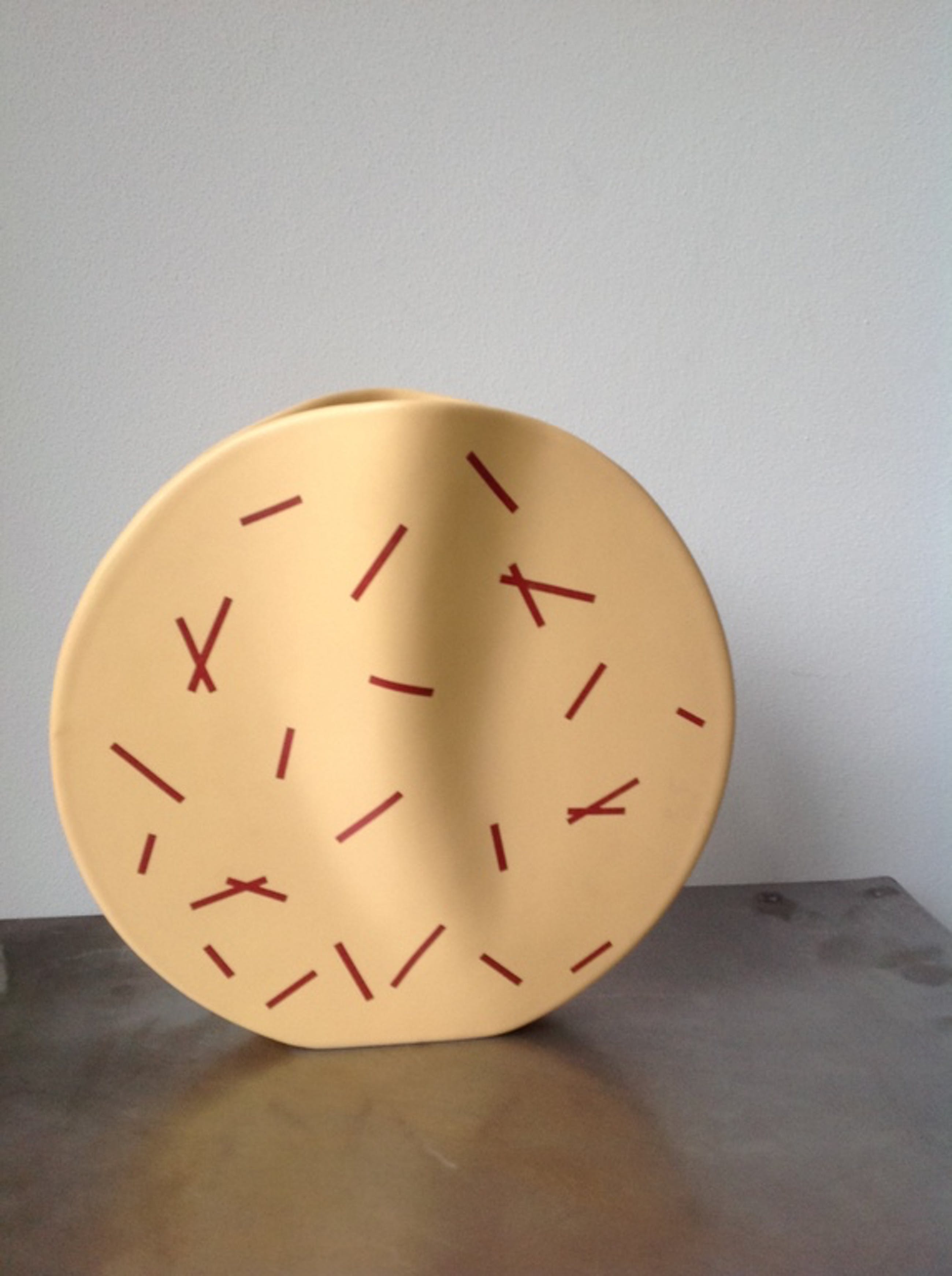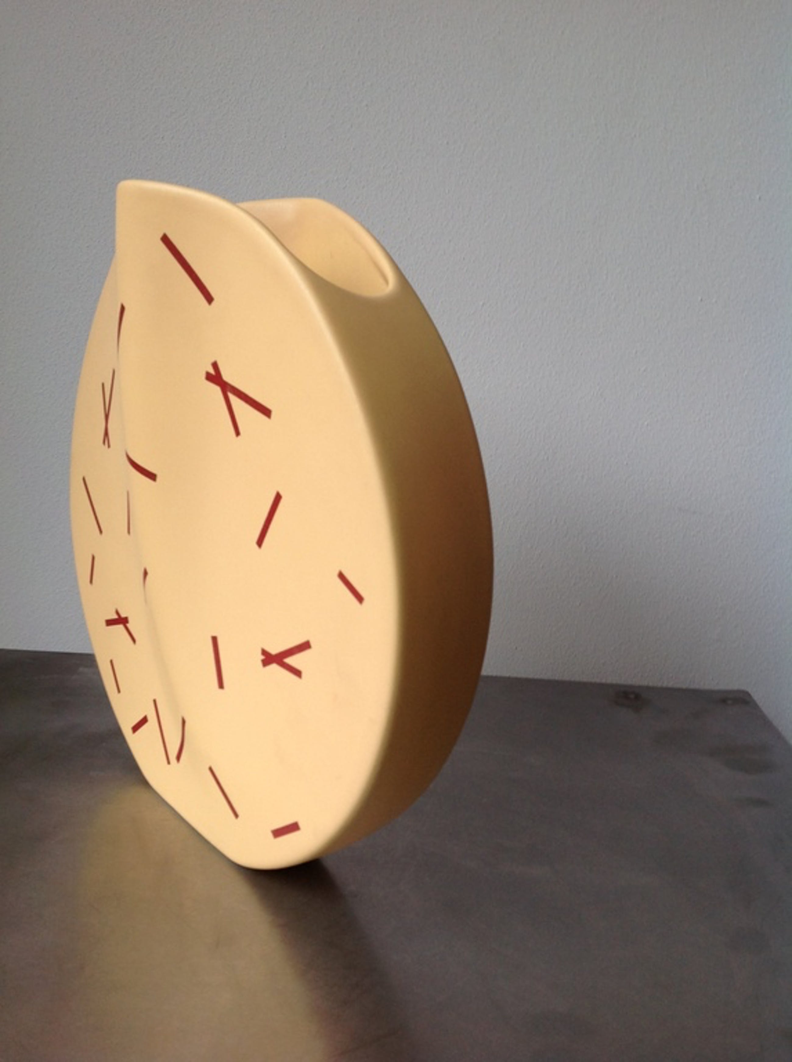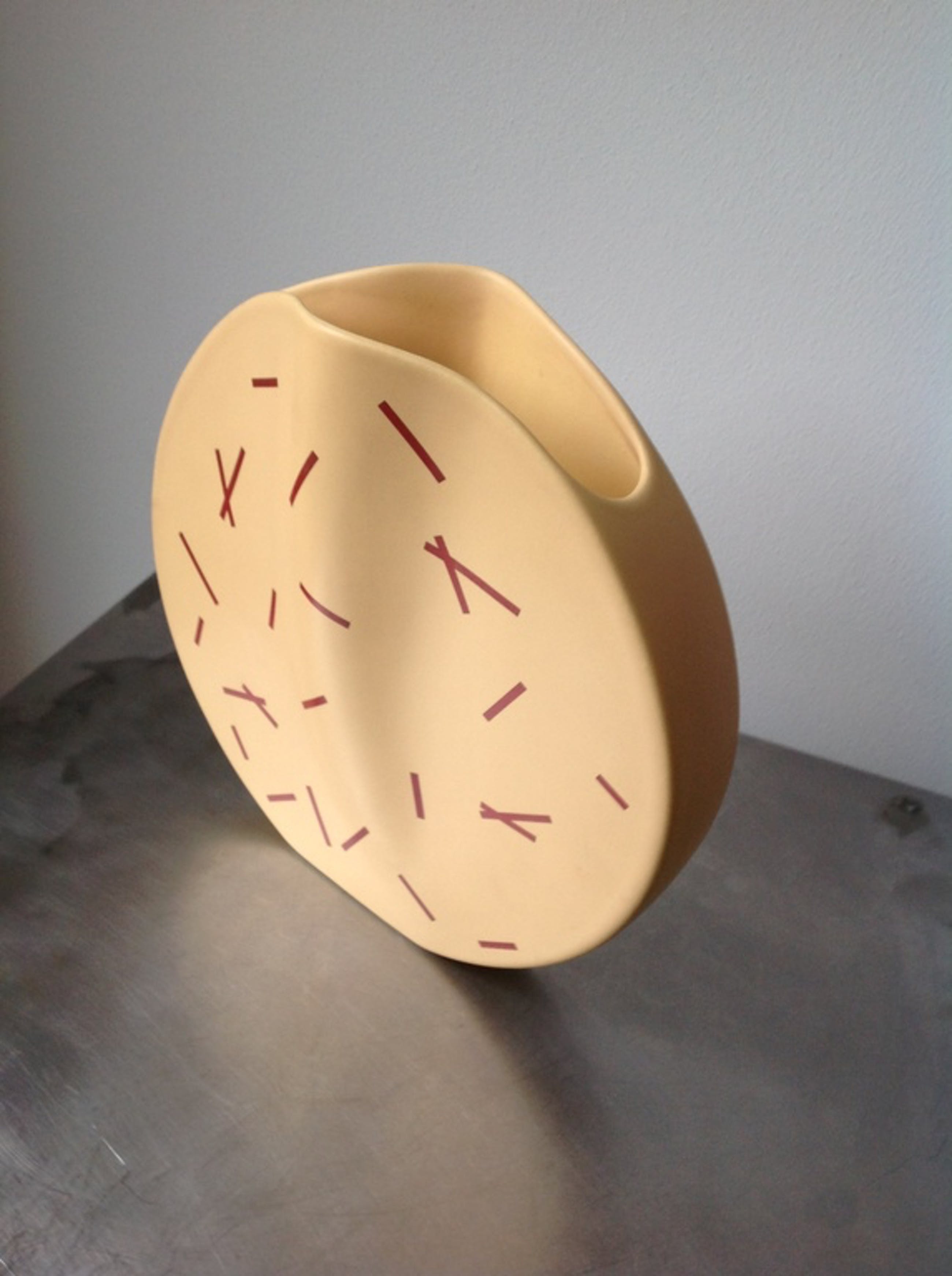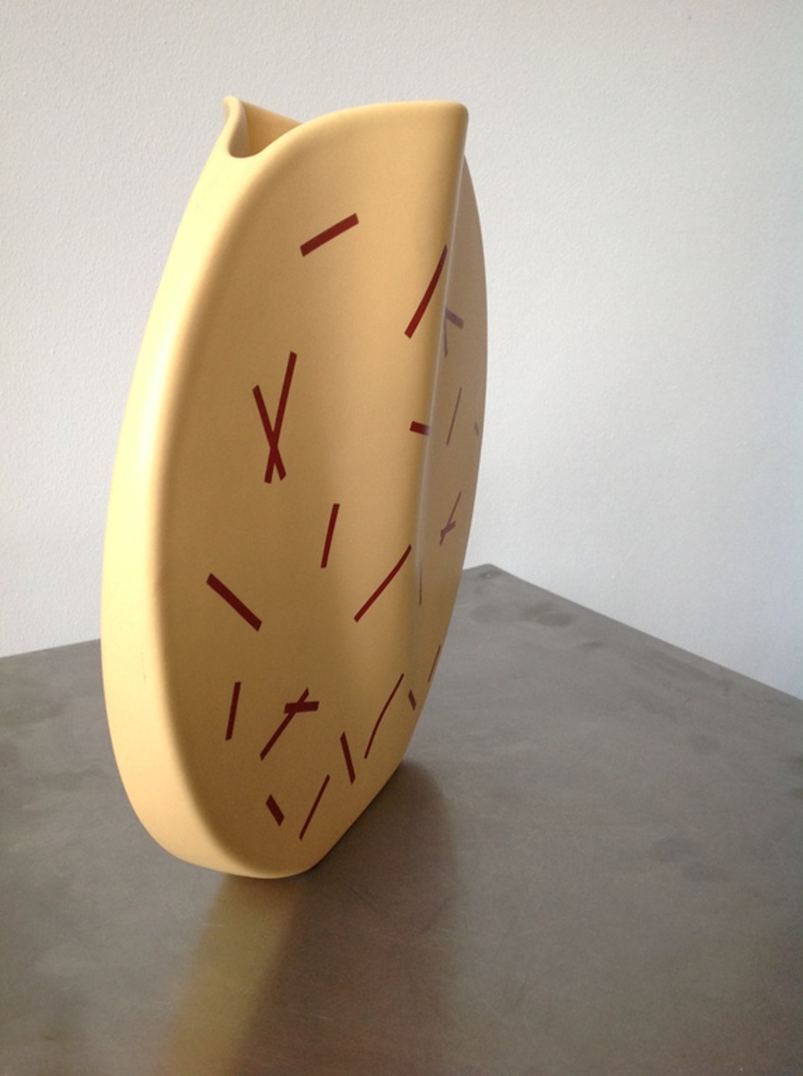 Zeldzame uitvoering van de Cirkelvaas met plooi. Een ontwerp van Dorothé van Agthoven voor Flora Keramiek in Hardenberg. Eind jaren '80/ begin jaren '90.