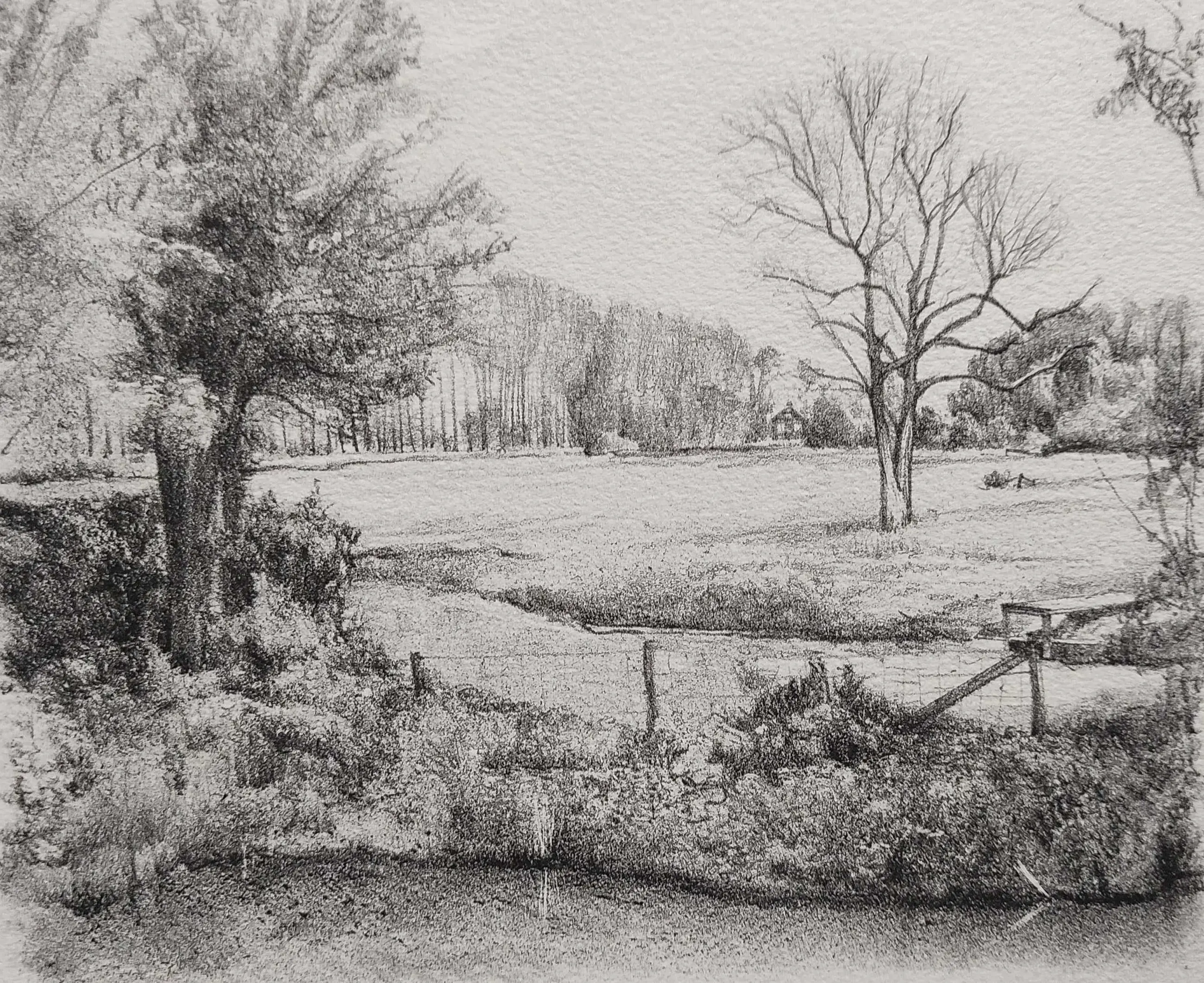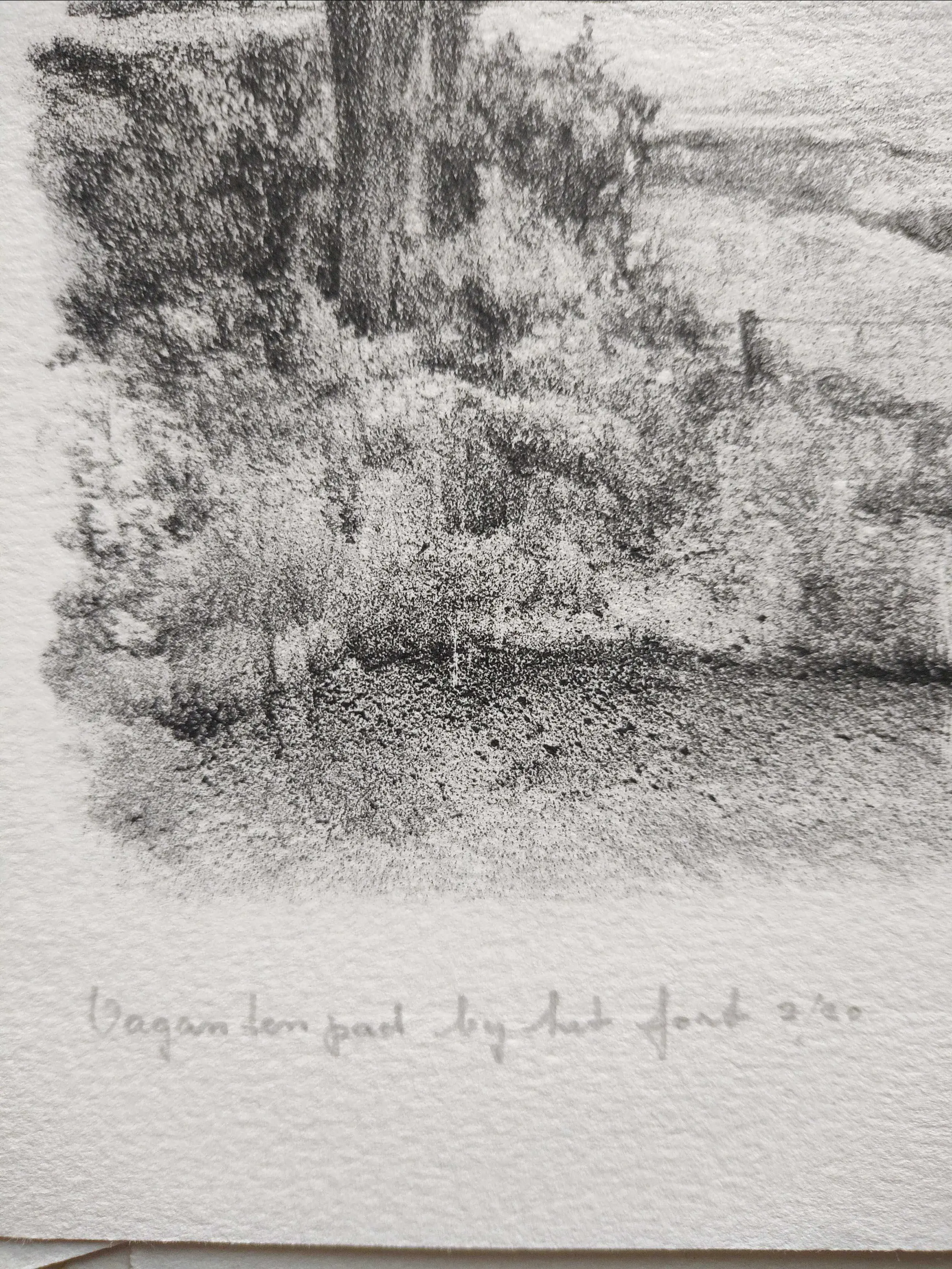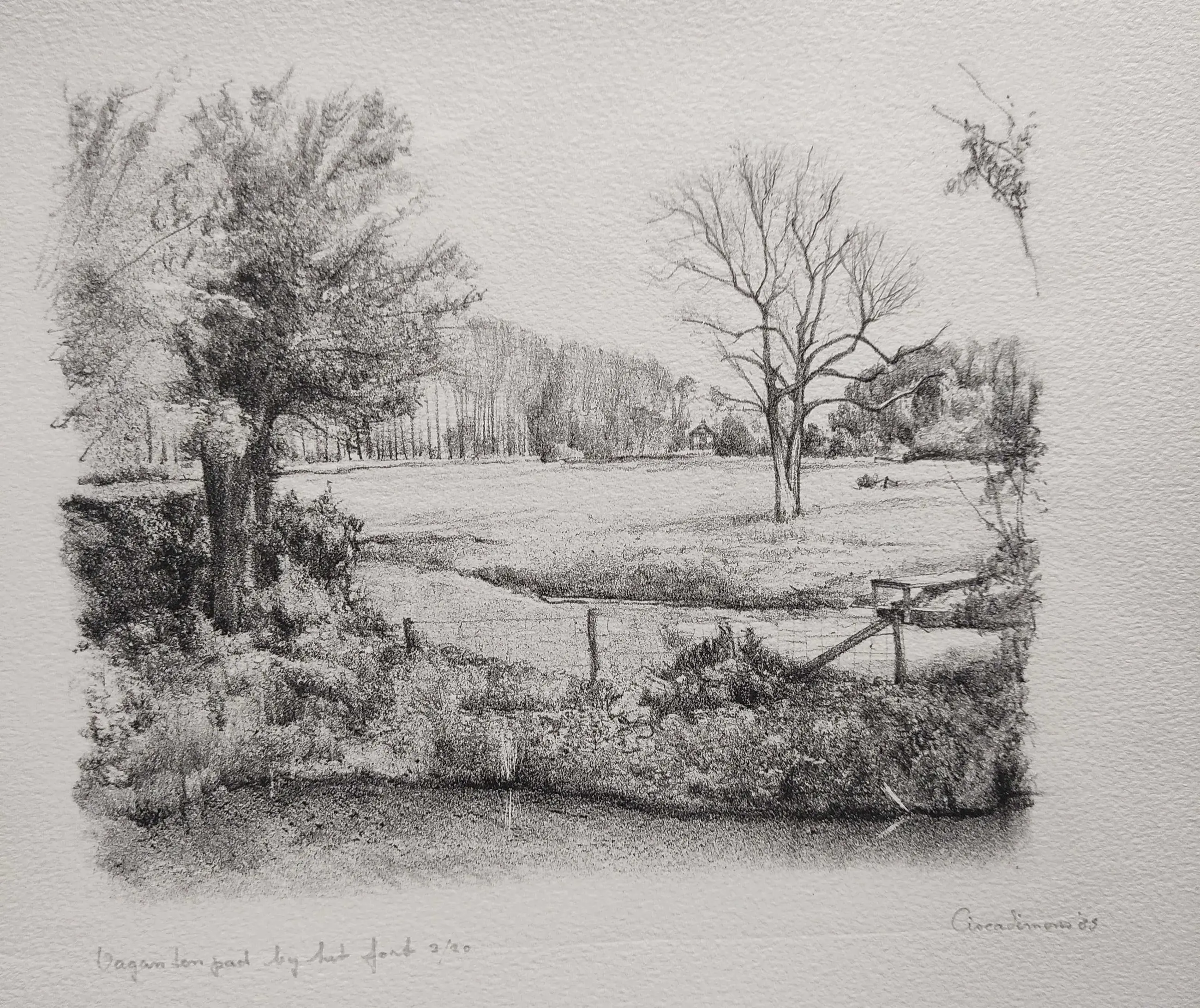 Gesigneerd: 'Cisca Simons' Gedateerd: ''85' Getiteld: 'Vagantenpad bij het fort' (Bunnik) Oplagenrs.: '2/20'