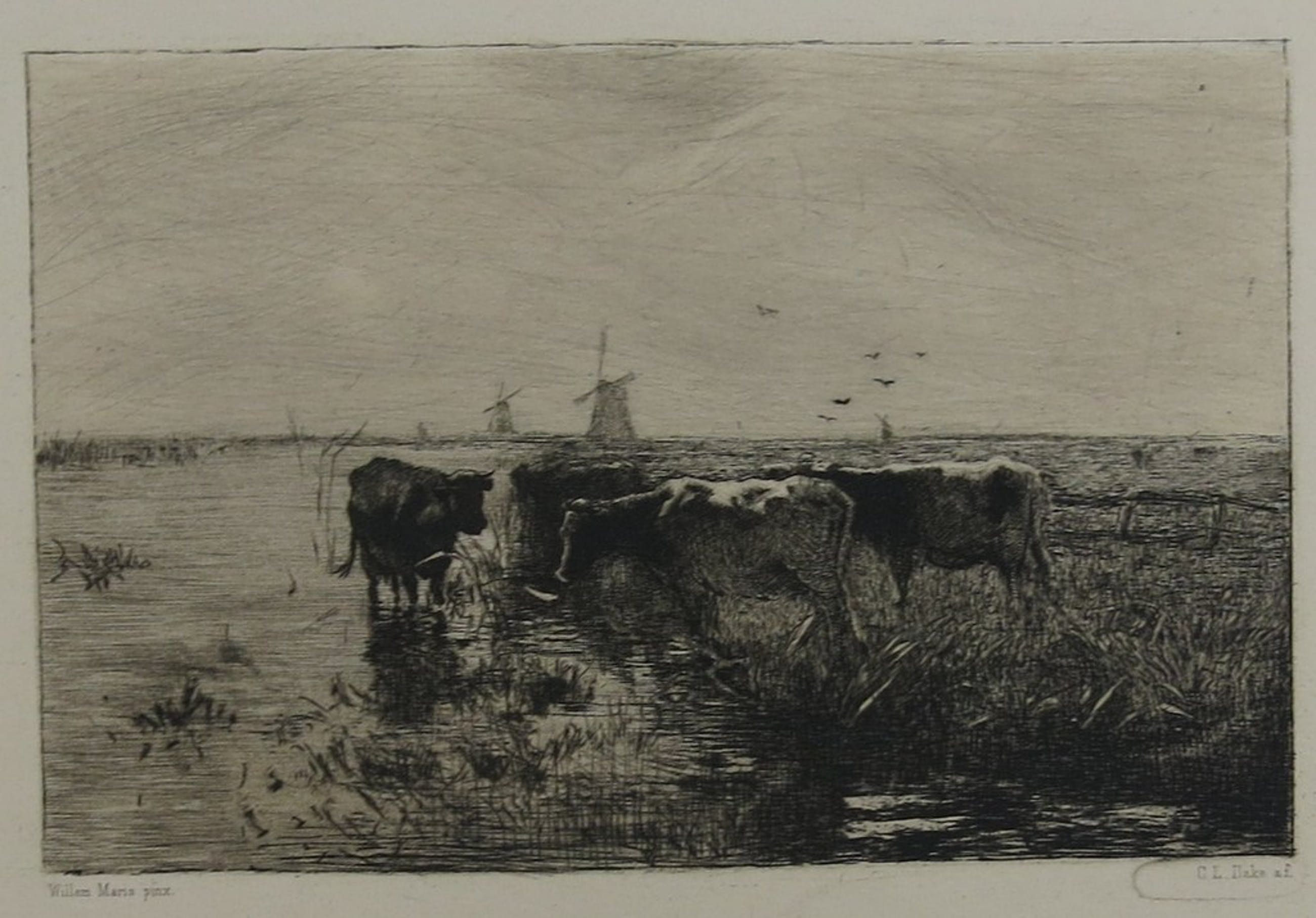 Mooie ets van Carel Lodewijk Dake naar een schilderij van Willem Maris
