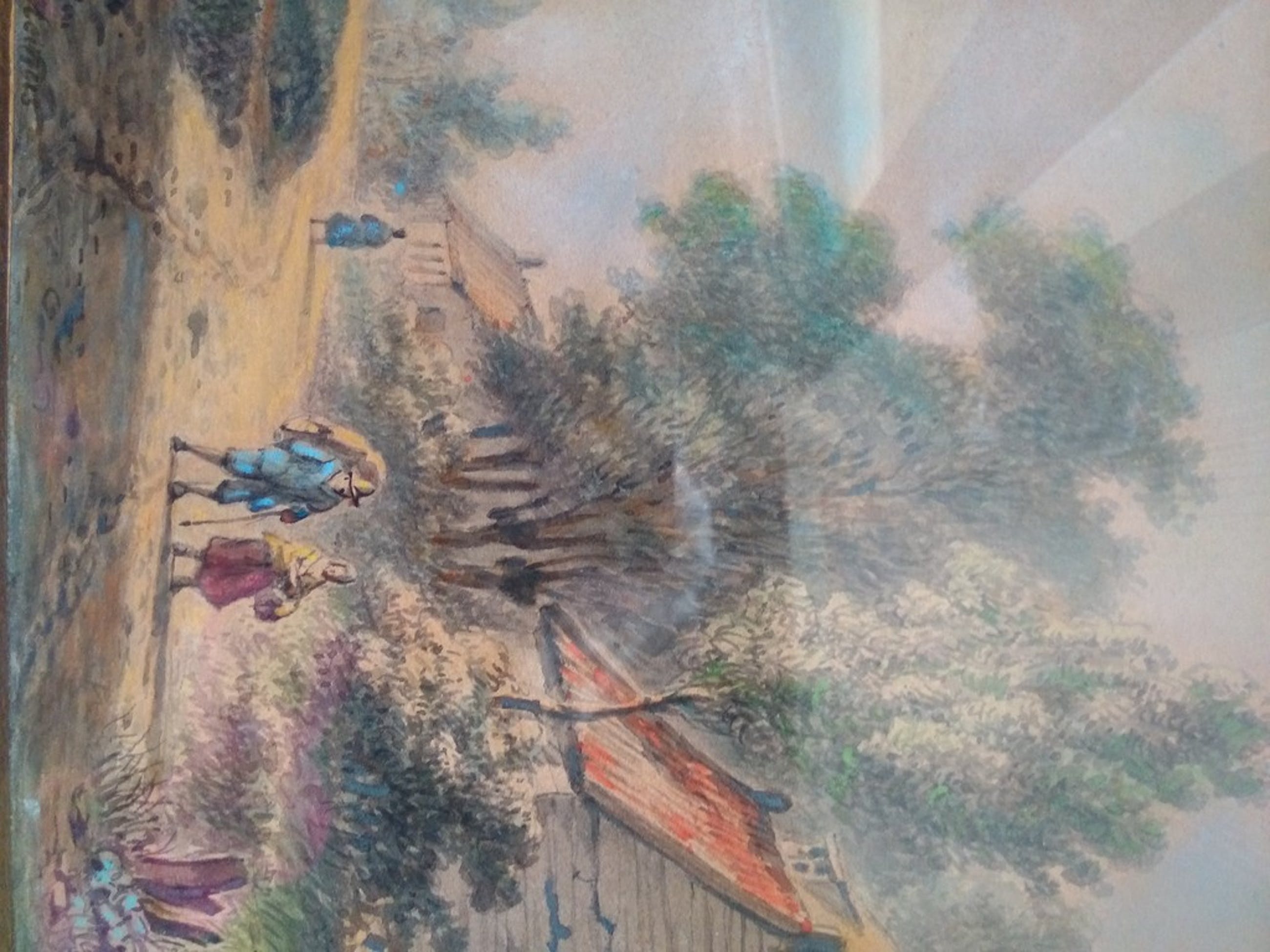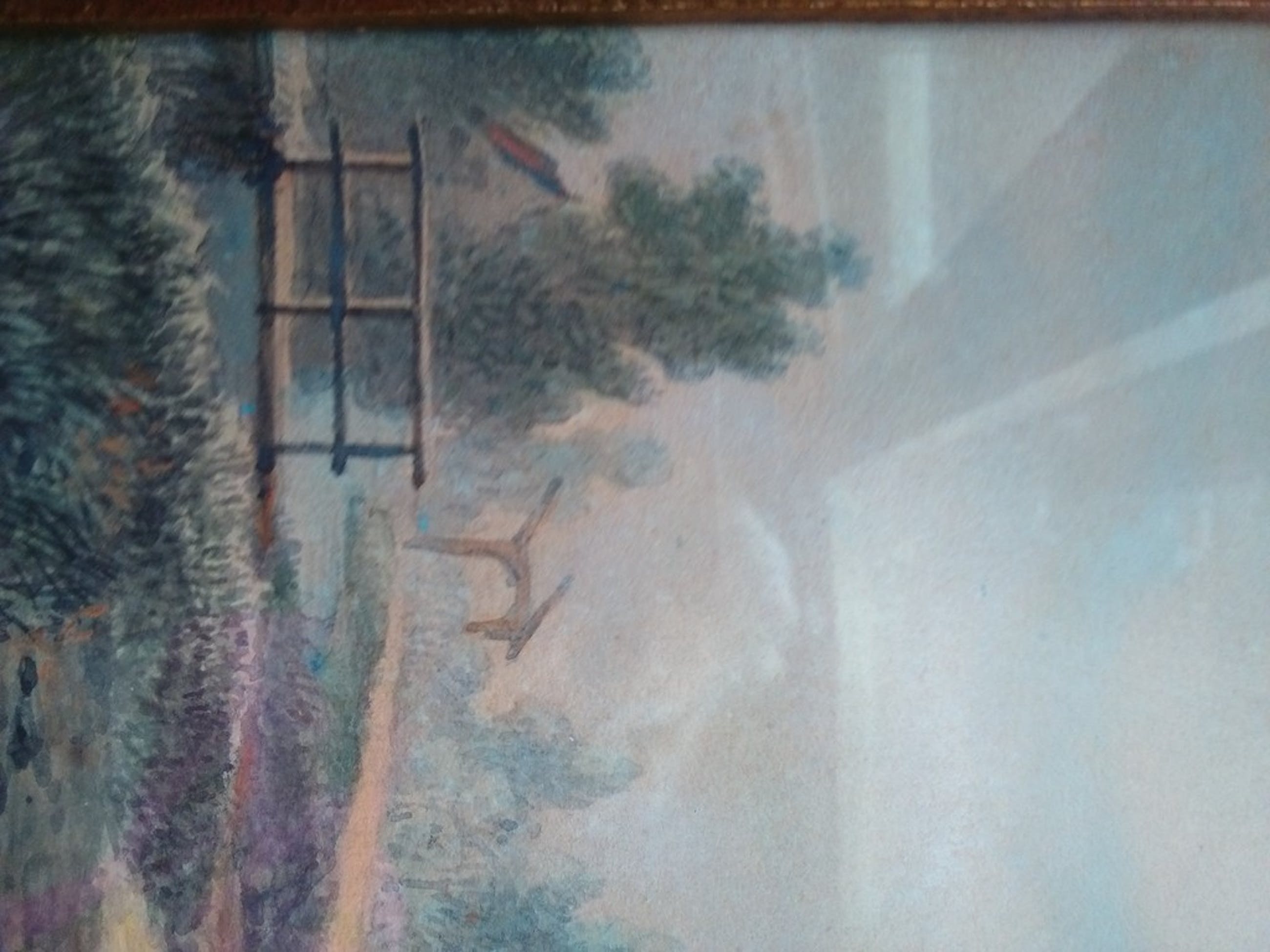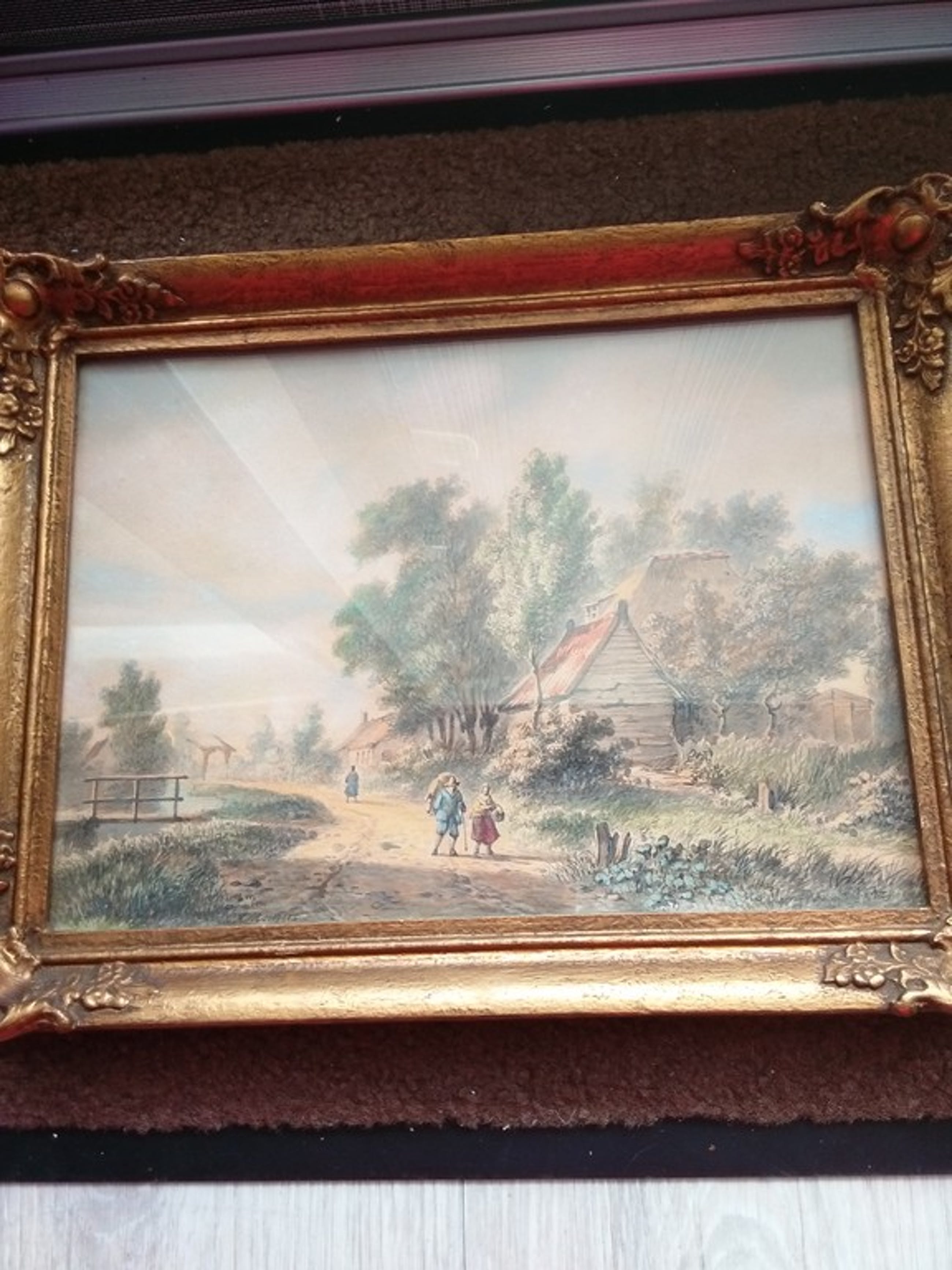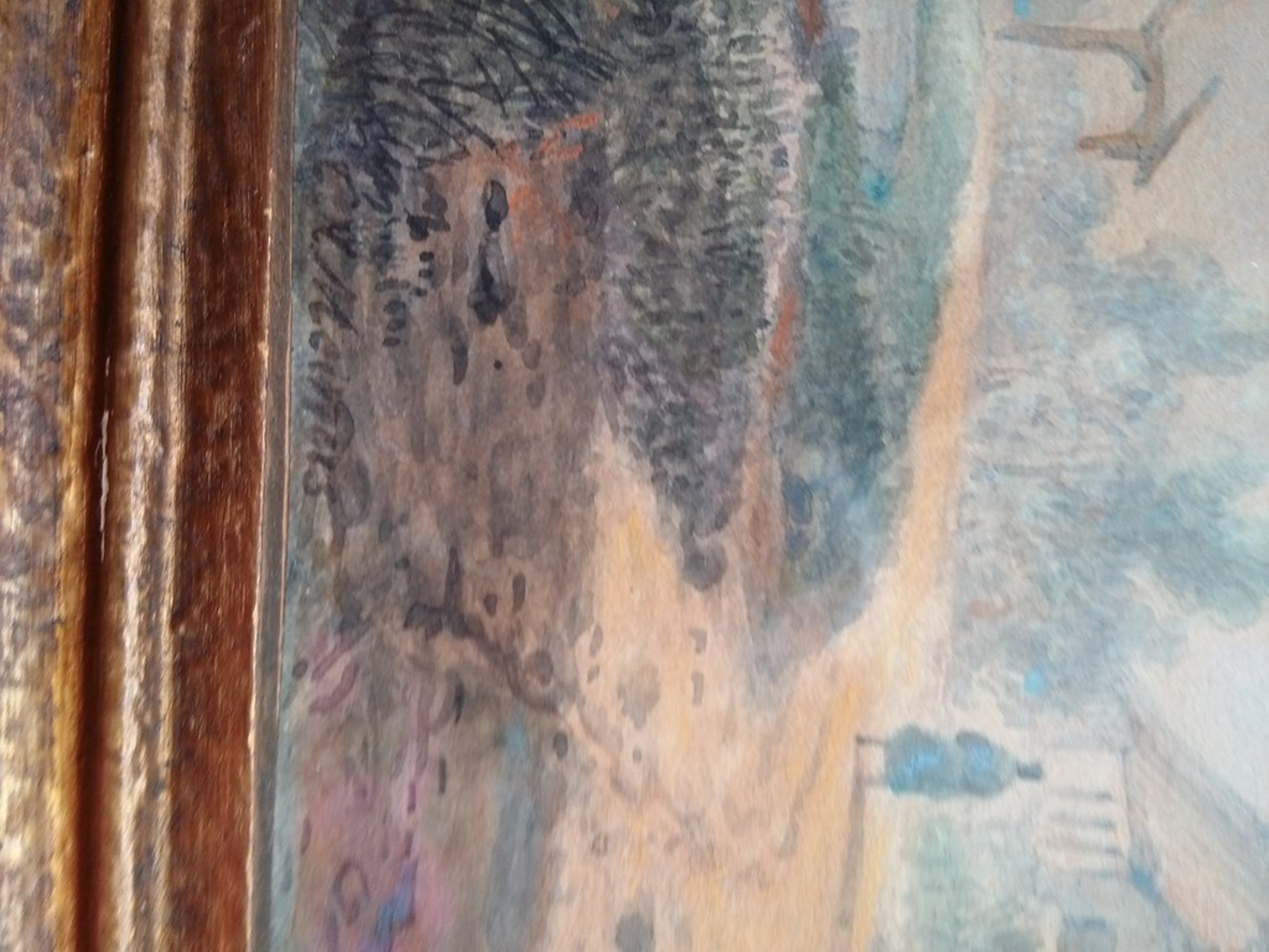 Door kunstenaar gesigneerde aquarel, afmeting 26 x 33 cm, zonder lijst 26,5 x 19,5, geheel in gave staat. Voor levensloopeschrijving zie afbeelding hierna.