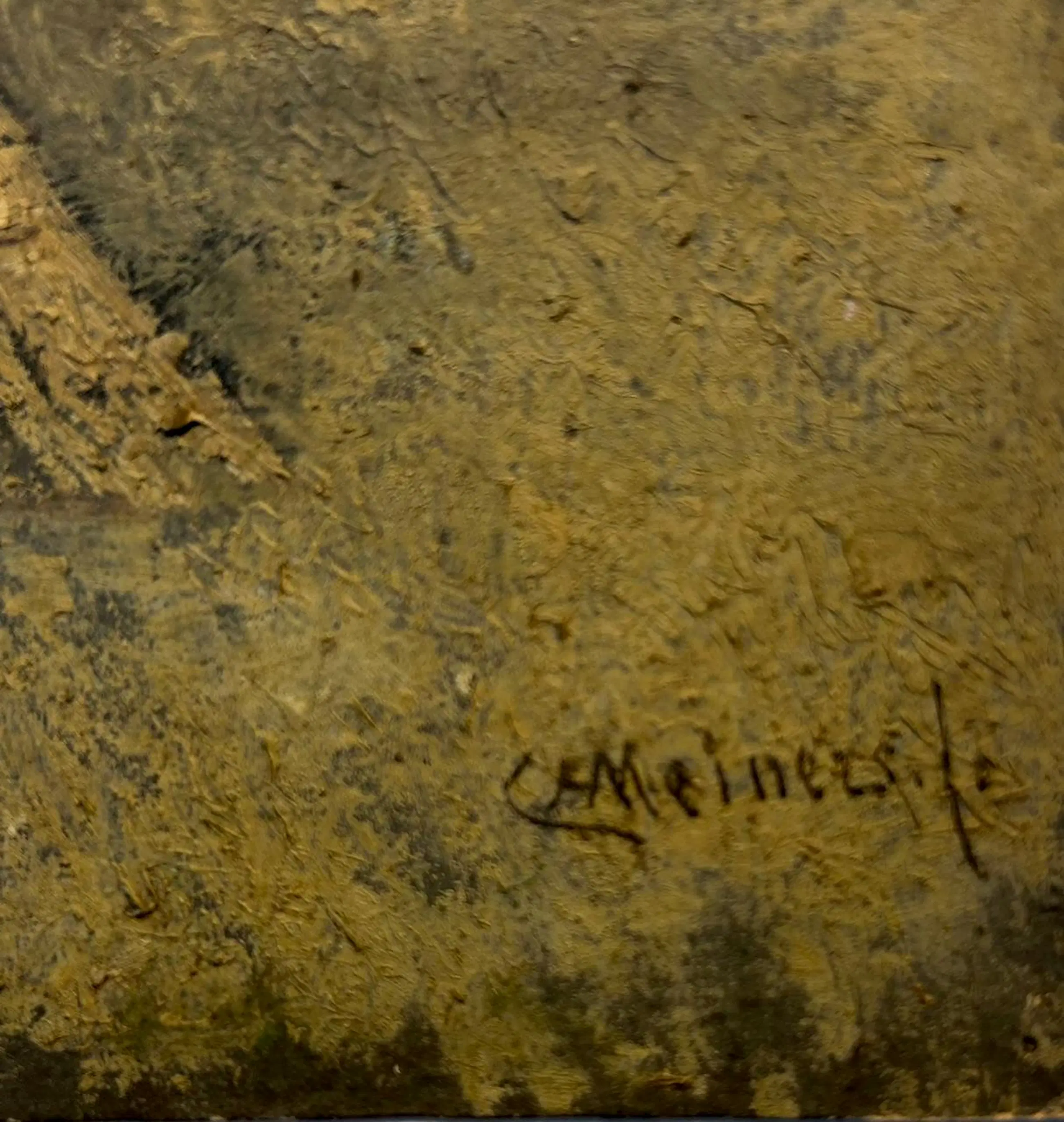 (1) Mooi landschap van Meiners - olieverf op zwaar papier. Beeldmaat 23 bij 32,5 cm.Gesigneerd rechtsonder: "C.H. Meiners f." De lucht is in het echt nog mooier blauw. Eén hoekje heel iets beschadigd - in passe-partout niet zichtbaar (2) Duinlandschap. Olie op papier. Niet gesigneerd maar gekocht samen met het bovenstaande landschap. Beeldmaat 19 bij 20 cm. Randen wat beschadigd - niet zichtbaar achter passe-partout