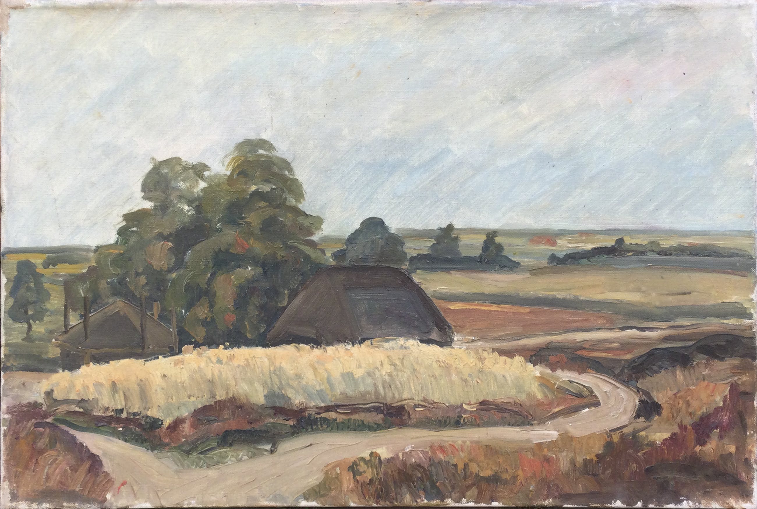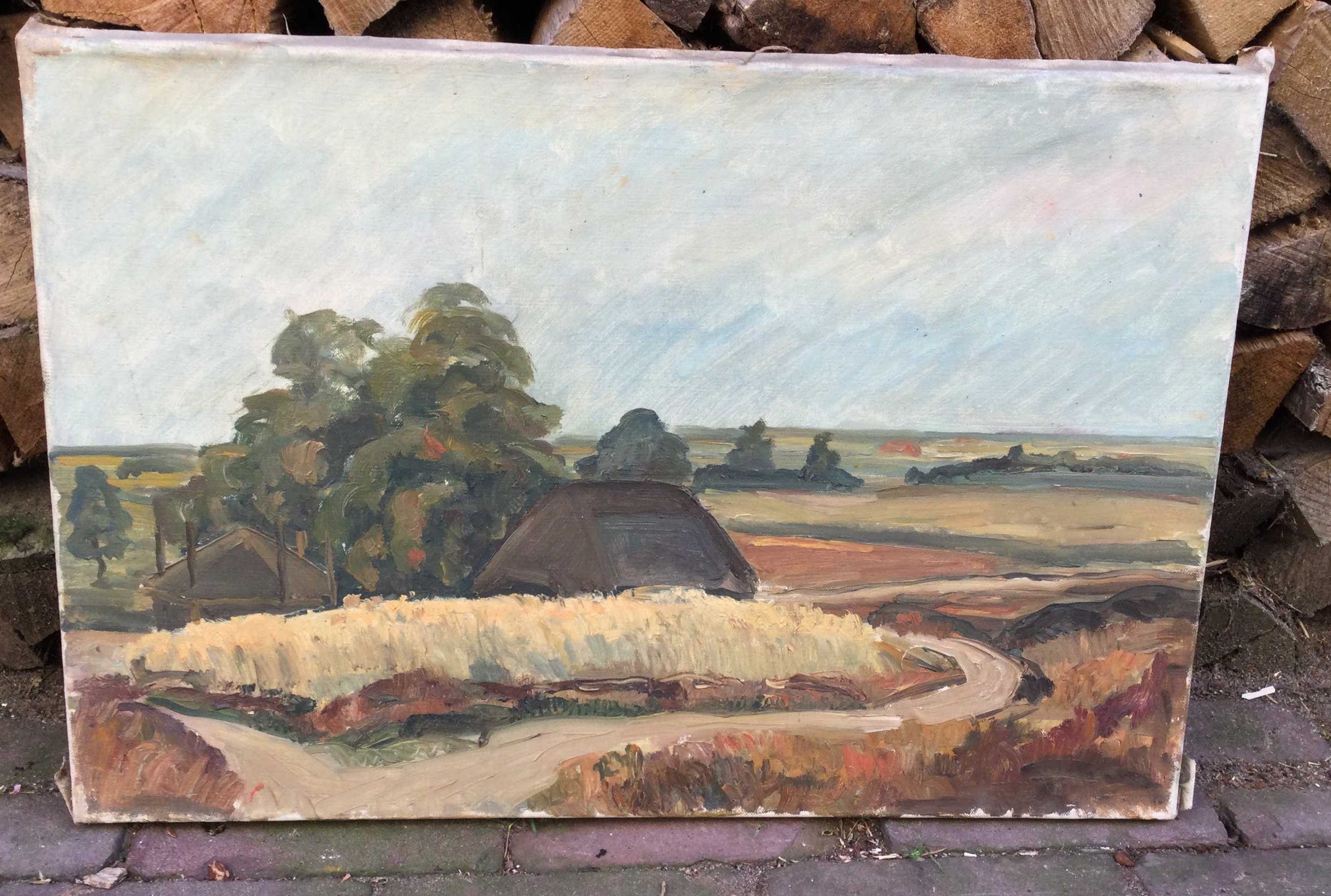 | Doek bevat oppervlaktevuil en verkleurde vernis door de tijd. | |