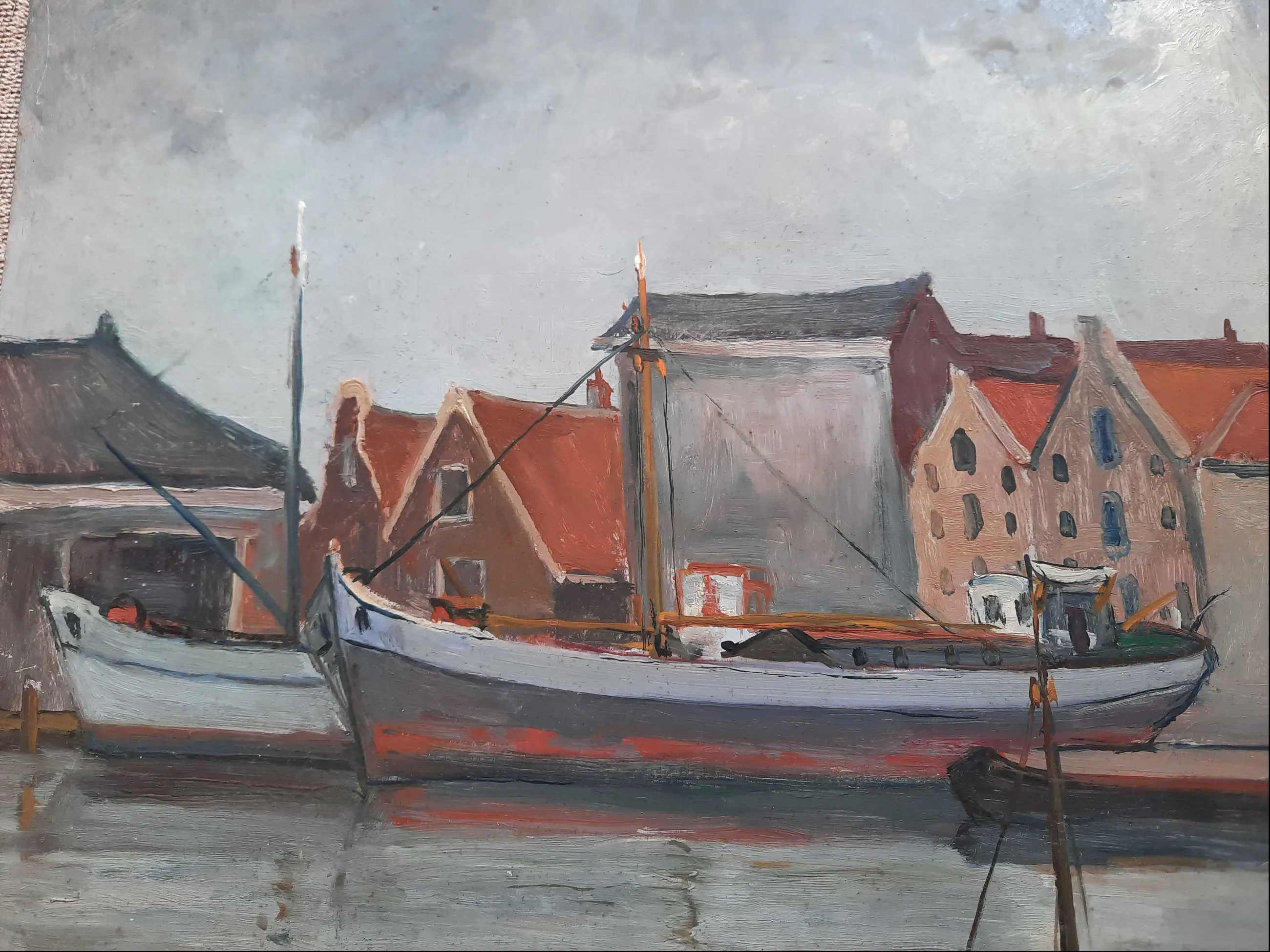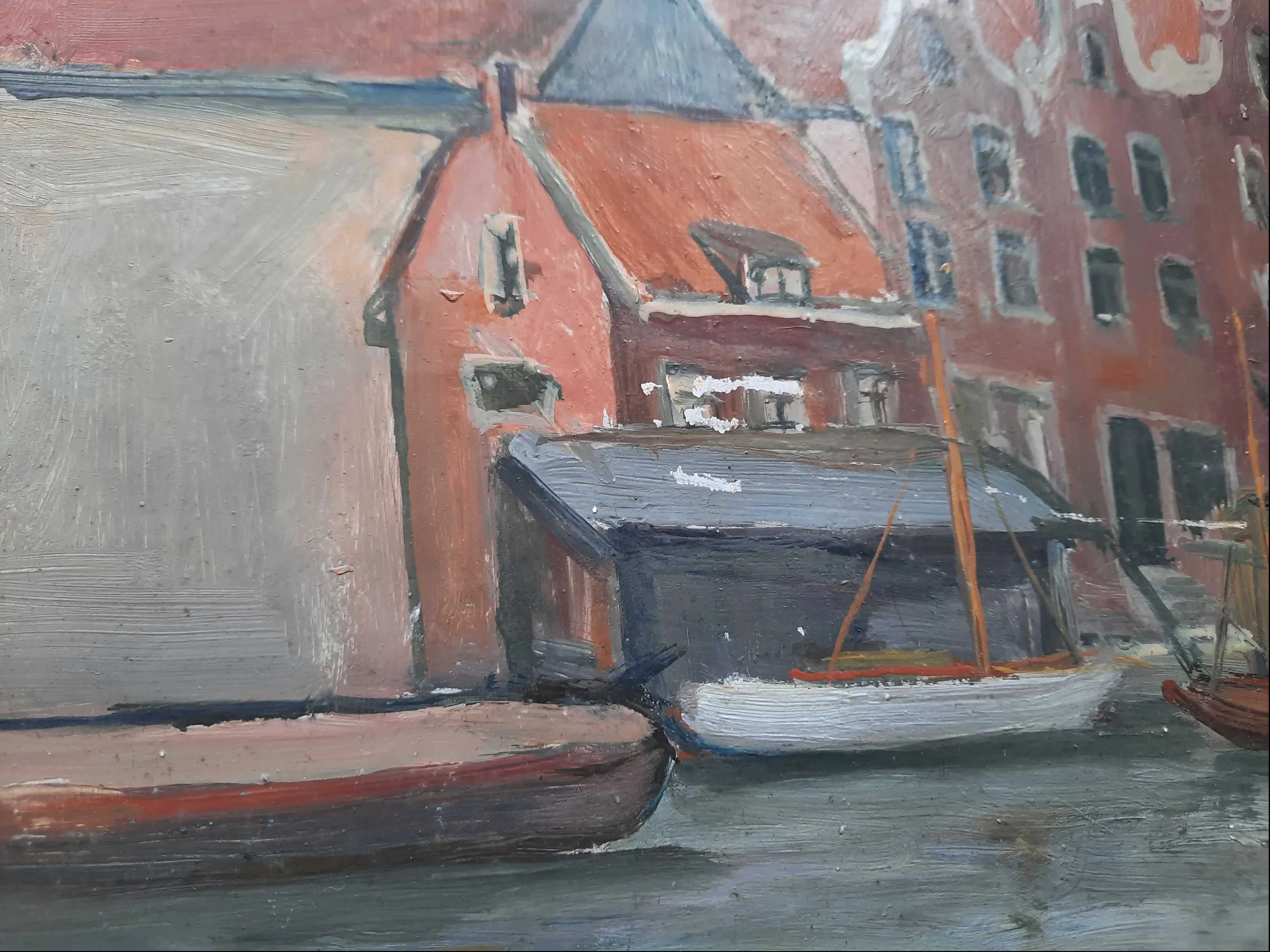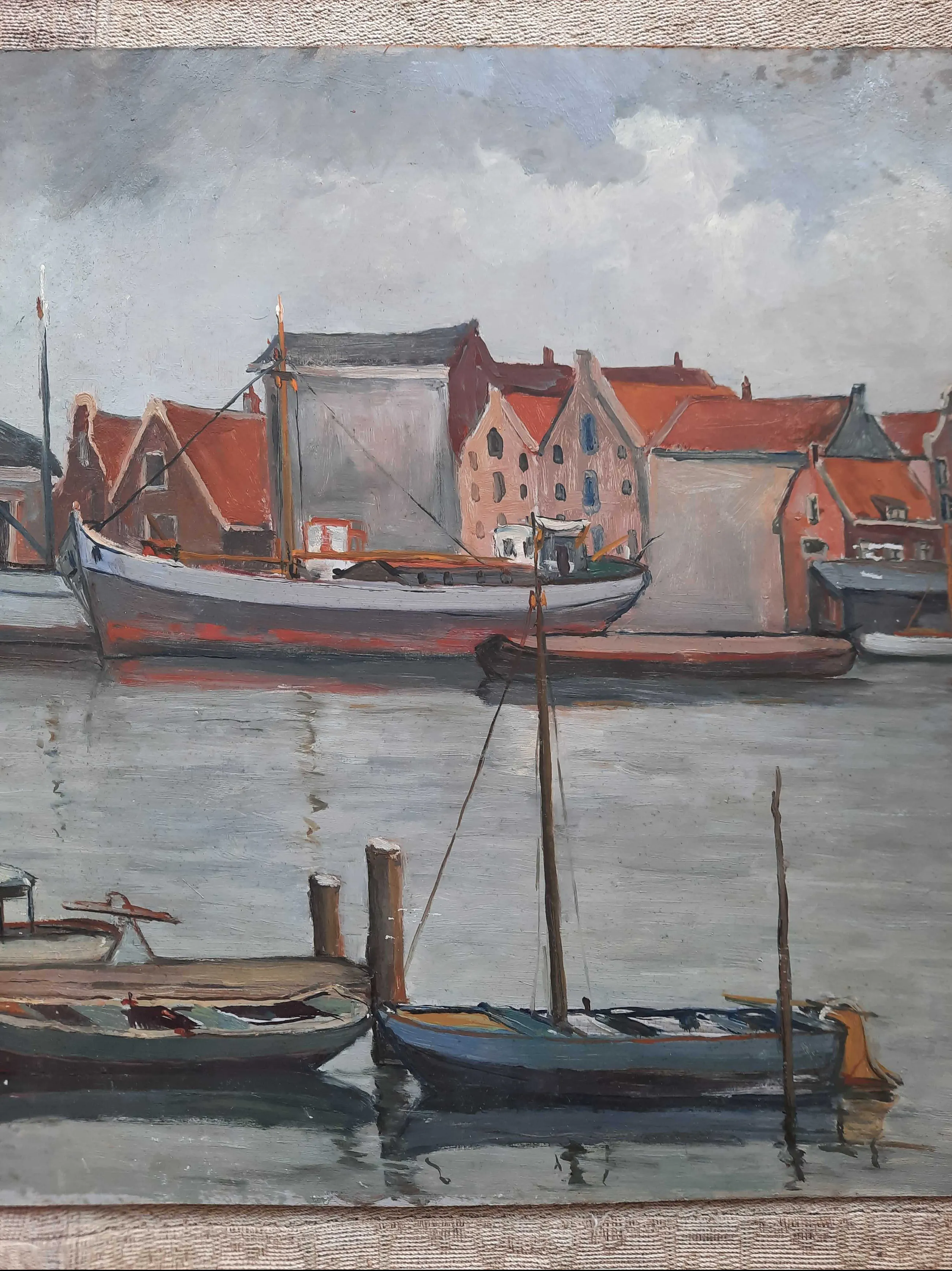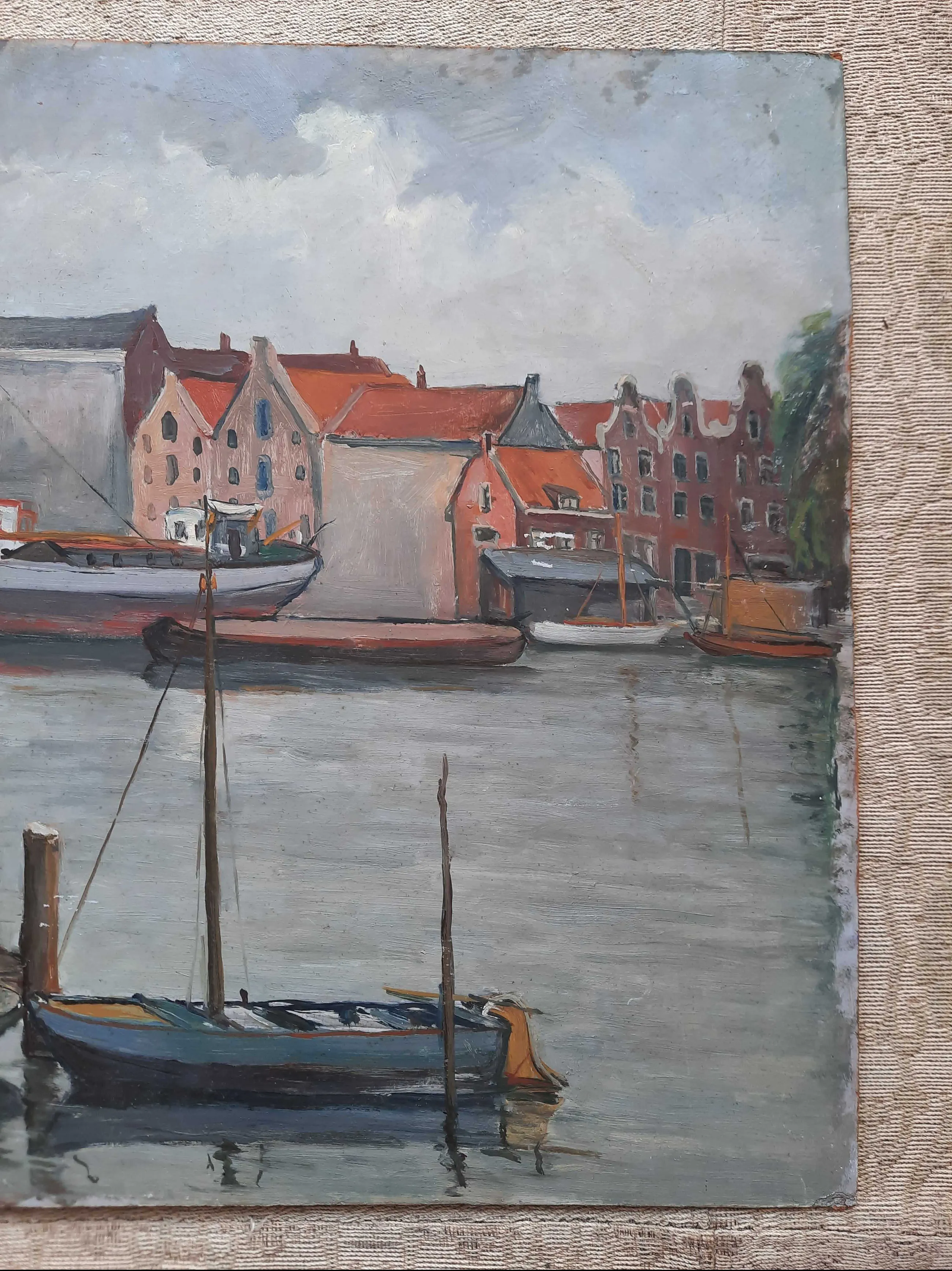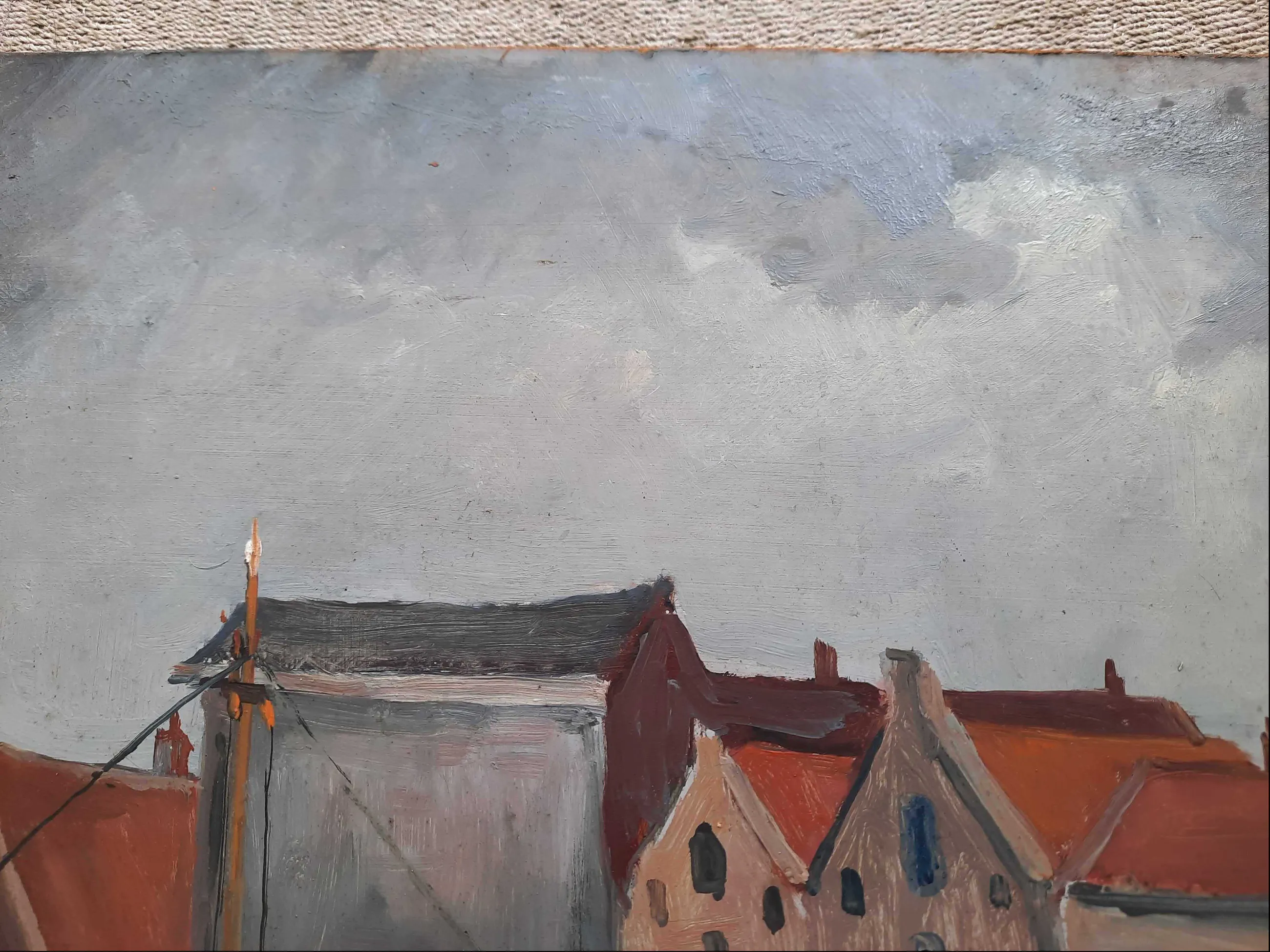 Keine niet storende beschadigingen op het doek.Het board is enigzins gekromd door de jaren.