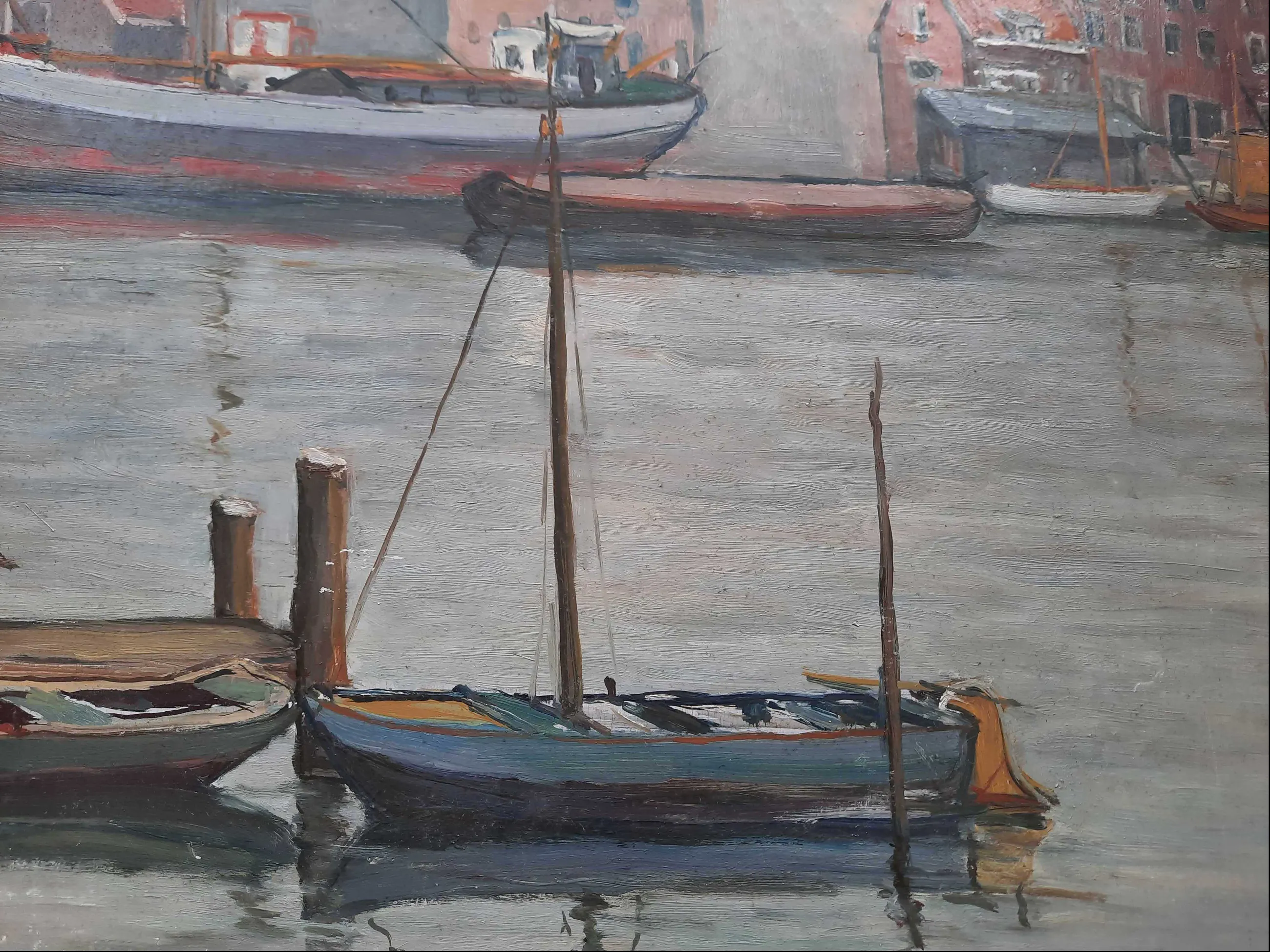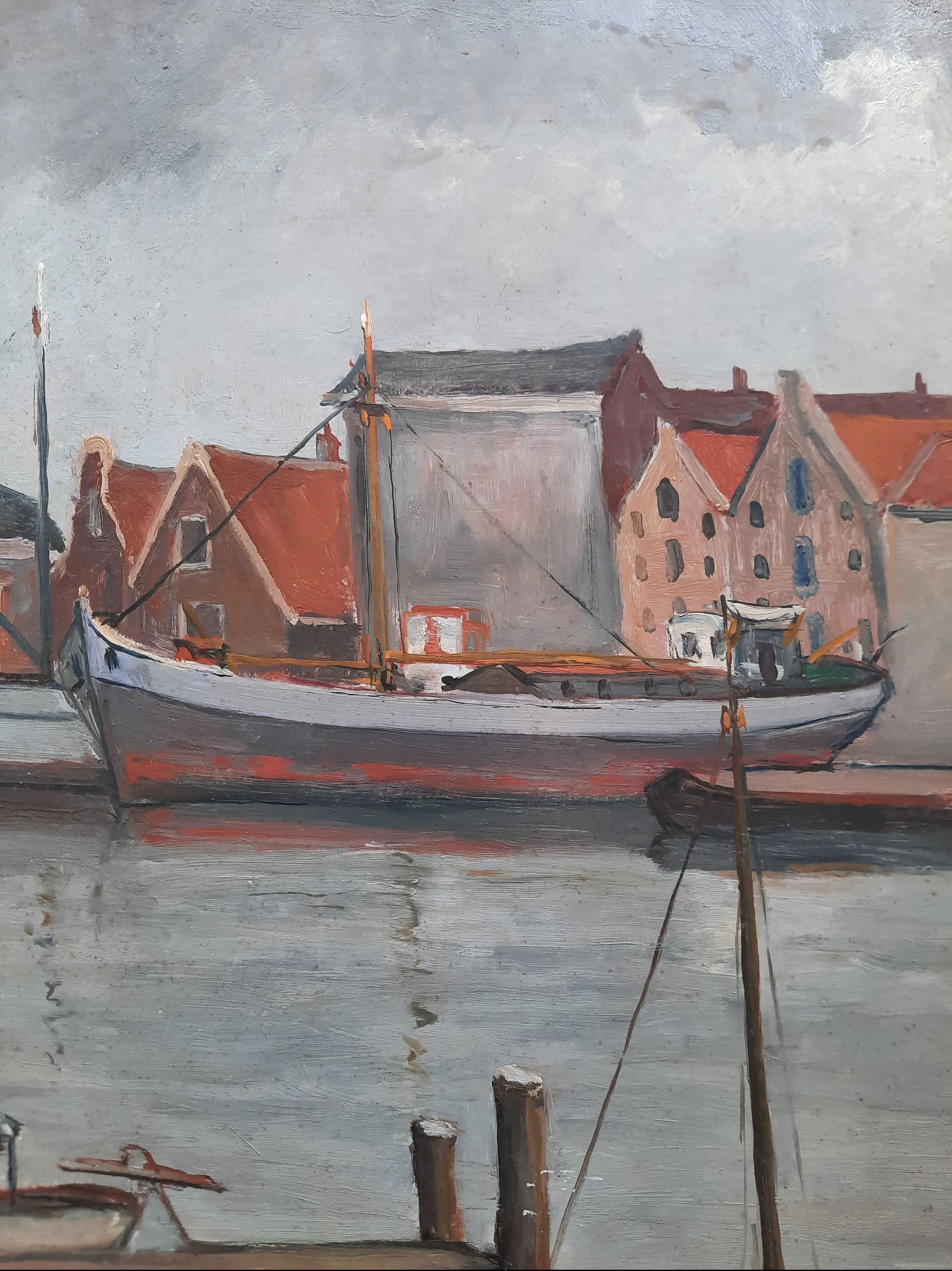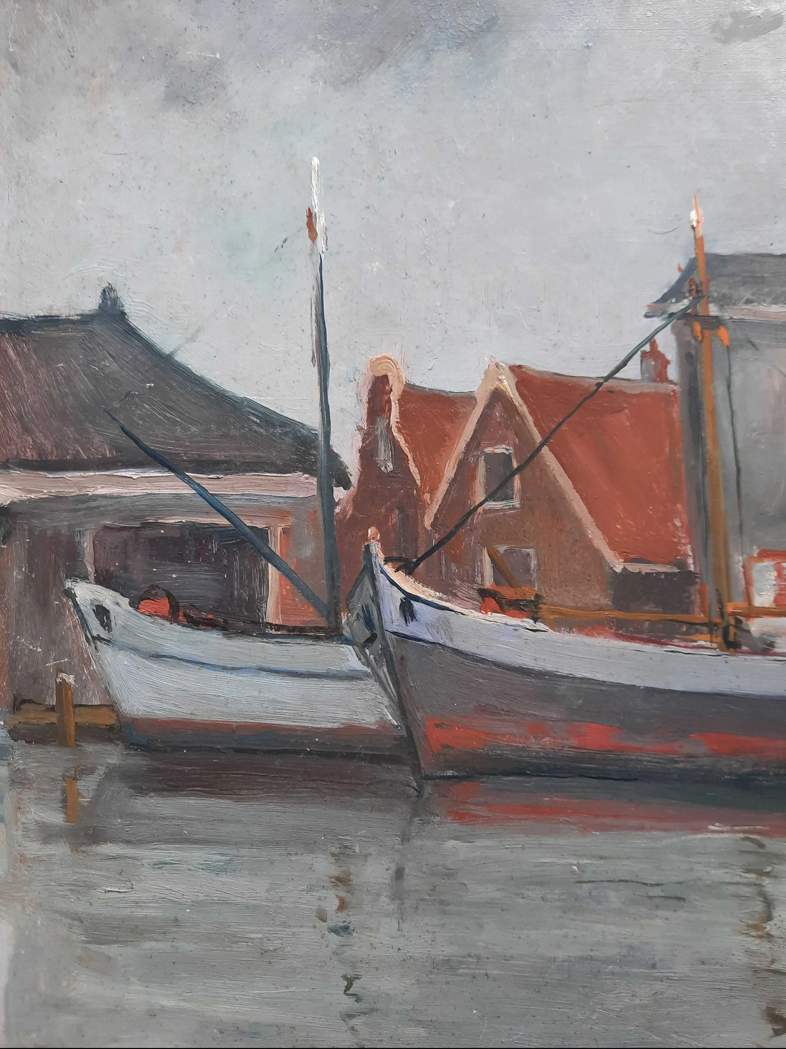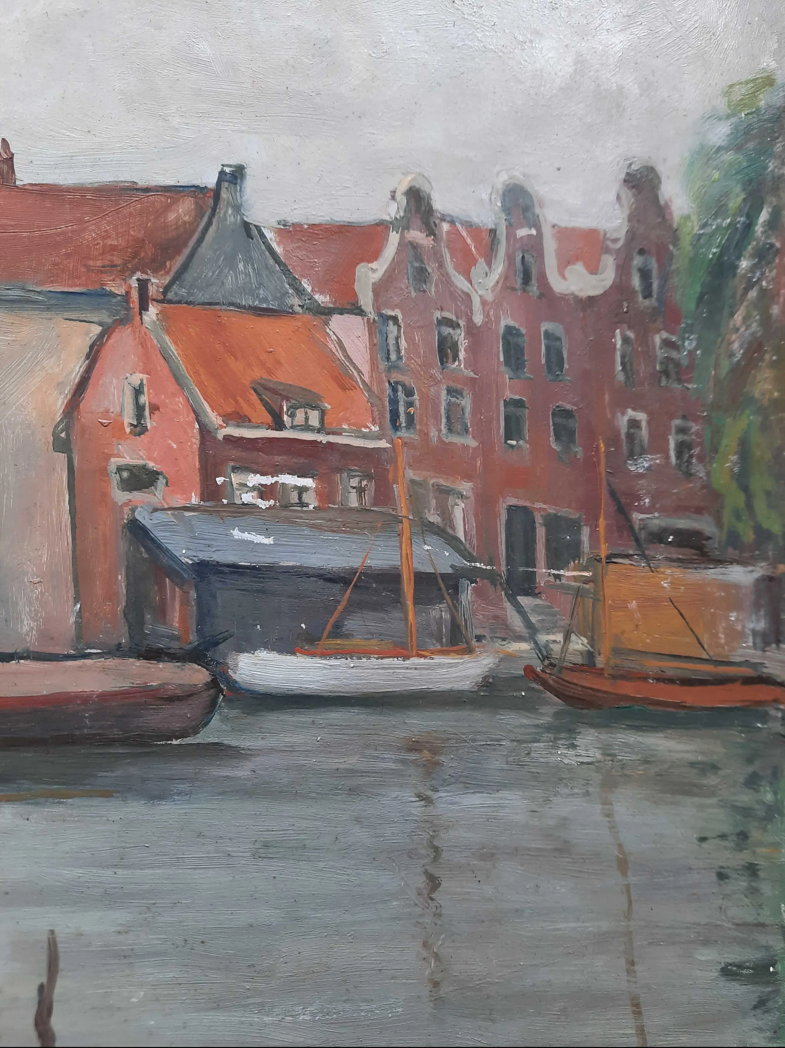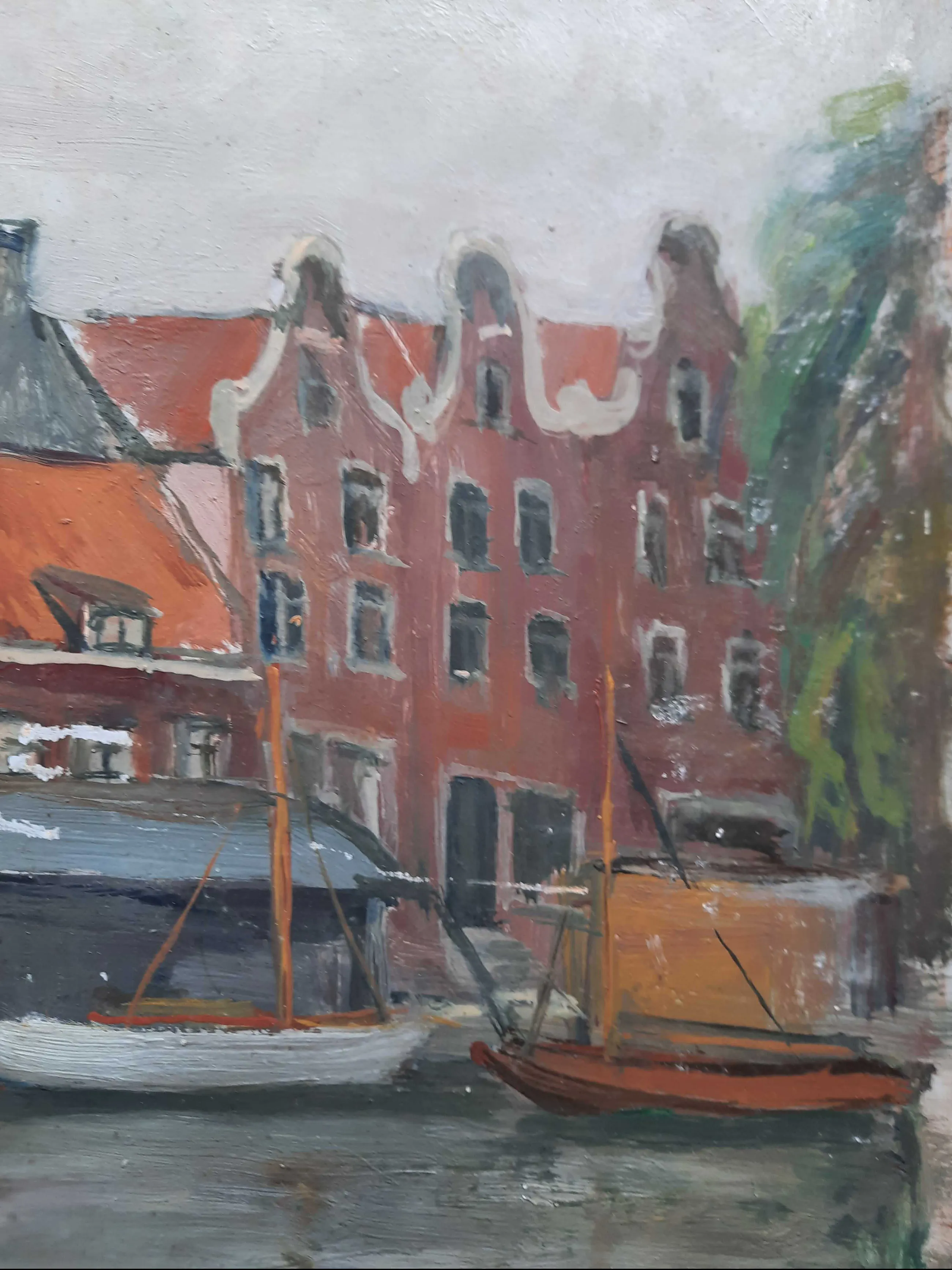 Keine niet storende beschadigingen op het doek.Het board is enigzins gekromd door de jaren.