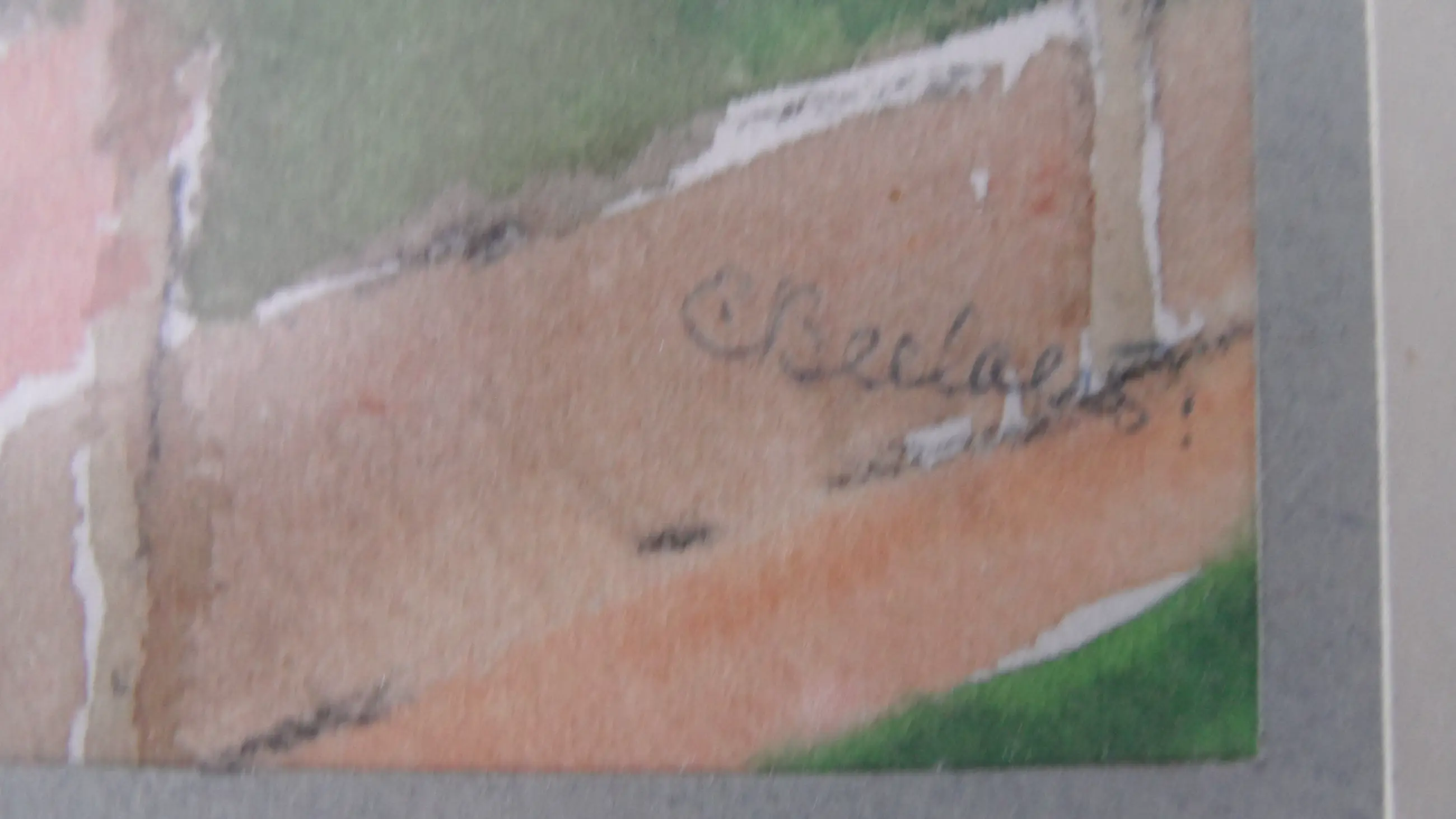 Een leuk, kleurrijk landschap in goede staat, ingelijst achter glas. Rechtsonder gesigneerd. Achterop staat tevens handgeschreven door Claire Beelaerts van Blokland waar zij het gemaakt heeft.