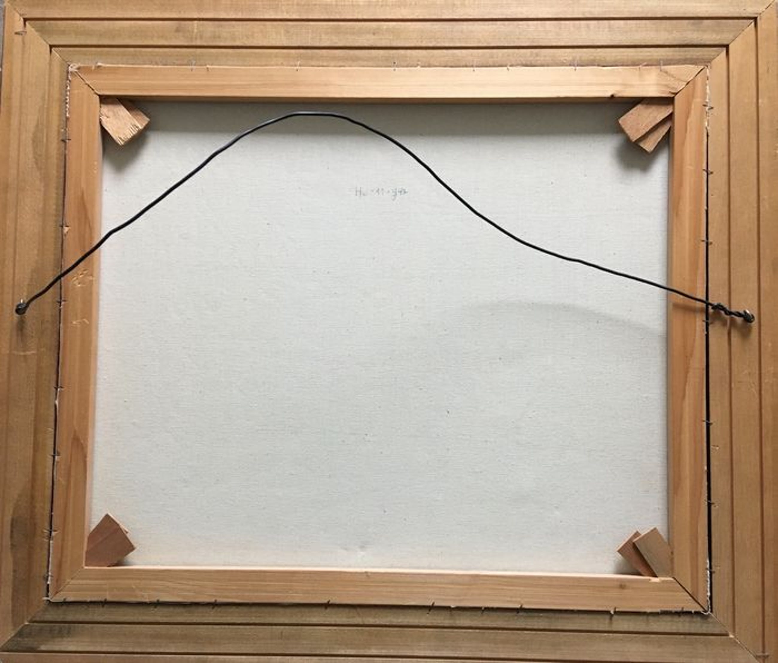 Schilderij is uitstekend van kwaliteit; de lijst heeft wat beschadigingen. Aangezien de lijst als gift mag worden beschouwd kunnen hier verder geen rechten aan worden ontleend.