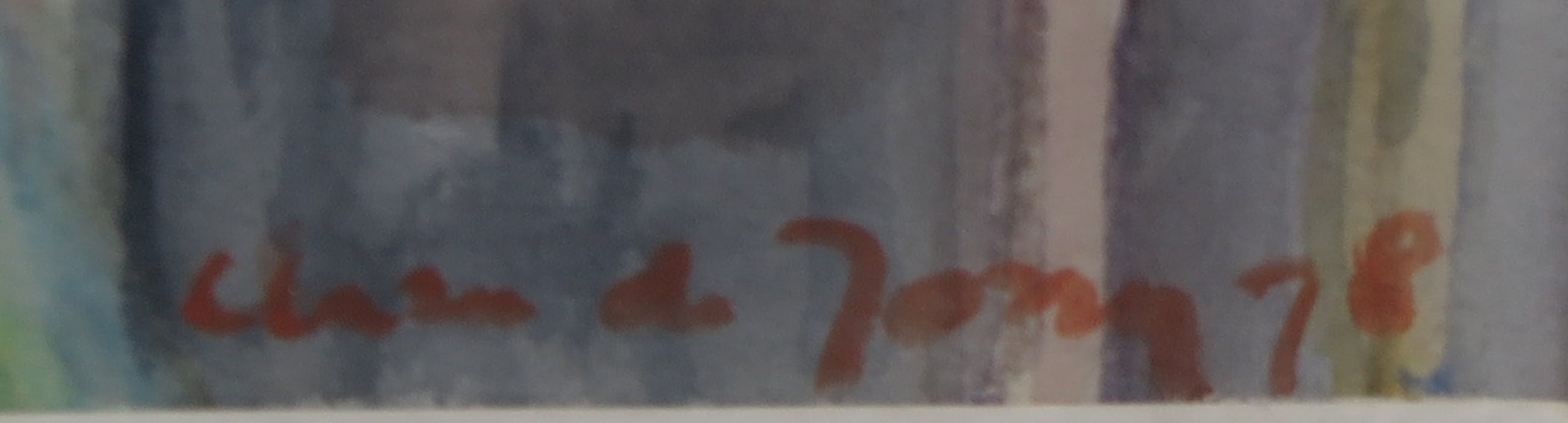 | Het werk zelf is in zeer goede staat, wel zit er vocht achter het glas en dit zie je vooral langs het passe-partout. Zie foto's voor details. | |