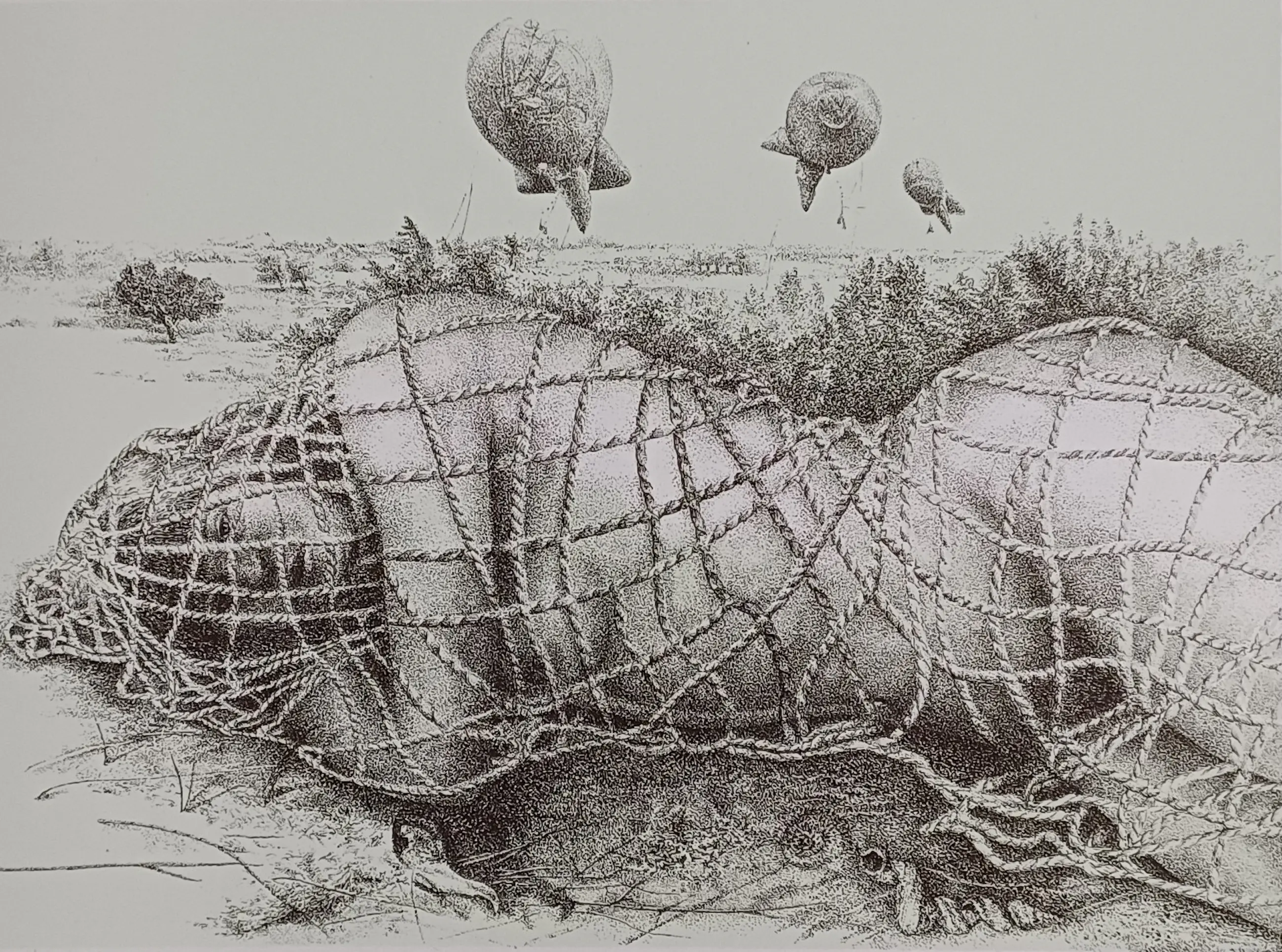 Gesigneerde litho van de kunstenaar Clary Mastenbroek (1947), gedrukt in een oplage van 40 stuks. Rechts is het werk gesigneerd in potlood en 81. Links met “zachte landing” 12/40. Afmeting werk 22 x 31 cm (hxb) Papiermaat 43 x 49 cm. (hxb) In de witmarge aan de rechter rand zit een vouw en de linker boven hoek is gevouwen. Verder is de litho is in prima staat en is nooit ingelijst geweest.