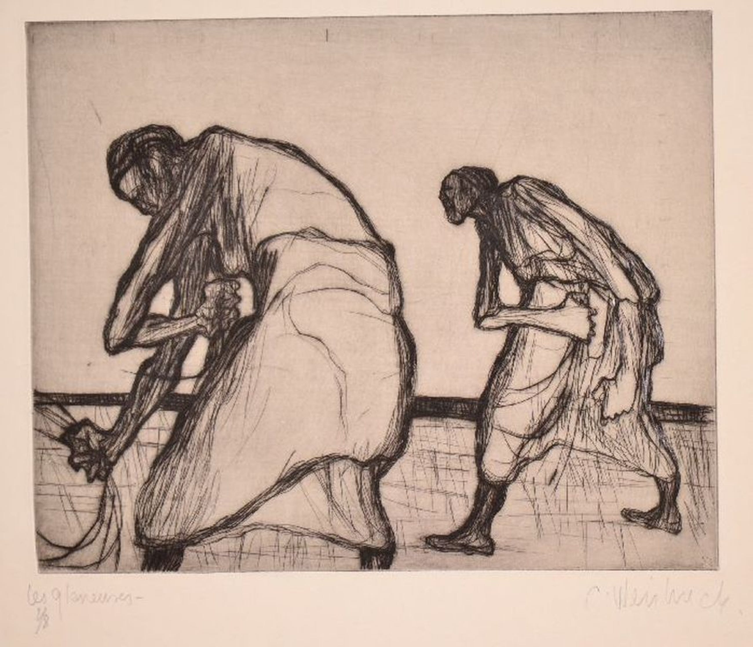 Zeer mooie ets van Claude Weisbuch met droge naaldtechniek