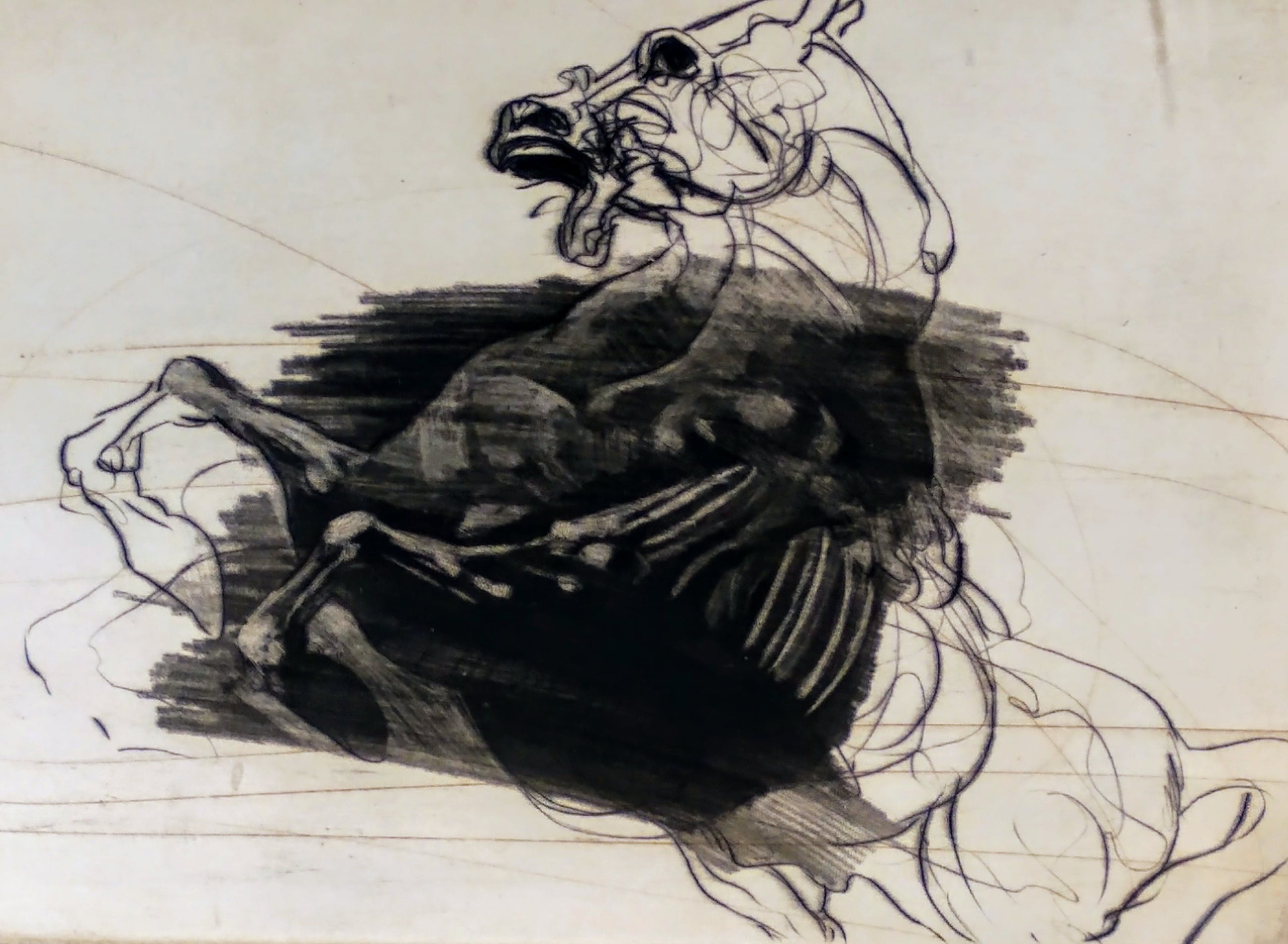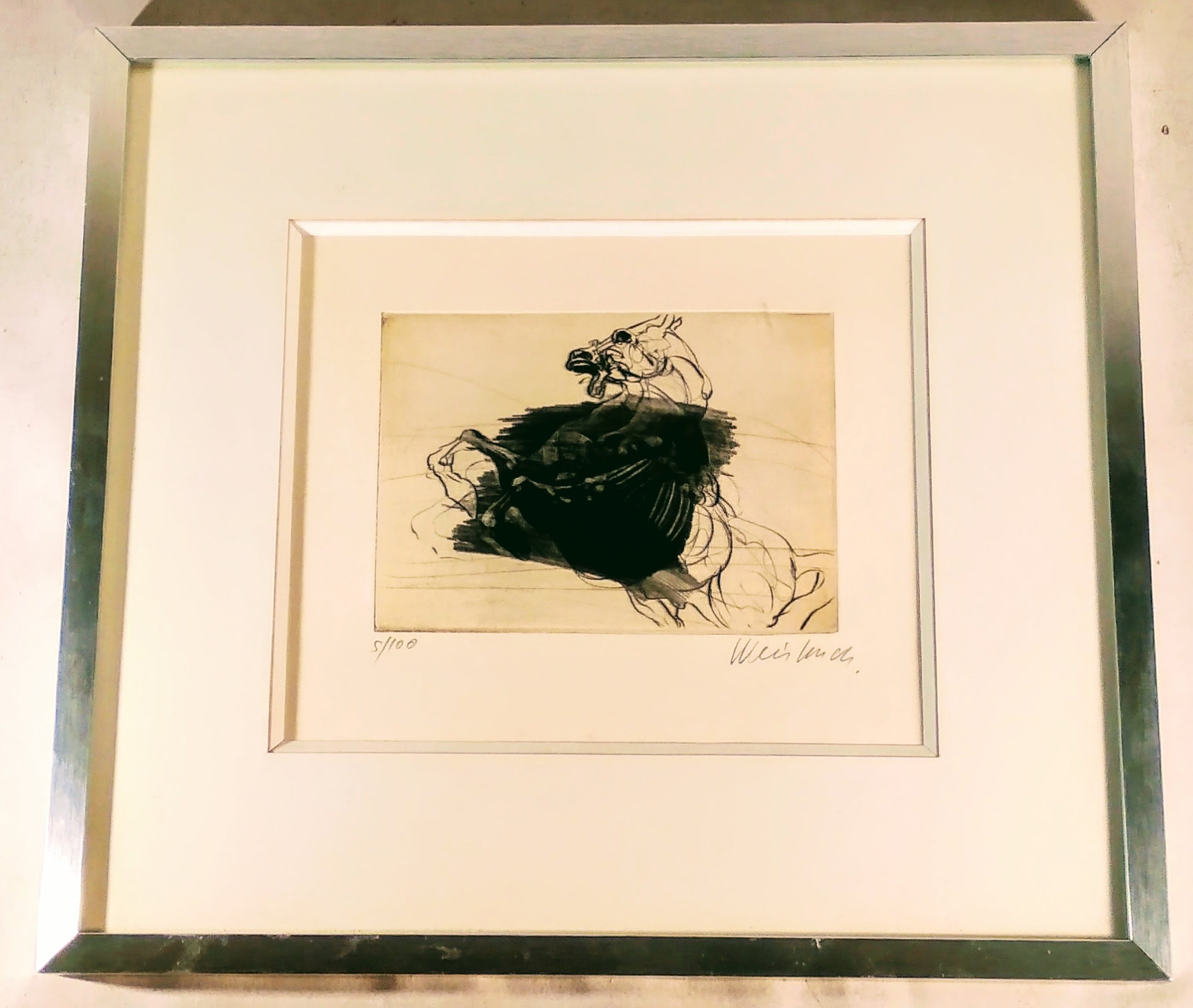 Lithography van een stijgerend paard door Claude Weisbuch genummerd 5 / 100.
