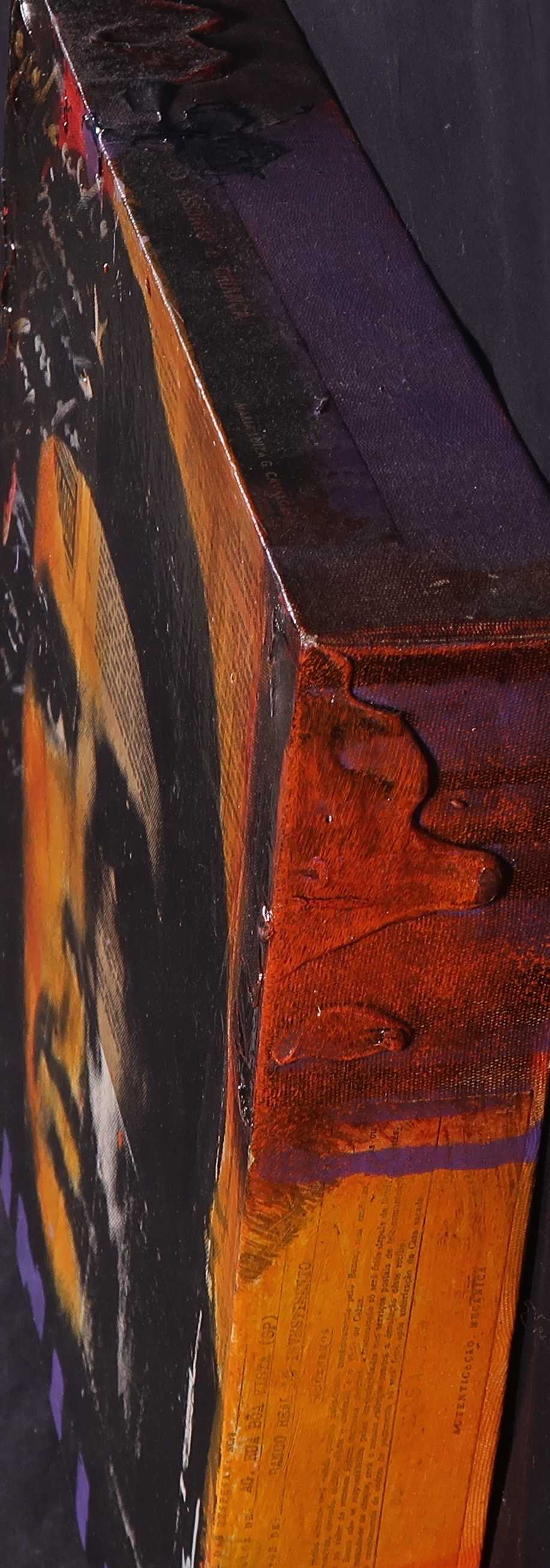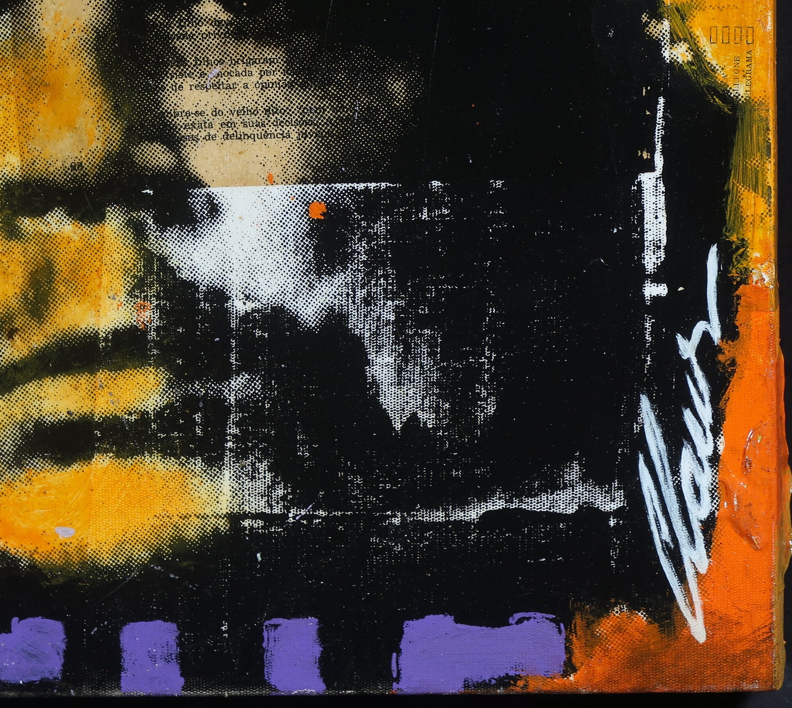 gemengde techniek: o.a. zeefdruk, collage en acryl