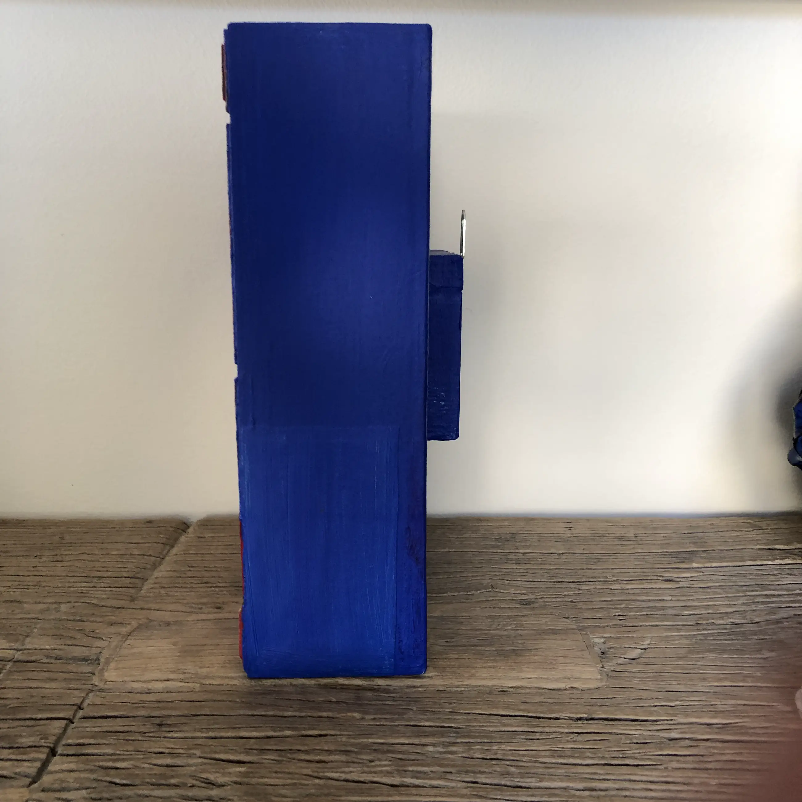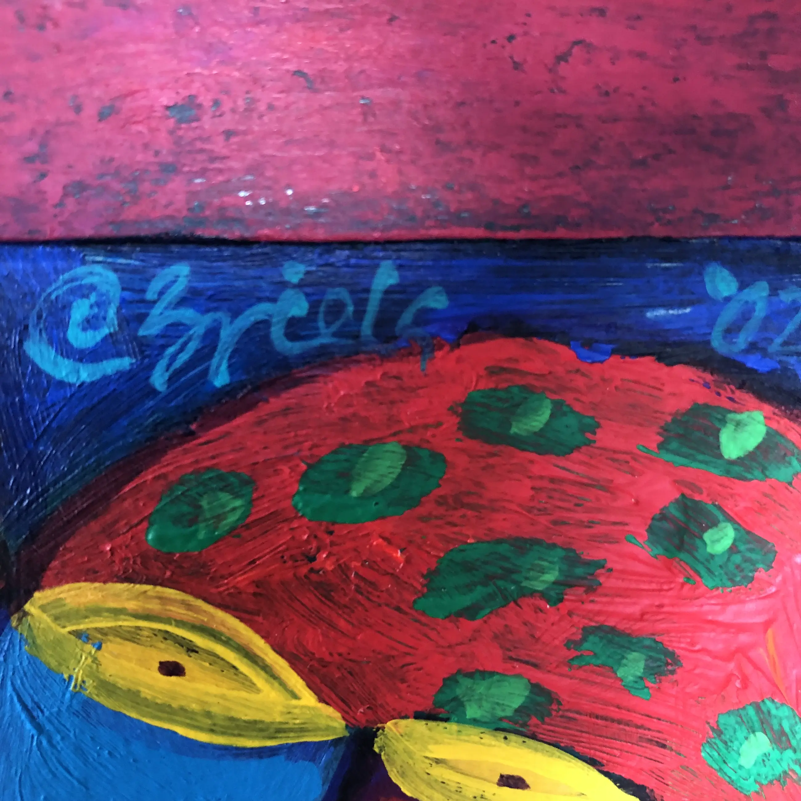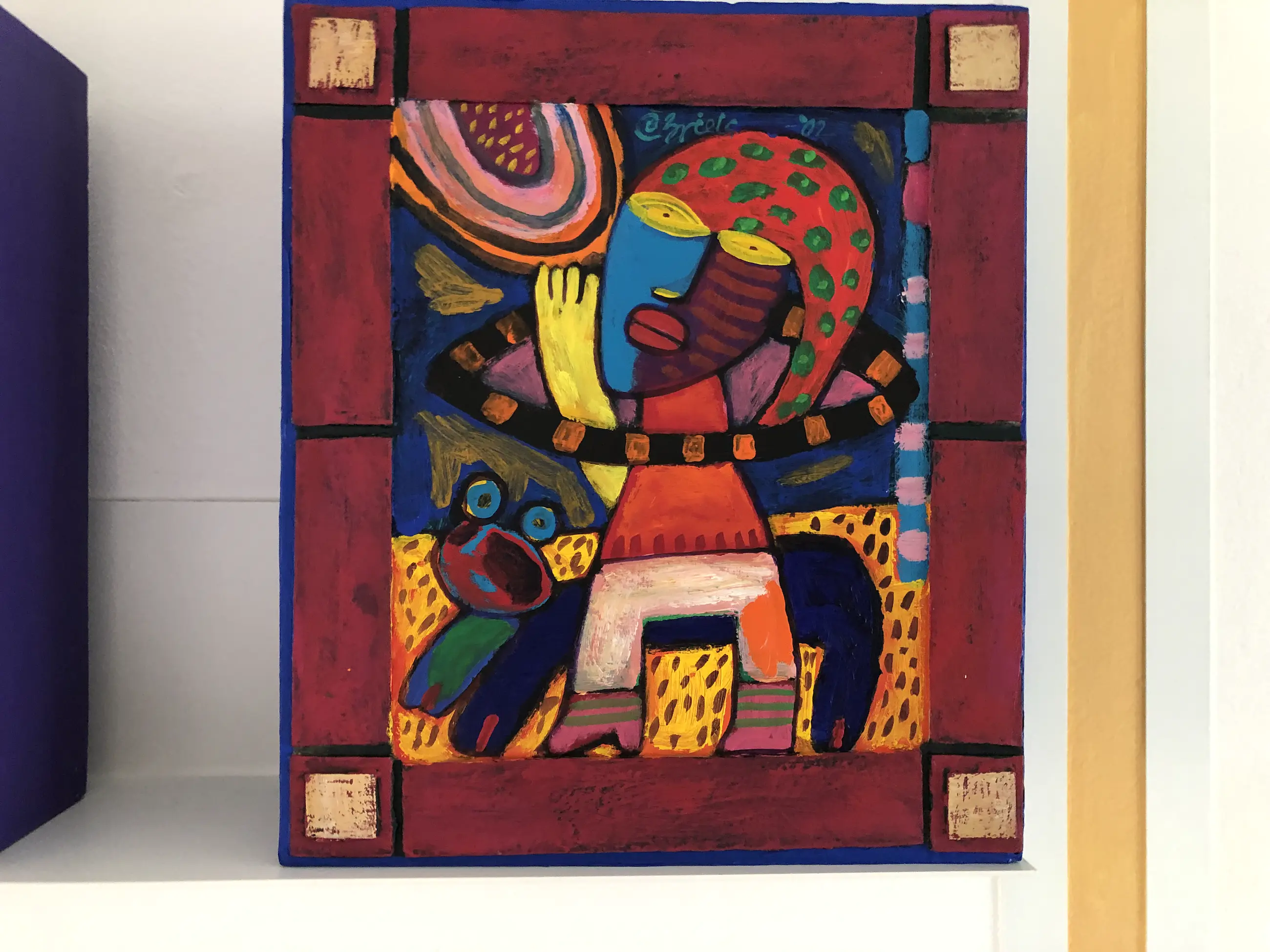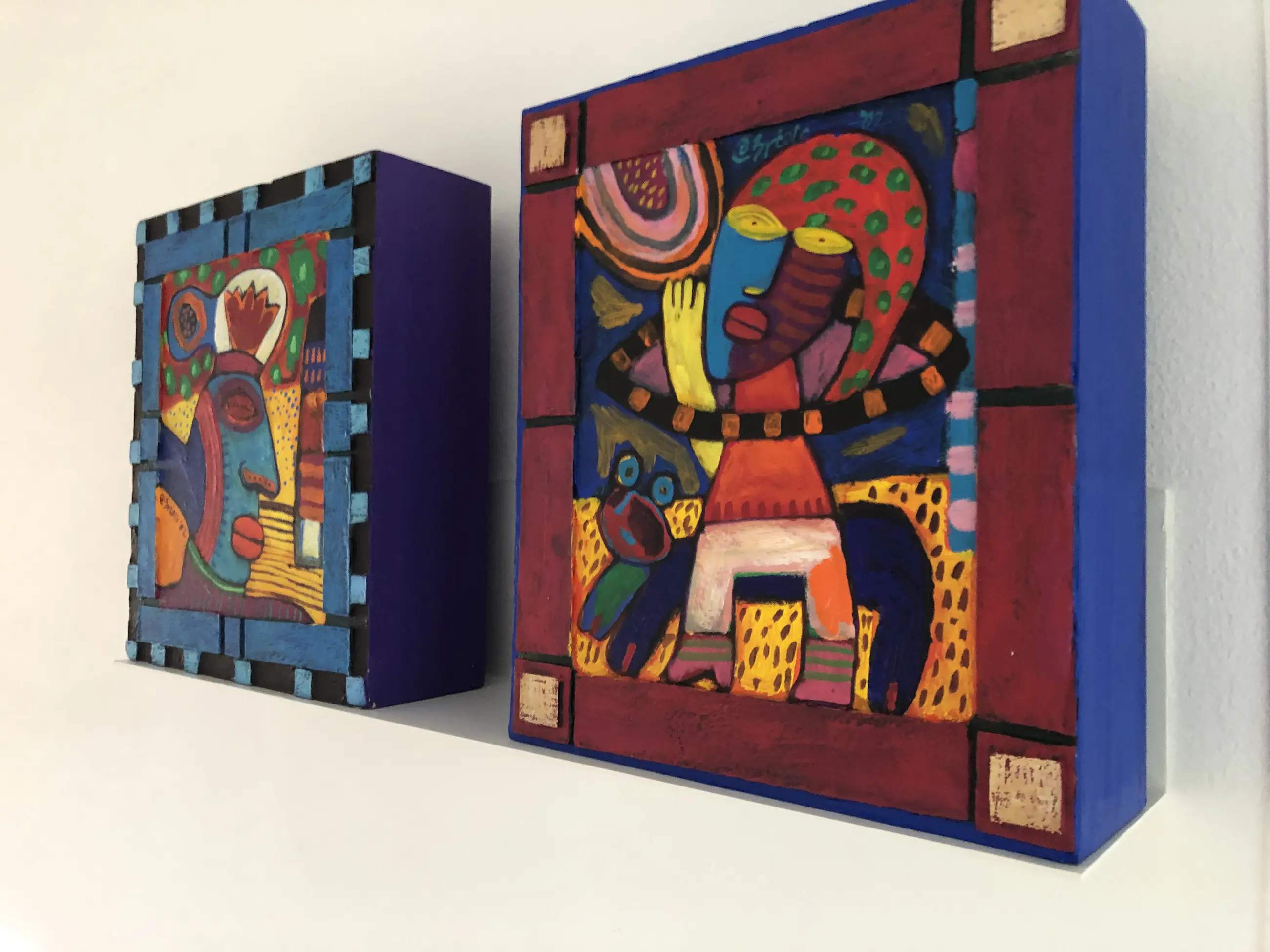 Opmerking: Het werk is geschilderd op een soort houten kistje. Geeft dieptewerking als het aan de muur wordt opgehangen Opmerking: Wordt per set van twee verkocht; daarop is de prijs gebaseerd. Jaartal: 2002 Techniek: Acryl Bijzonderheden: Collage langs de randen Drager: Paneel Afmetingen: 25 x 30 x 12,5 cm ( b x h x d) Gesigneerd: Hand gesigneerd Conditie: In zeer goede staat