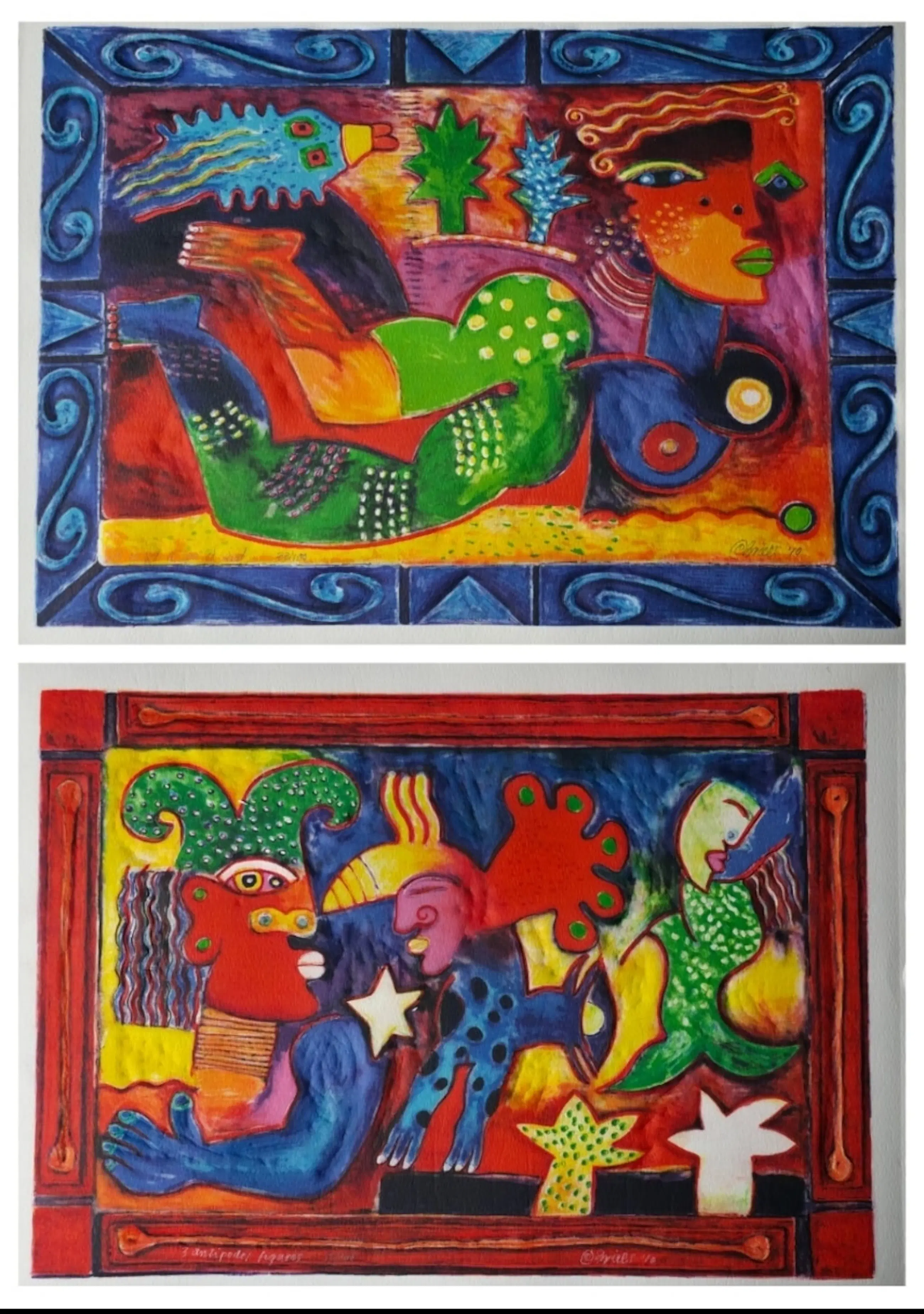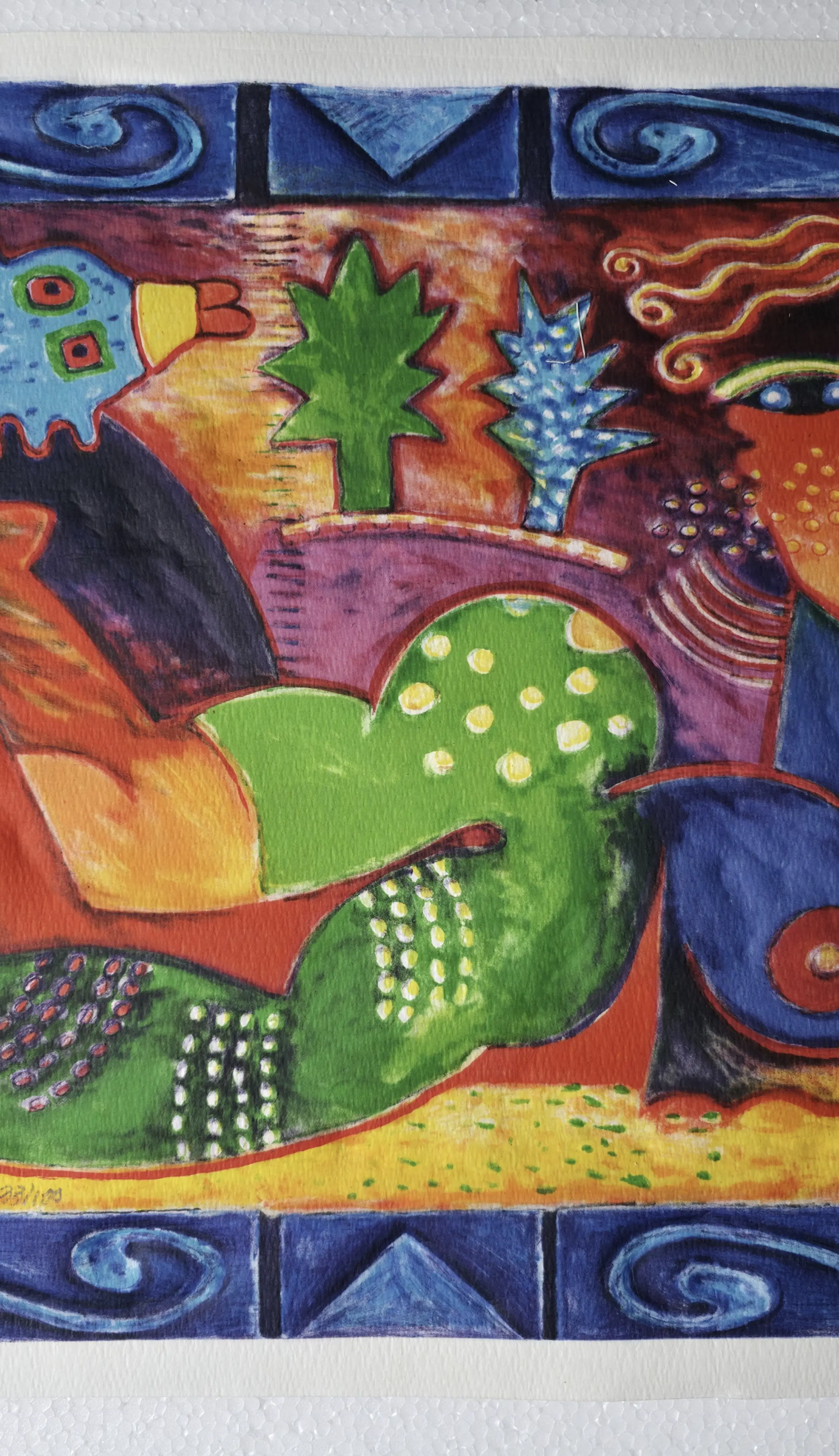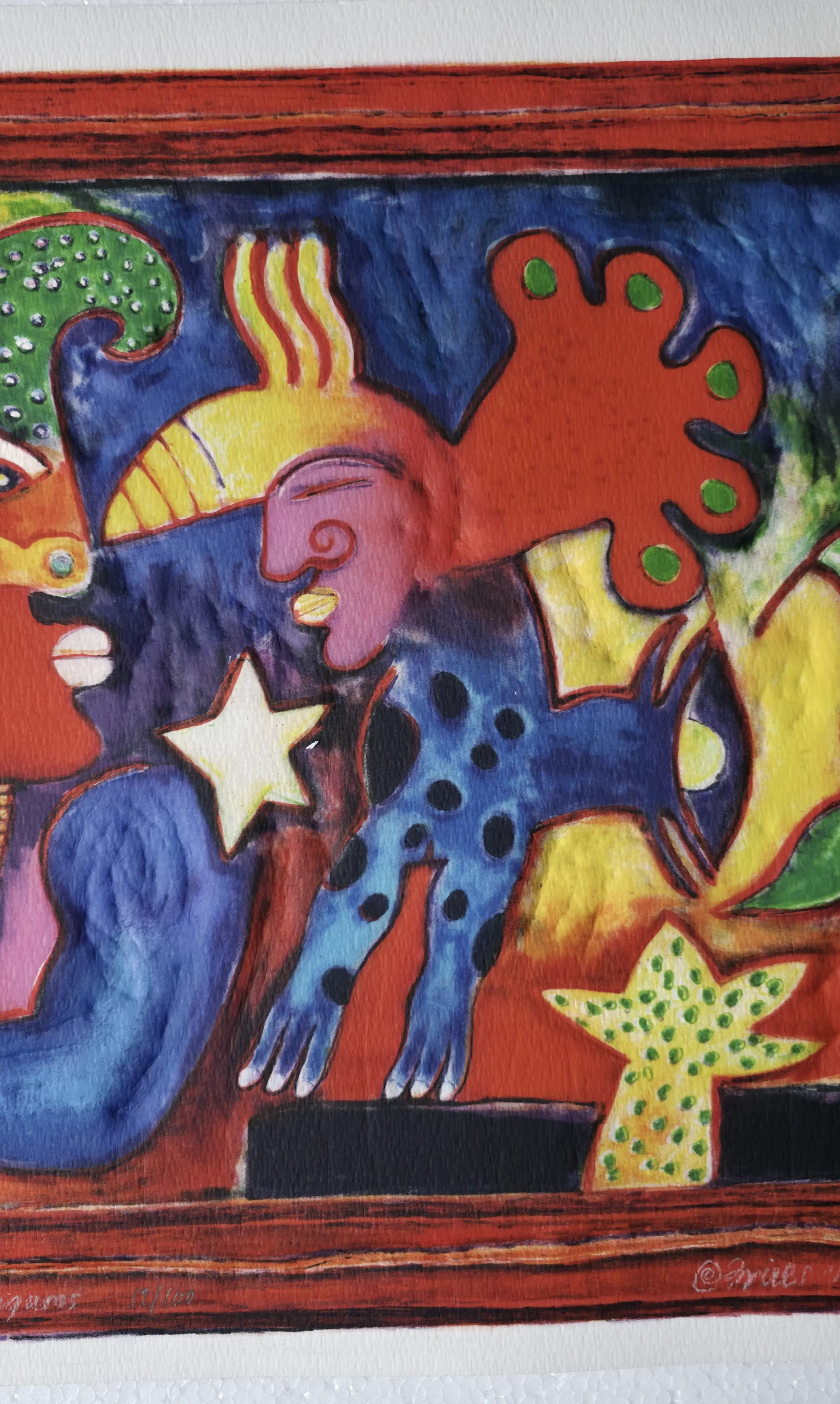 set van 2 hand gesigneerde en genummerde diepgedrukte zeefdruk van Clemens Briels, met reliëf, zeer unieke techniek.