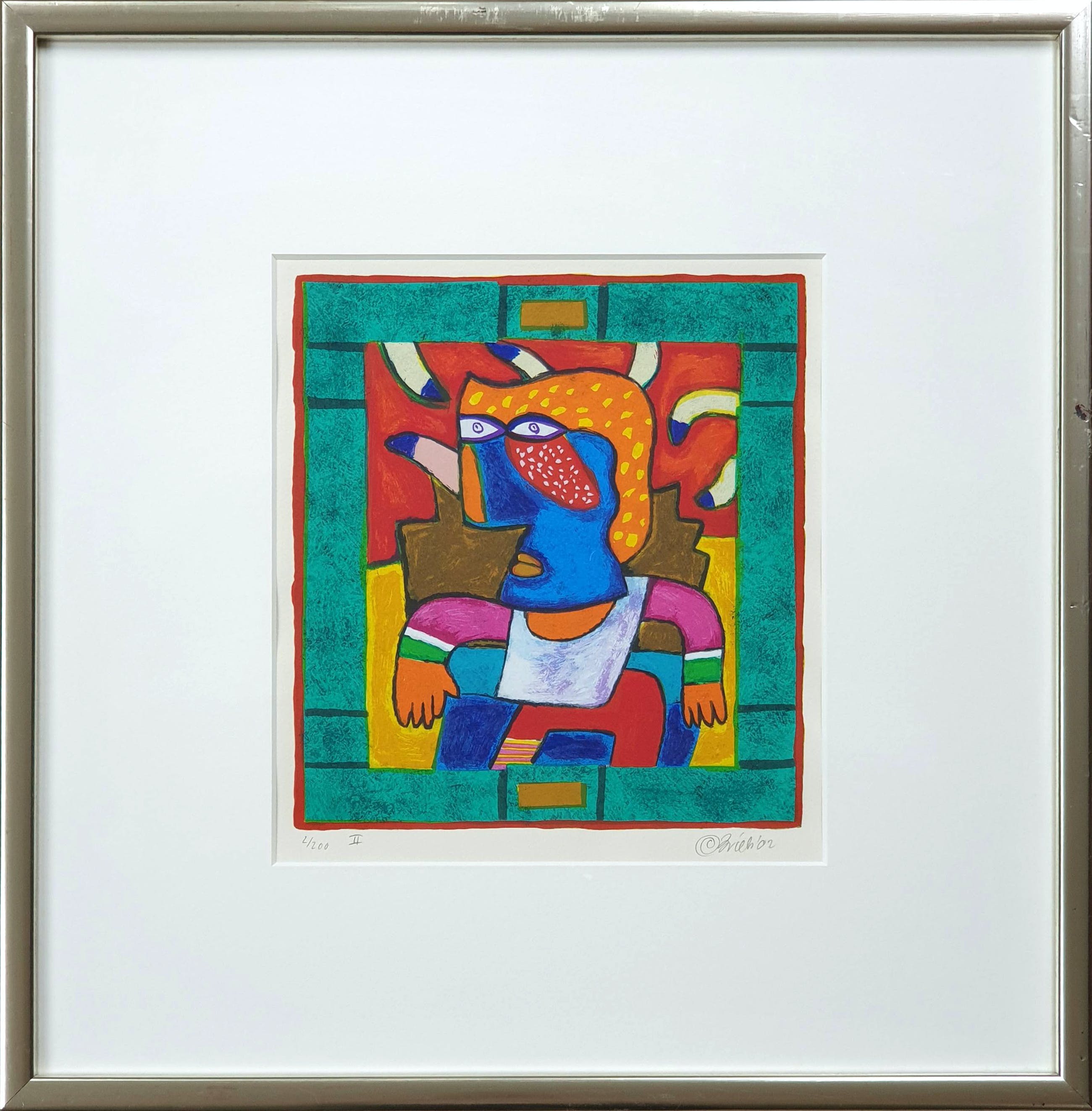 Kunstenaar: Clemens Briels Titel: Zonder titel II Jaar: 2002 Techniek: Zeefdruk Oplage: 2/200 Gesigneerd: Rechtsonder Afwerking: Ingelijst Afmeting voorstelling (HxB): 32 x 29 cm Afmeting lijst (HxB): 58 x 58 cm Conditie werk: Zeer goed Conditie lijst: Gebruikt Referentie: ZK3001093Verdere info: Lijst gebruikt, maar in goede staat.