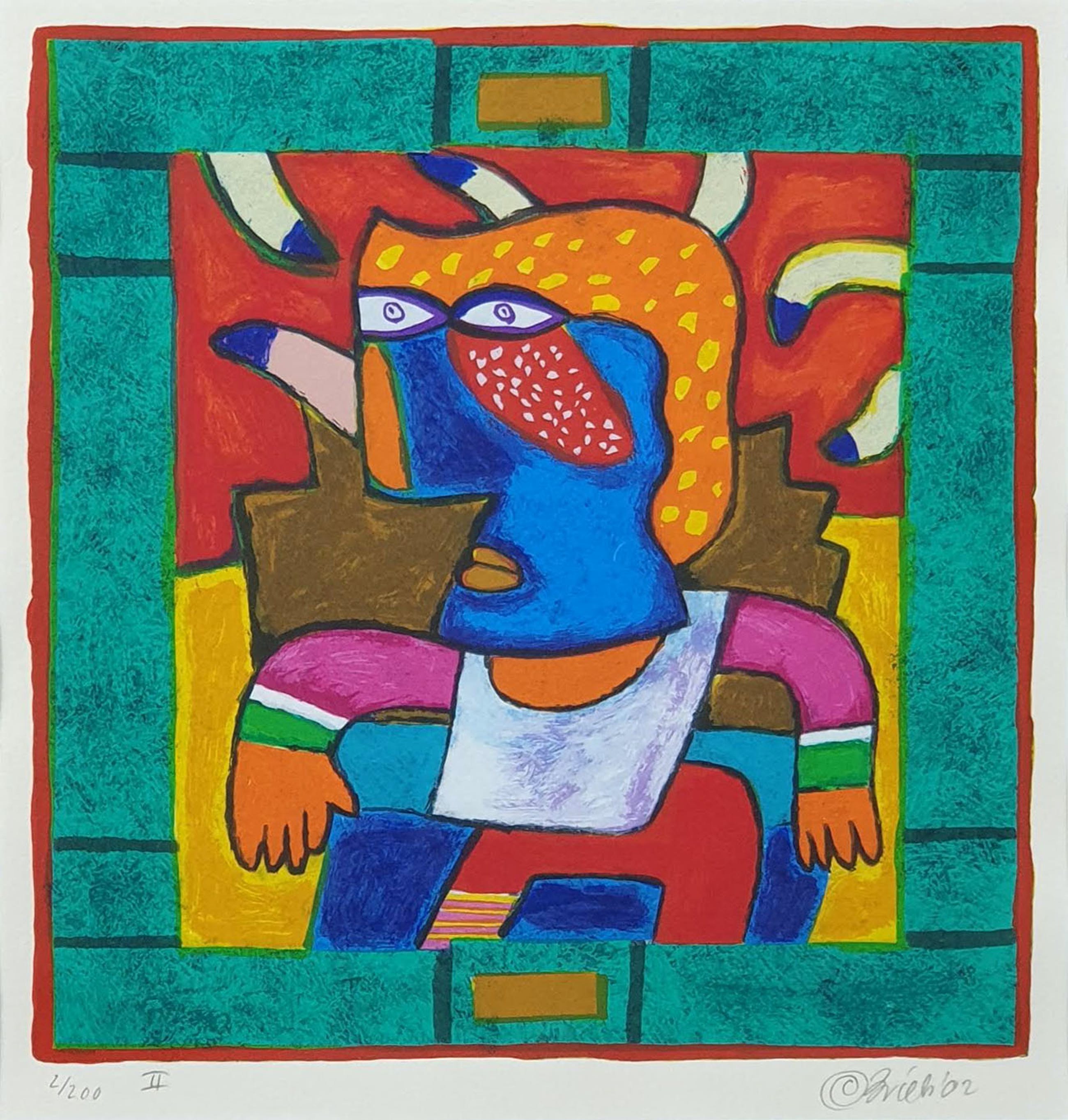 Zeefdruk van Clemens Briels uit 2002. Het werk is rechtsonder met de hand gesigneerd door de kunstenaar.
