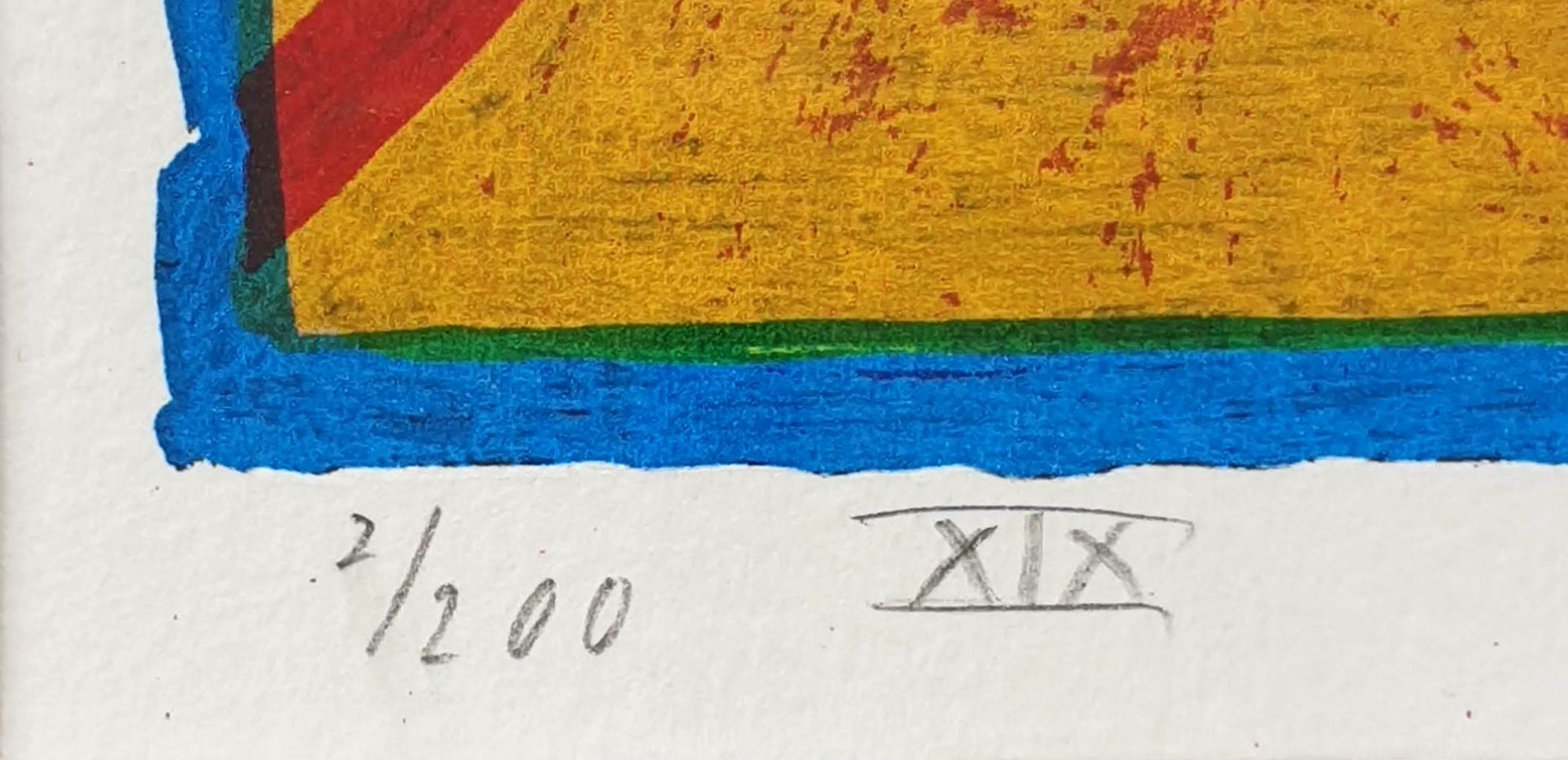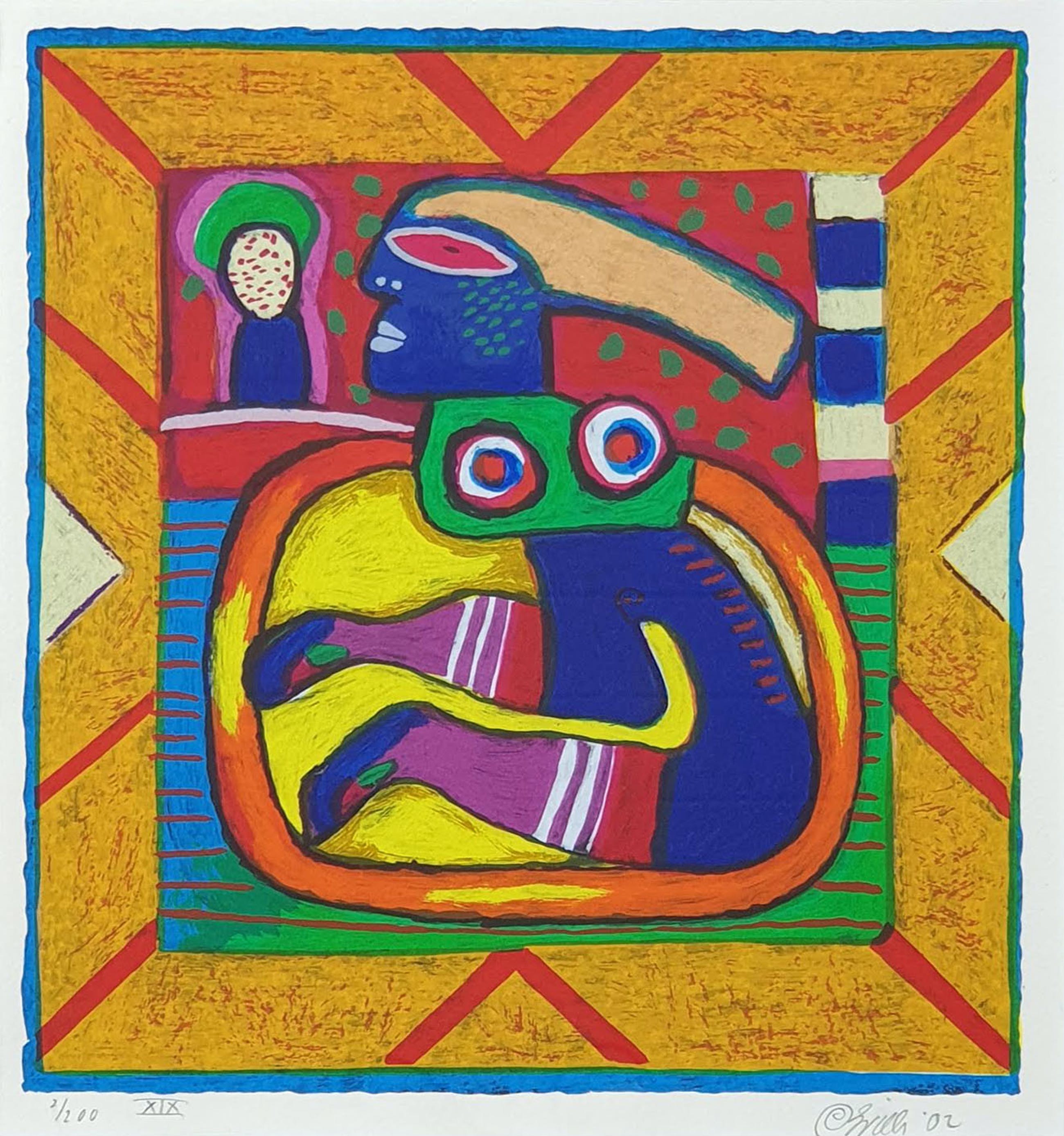 Kunstenaar: Clemens Briels Titel: Zonder titel XIX Jaar: 2002 Techniek: Zeefdruk Oplage: 2/200 Gesigneerd: Rechtsonder Afwerking: Ingelijst Afmeting voorstelling (HxB): 32 x 29 cm Afmeting lijst (HxB): 60 x 60 cm Conditie werk: Zeer goed Conditie lijst: Gebruikt Referentie: ZK3001092 Verdere info: Lijst gebruikt, maar in goede staat. De foto's van het werk zijn door het glas heen genomen. Er kunnen wat weerspiegelingen zijn.