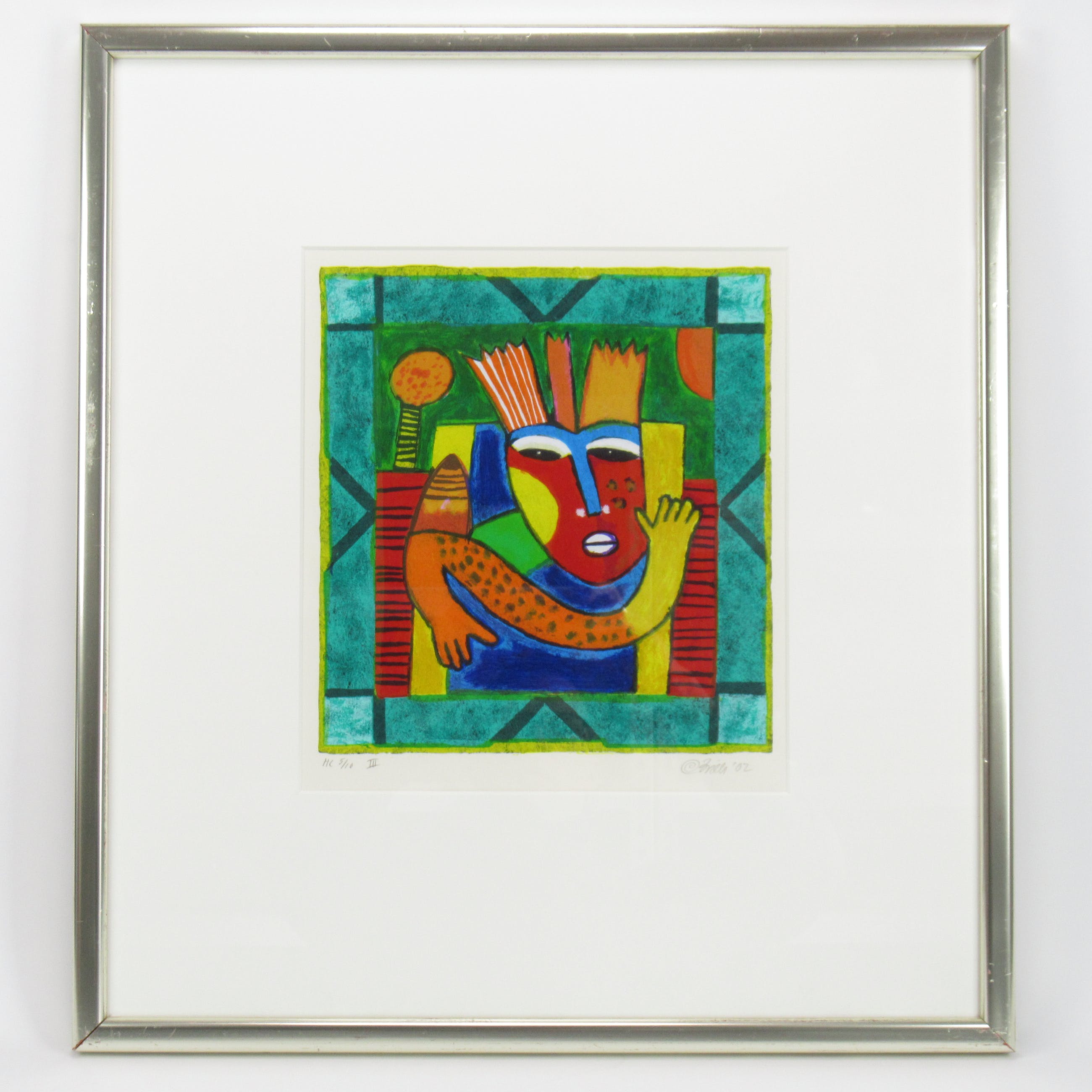 Mooi werk, uitgebracht in de zeer gelimiteerde oplage van 10 stuks. Dit is nummer 5. De zeefdruk is genummerd met potlood, l.o.: H.C. 5/10. Rechtsonder gesigneerd en gedateerd (2002).