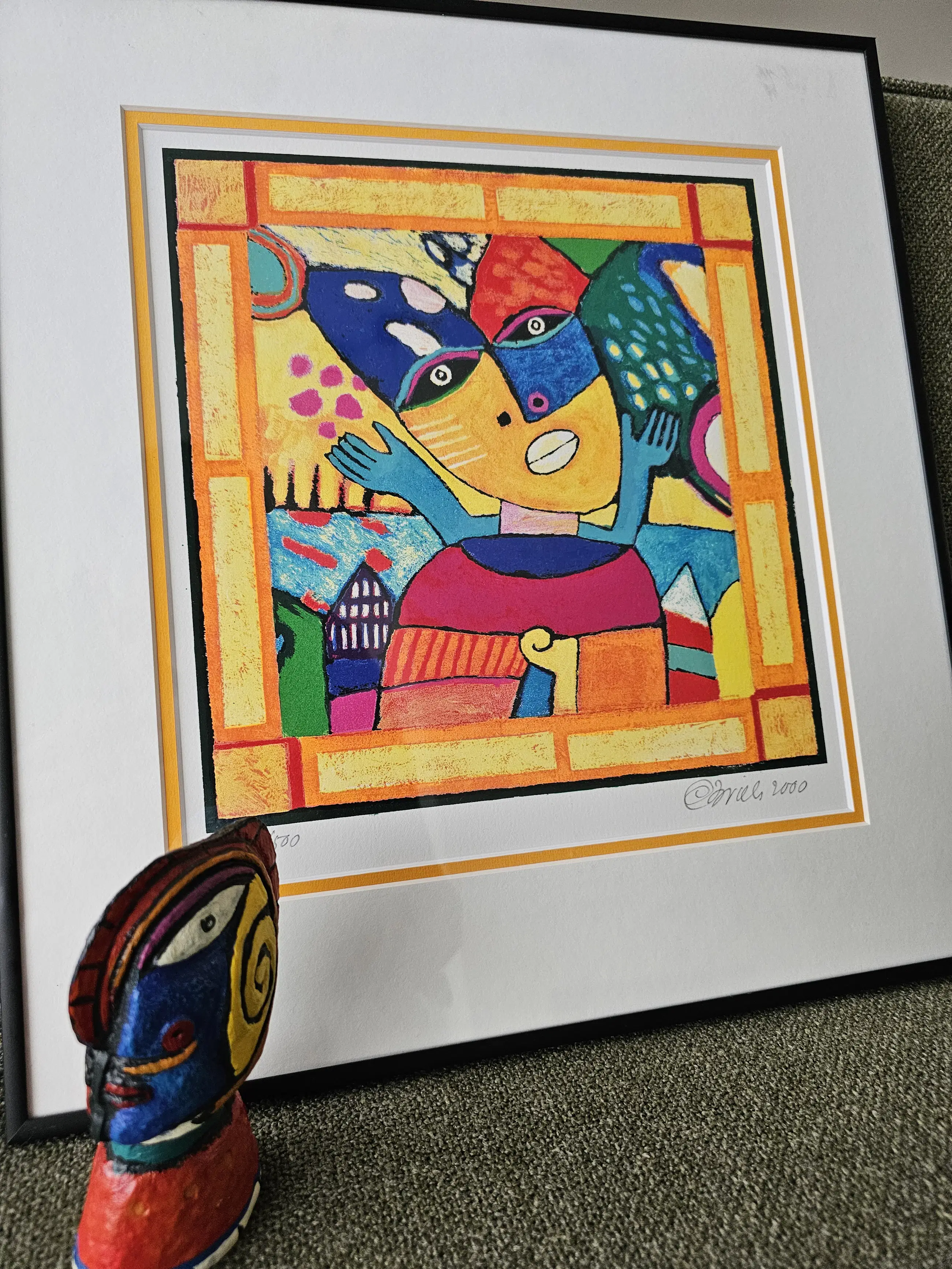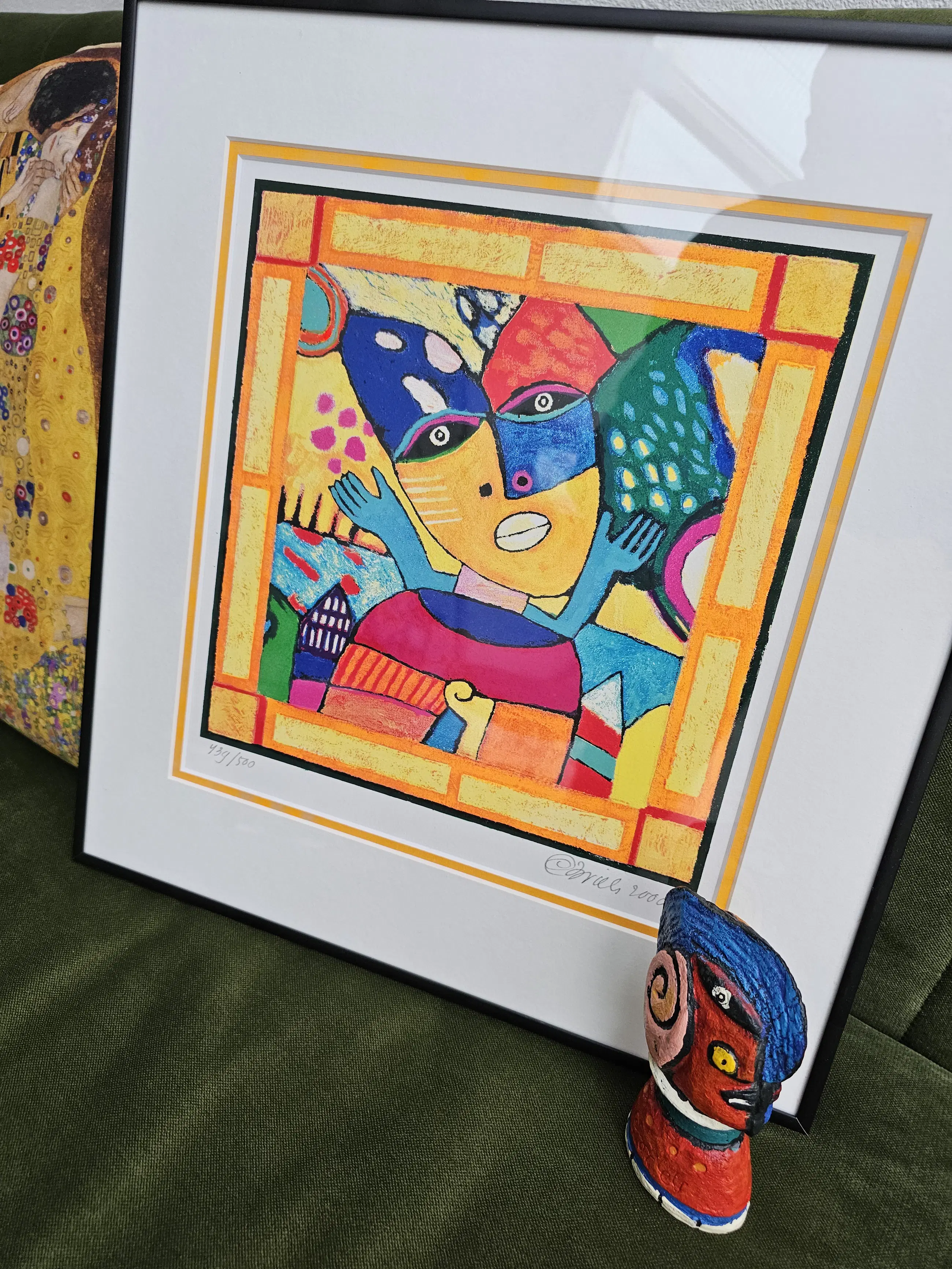 Unieke kans! 2 werken van Clemens Briels in één koop. Een fraaie Litho in mooie zwarte aluminium lijst EN de mogelijkheid om deze aan te schaffen samen met een gesigneerde flessenstop die tevens door Clemens Briels is gemaakt en voorzien van signatuur. Deze flessenstop is gemaakt voor het 10 jarige jubileum van de toenmalige Fortis bank. Mooie kans om deze fraaie set aan te schaffen.