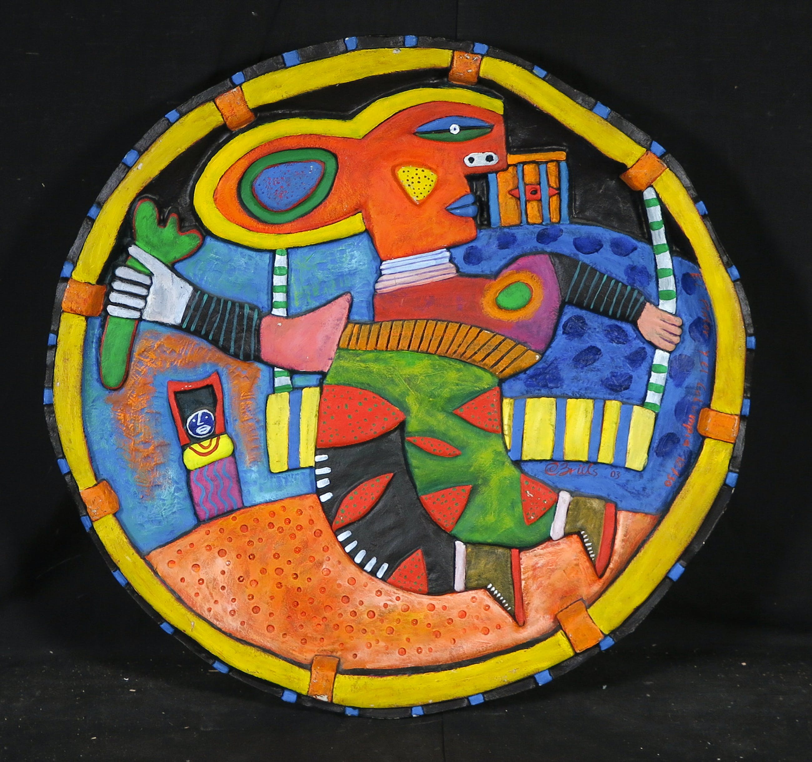 Beschilderd kunststof (polyester of fiberglass oid). Mooi formaat object, met ophangsysteem.