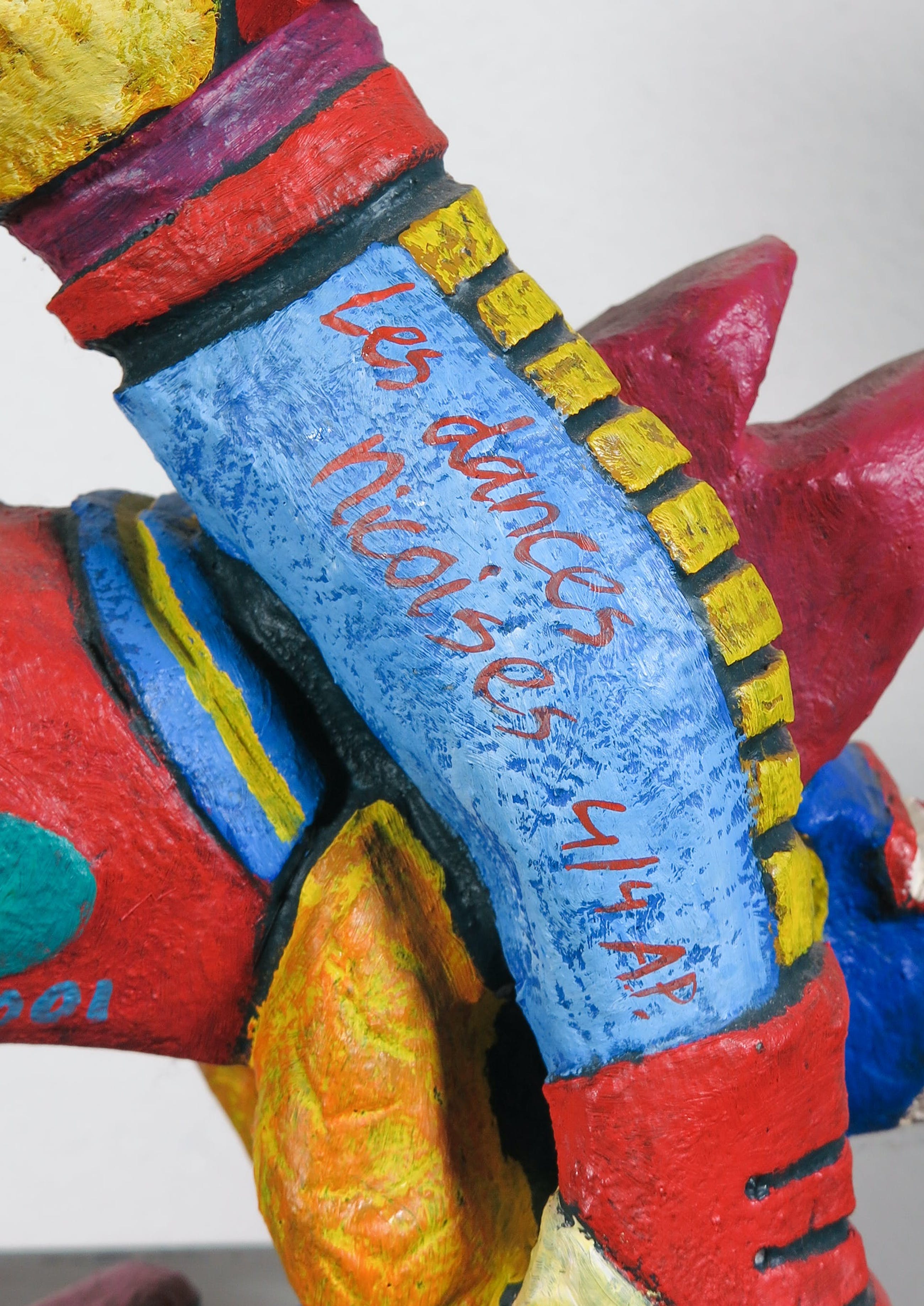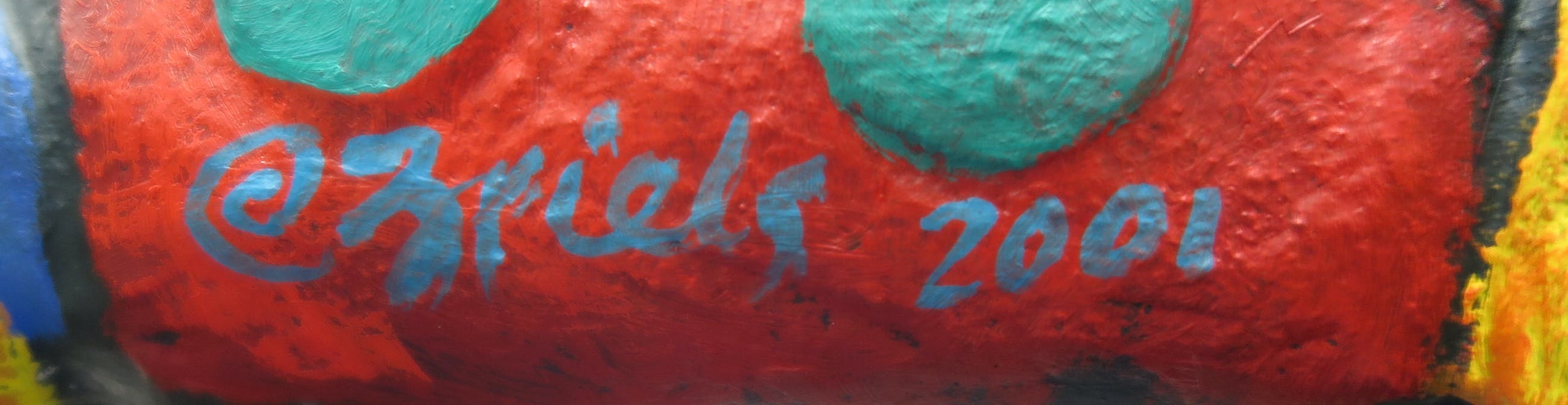 Groot kleurrijk sculptuur, gemaakt van een soort gegoten steen/composiet.