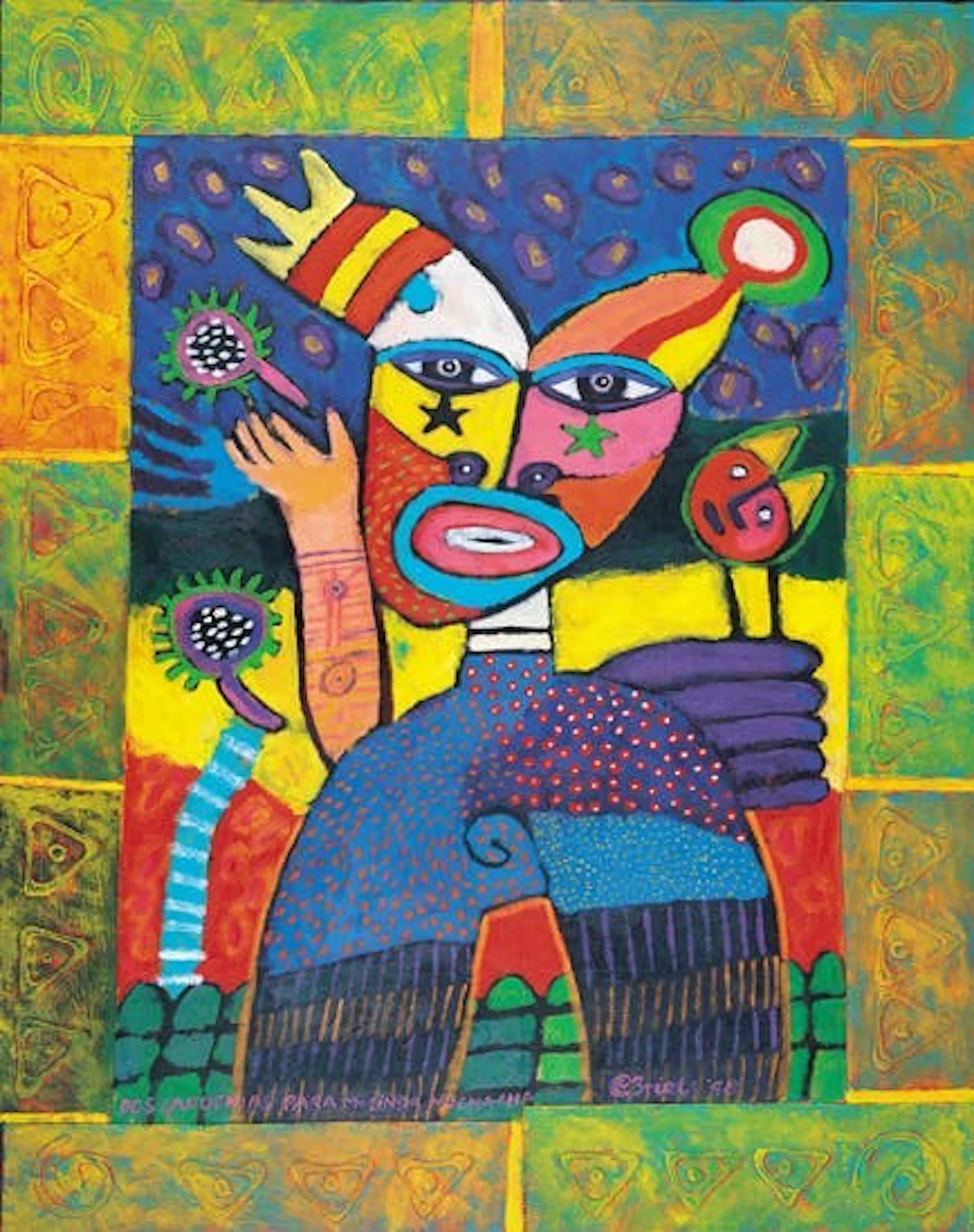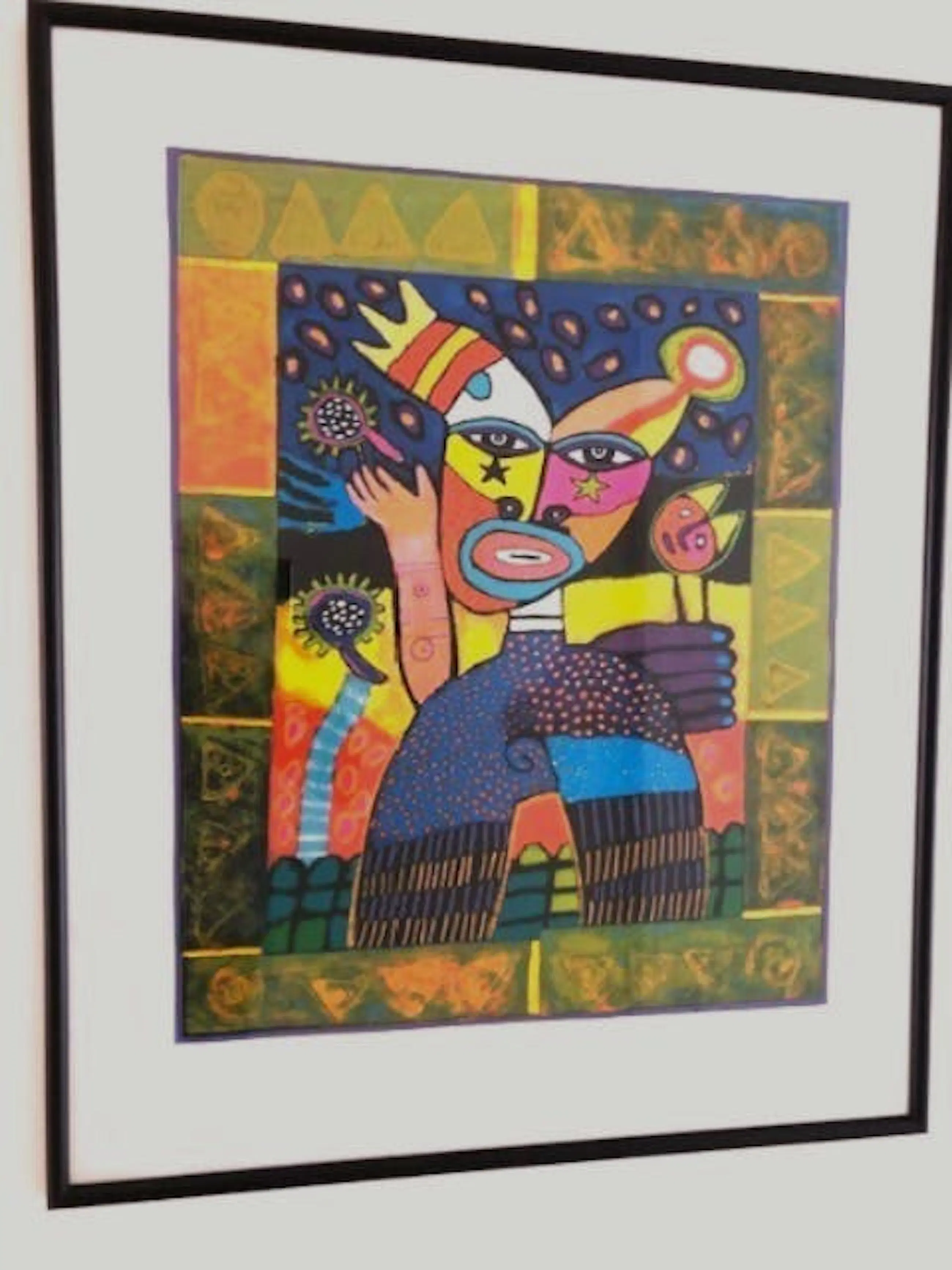 • Schitterende zeefdruk en gesigneerd door Clemens Briels • Schitterend in gebruik van kleuren en figuratie. • Ingelijst in een zwarte metalen lijst • Nummer: 140 van 175 • Eventuele bezorging in overleg