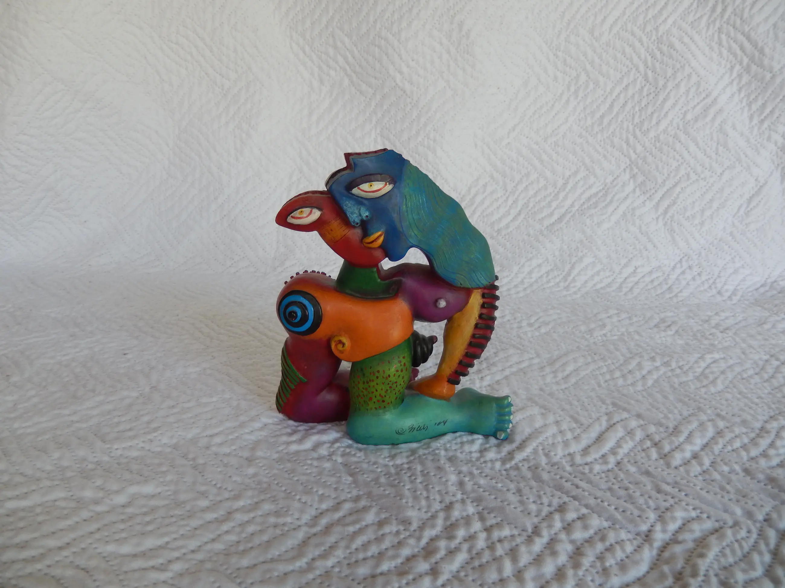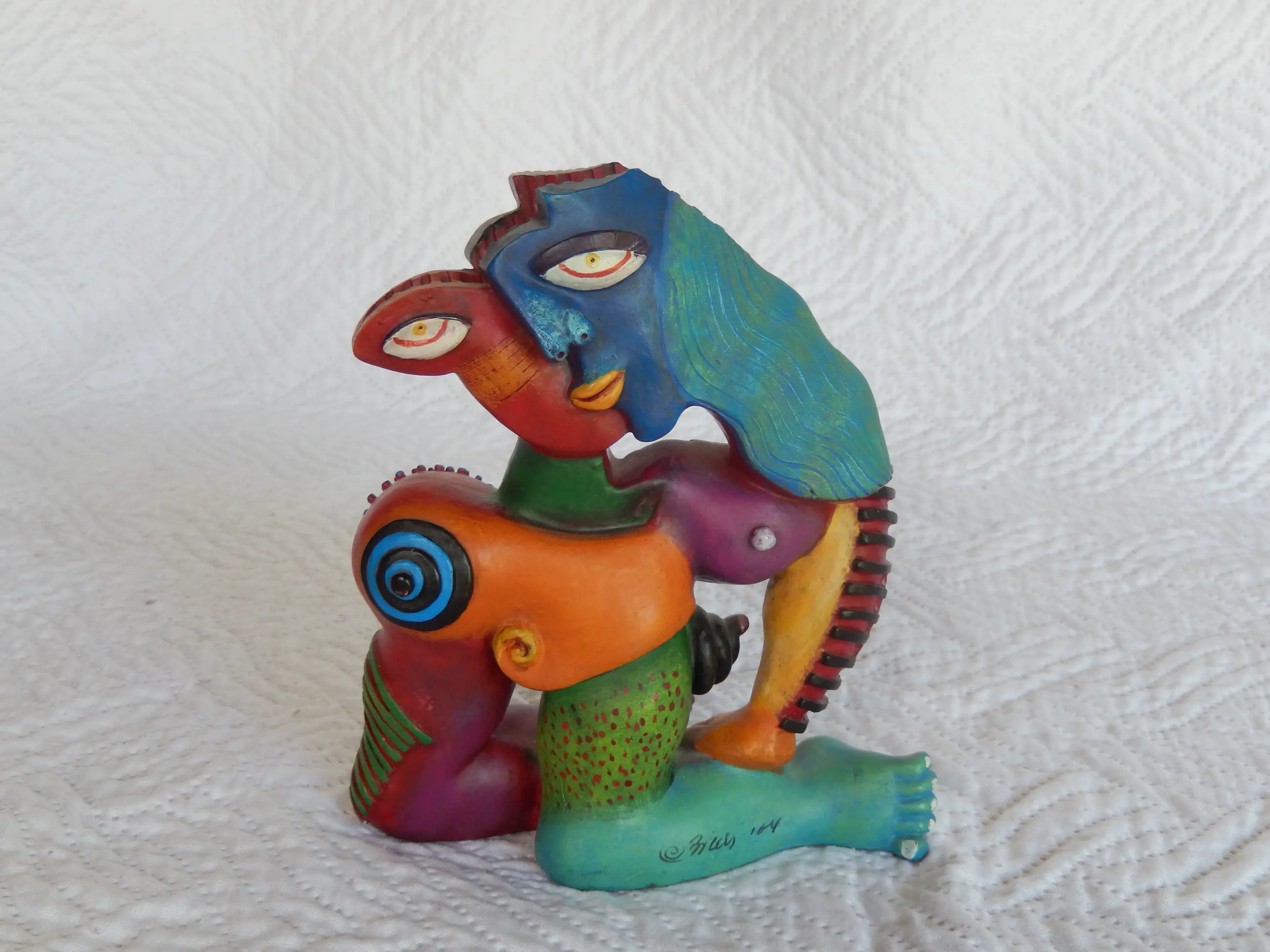 Prachtig, gaaf beeldje van Clemens Briels. Handgesigneerd door de kunstenaar. In originele verpakking. Aan beide kanten verschillend beschilderd. Het materiaal is acryl/kunsthars. Wordt, zorgvuldig verpakt, aangetekend verzonden.