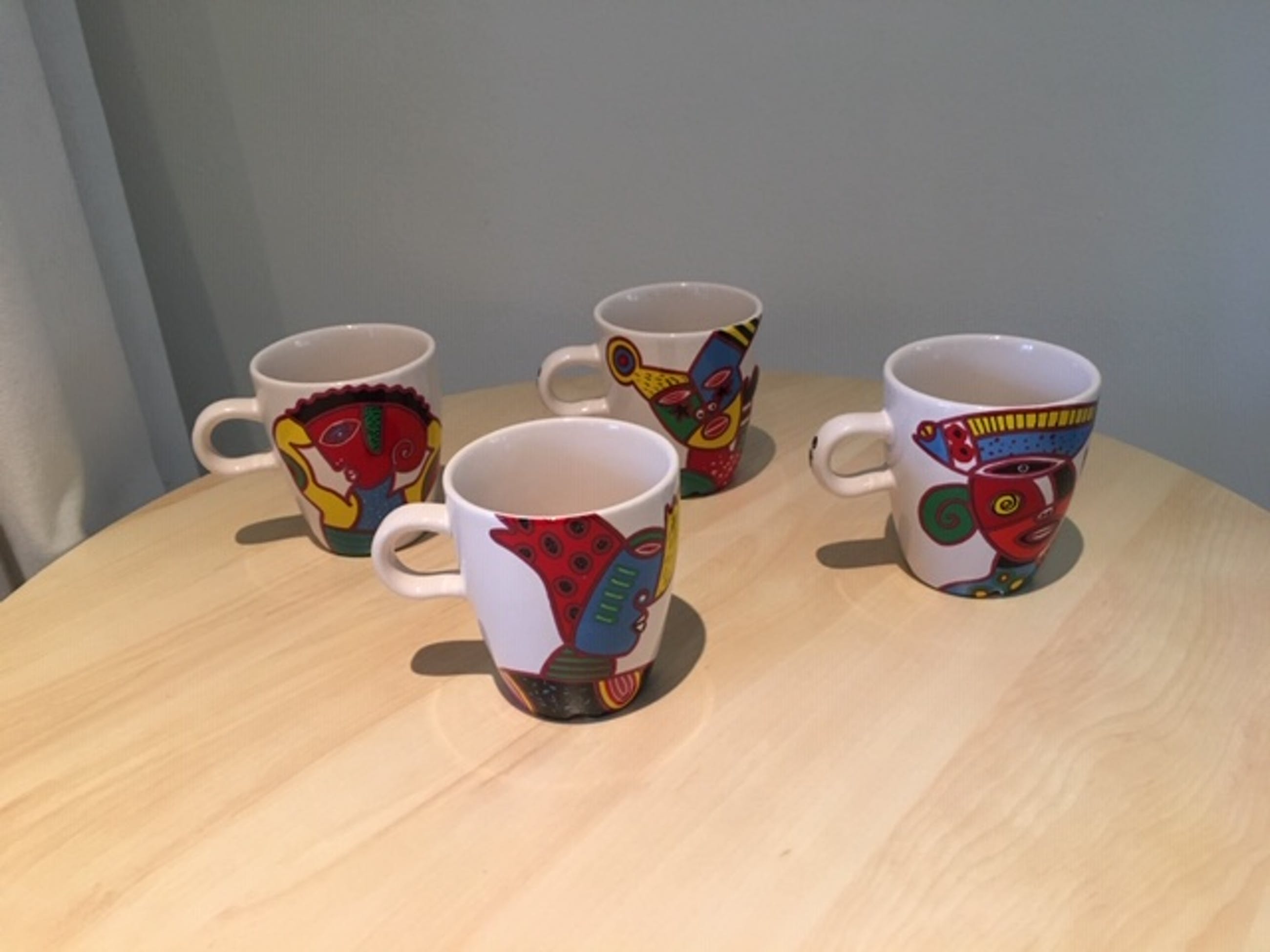 Van de MOSA art collection - uitgegeven door DE - 4 koffiekopjes met art prints van Clemens Briels. De kopjes verkeren in zeer goede staat, zijn 8,5 cm hoog en hebben een doorsnede van 6,5 cm.