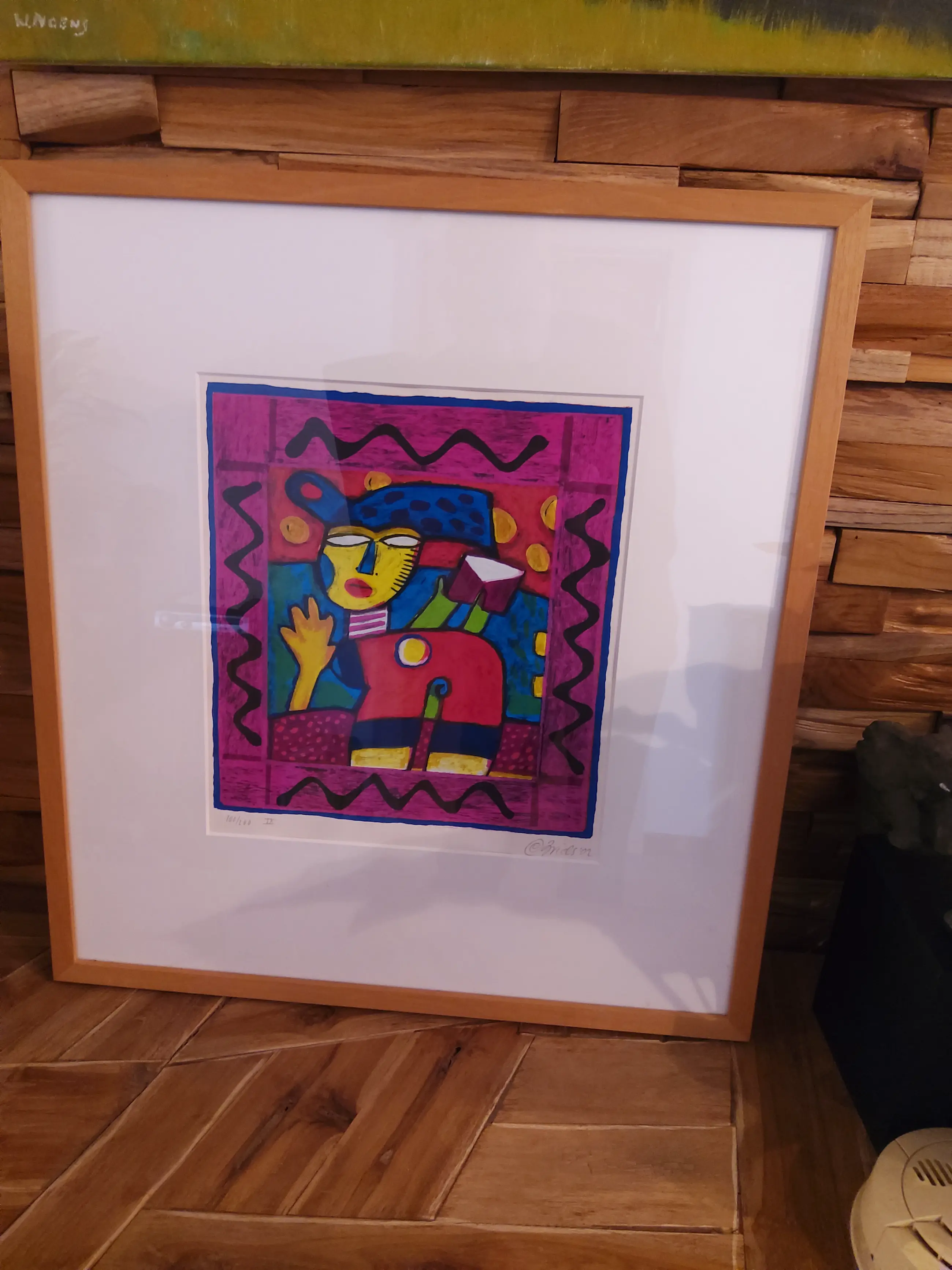 Mooie zeefdruk van briels met houten kader paspartoe en glas