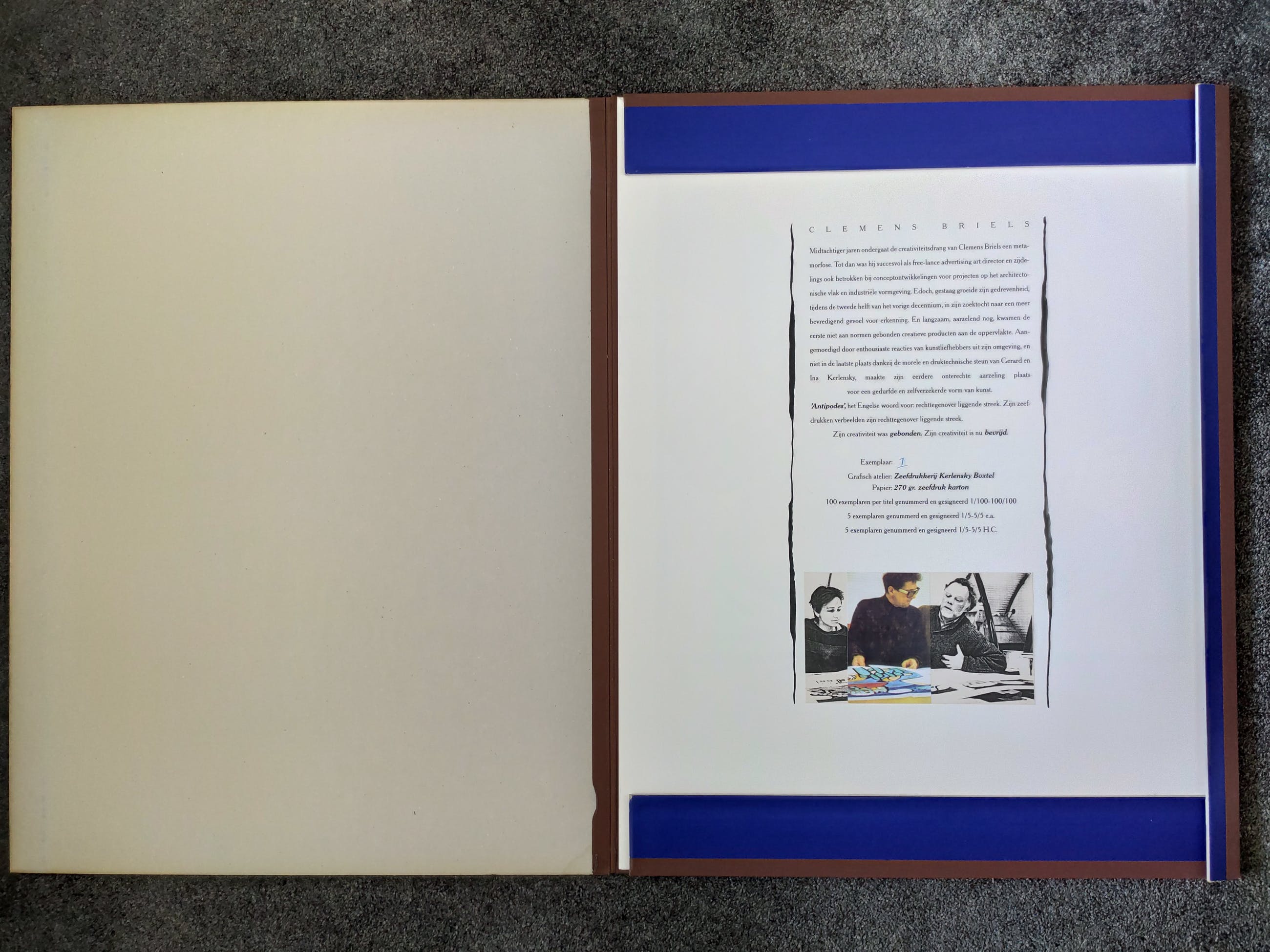 - Antipodes zeefdruk inlegvel, met blauw geschreven exemplaar nr. 1