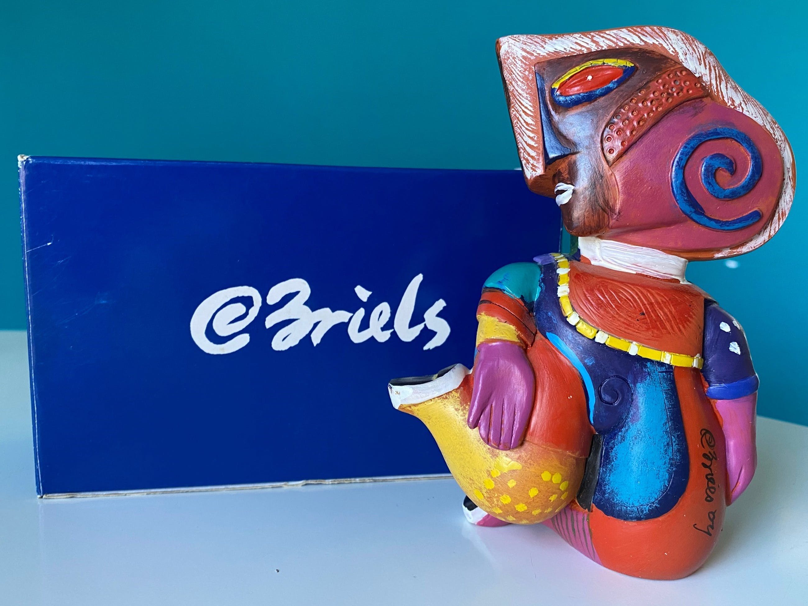 Nieuw in originele verpakking: zeer kleurrijk hand gesigneerd en gedateerd (2004) replica van het 3 meter hoge beeld Statue of Liberty van Clemens Briels. Het beeldje met een afmeting van 13h x 10b x 5d cm is speciaal door Clemens Briels vervaardigd ter ere van het jubileum van het Holland House in New York. Alle gasten, inclusief Koning Willem-Alexander en Koningin Máxima, mochten dit bijzondere beeld van vrijzinnigheid in ontvangst nemen.