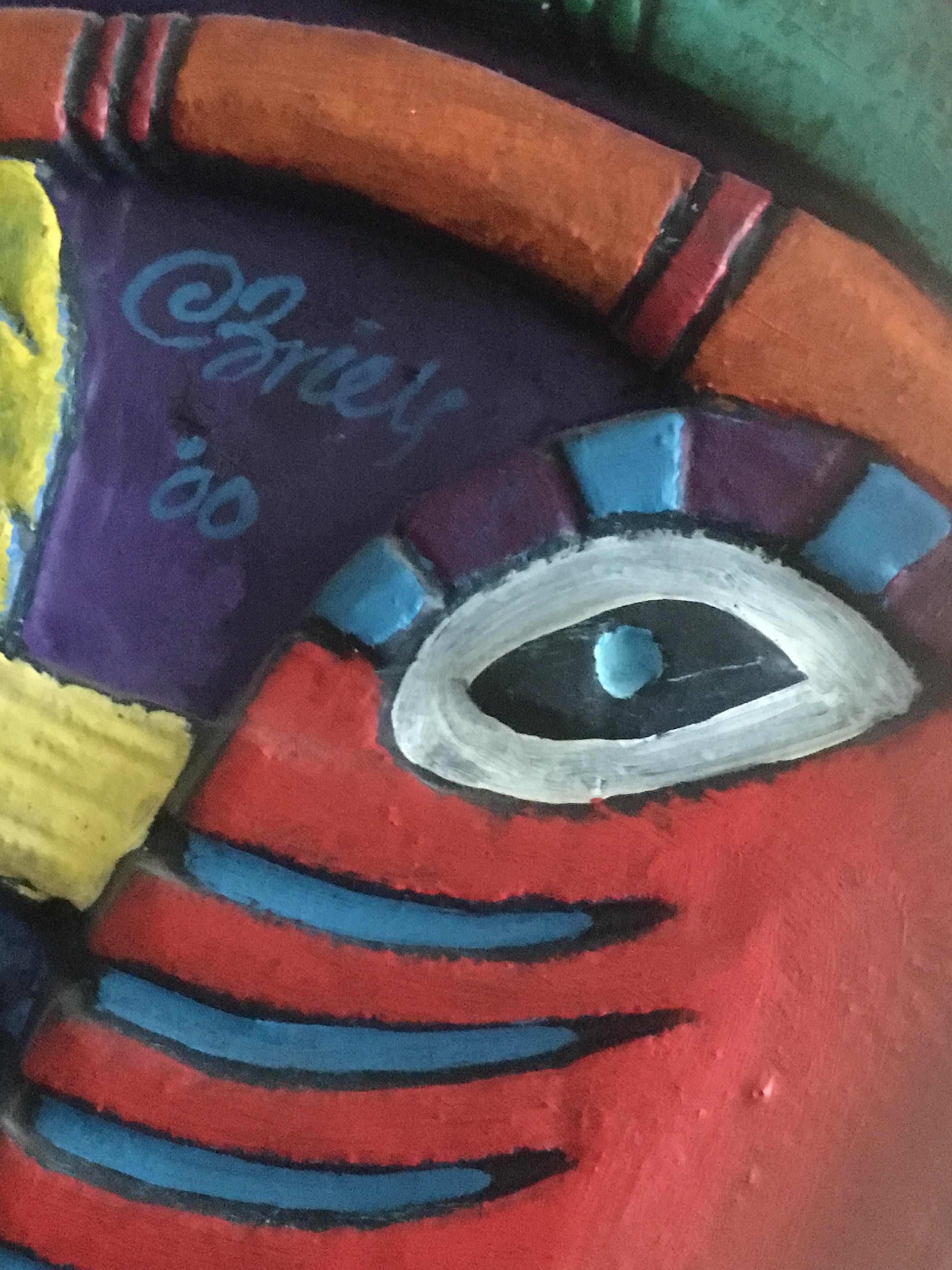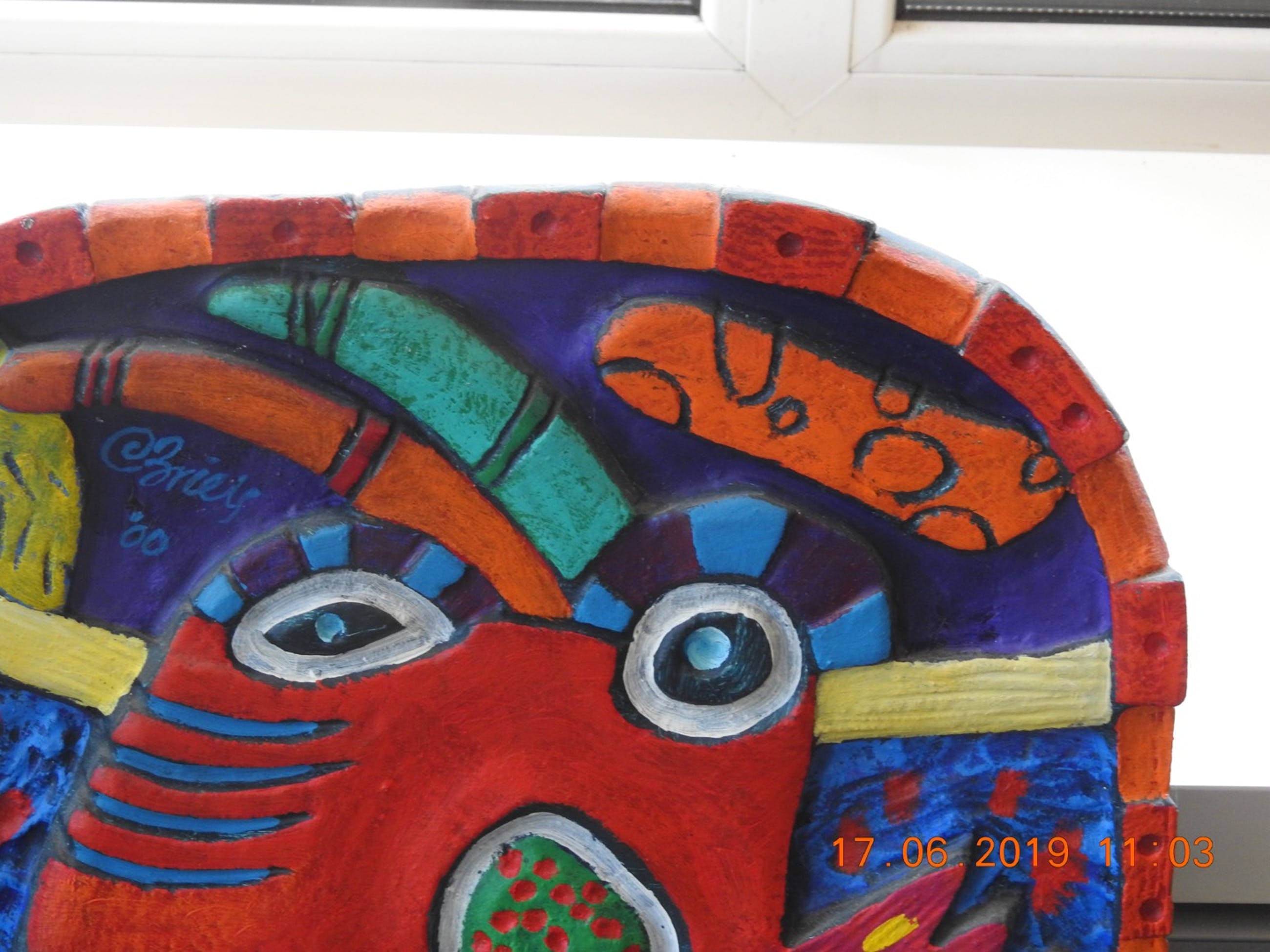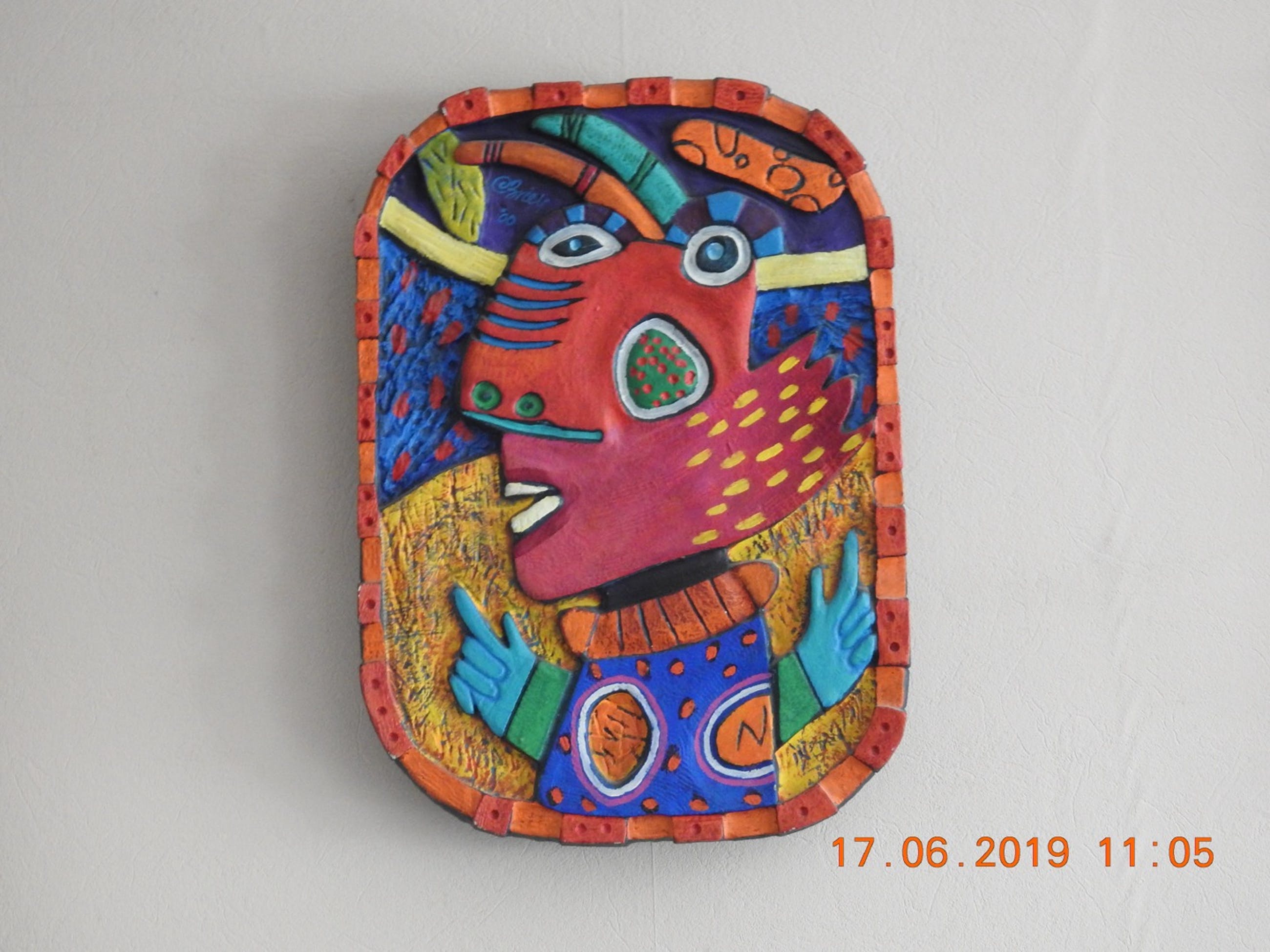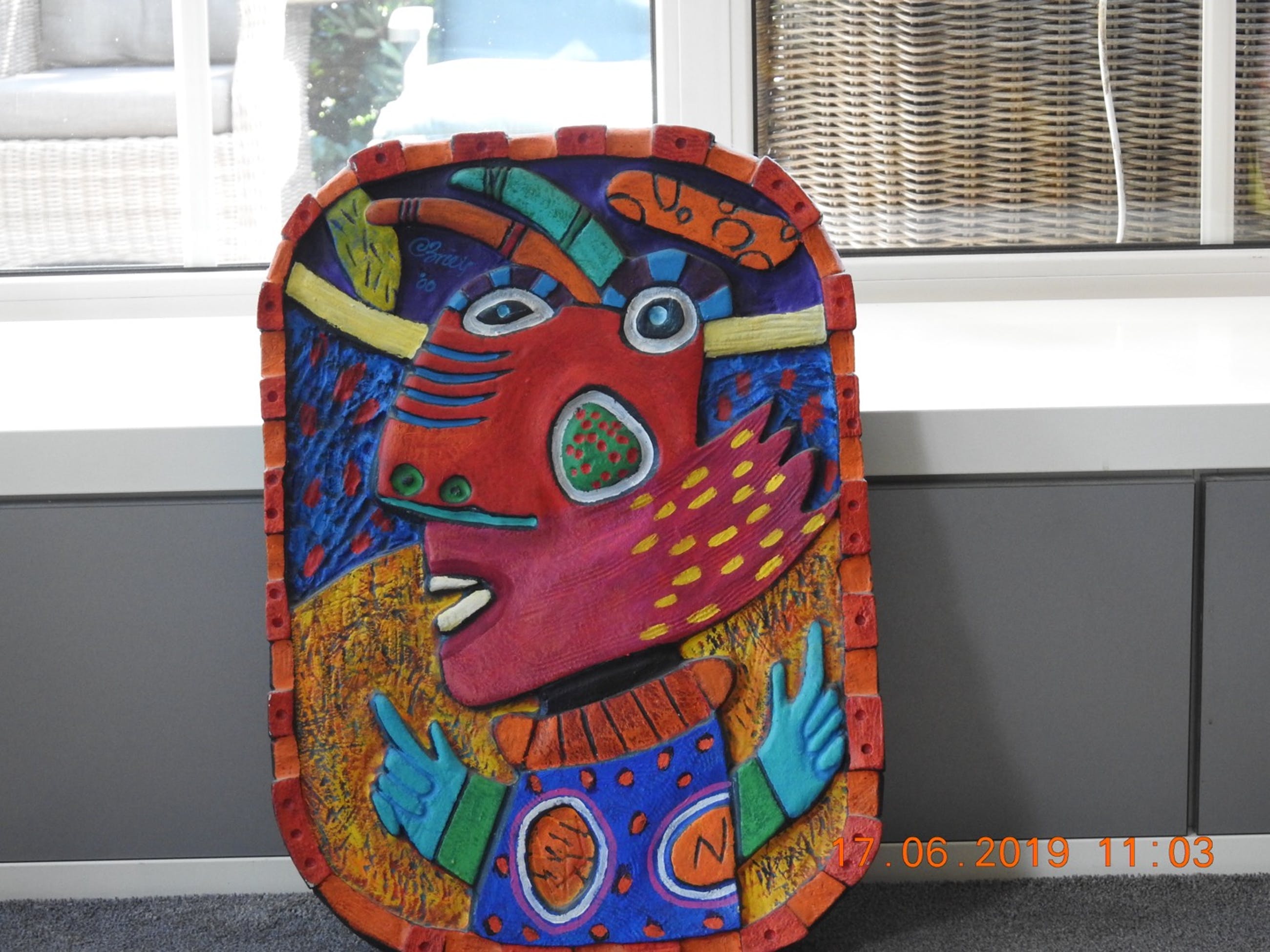 Prachtig reliëf. Kunststof met fraaie, kleurrijke schildering. Heel bijzonder object.