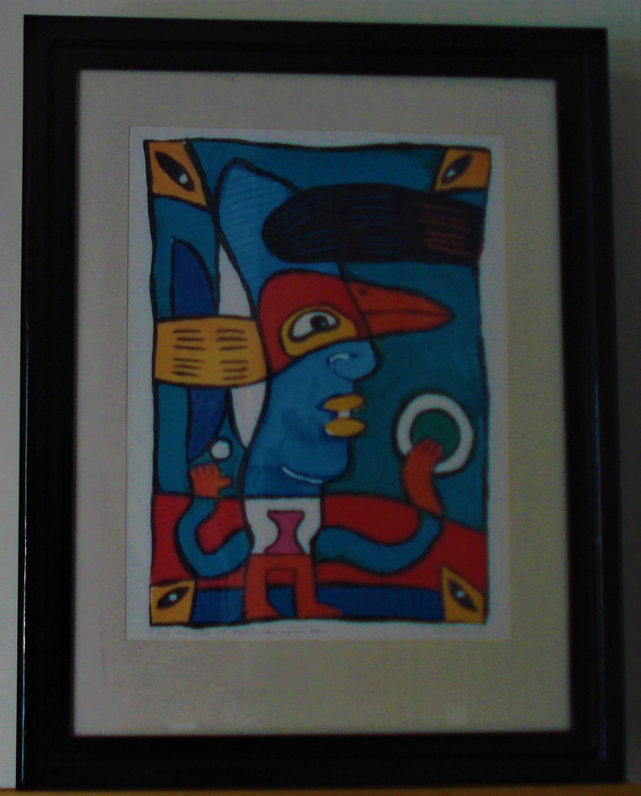 Mooie, zeldzame zeefdruk van Clemens Briels 'The World of Antipodes after Cai' Handgesigneerd, met zwarte houten lijst en passepartout