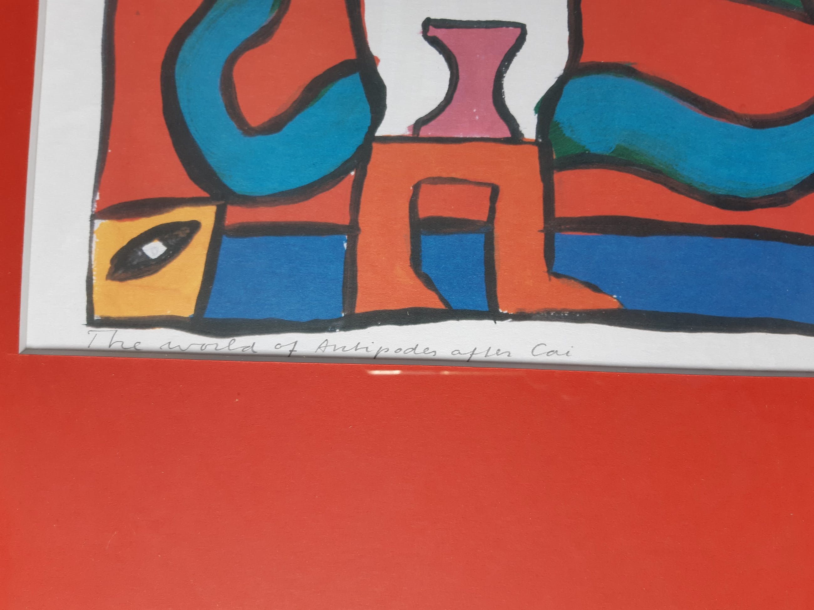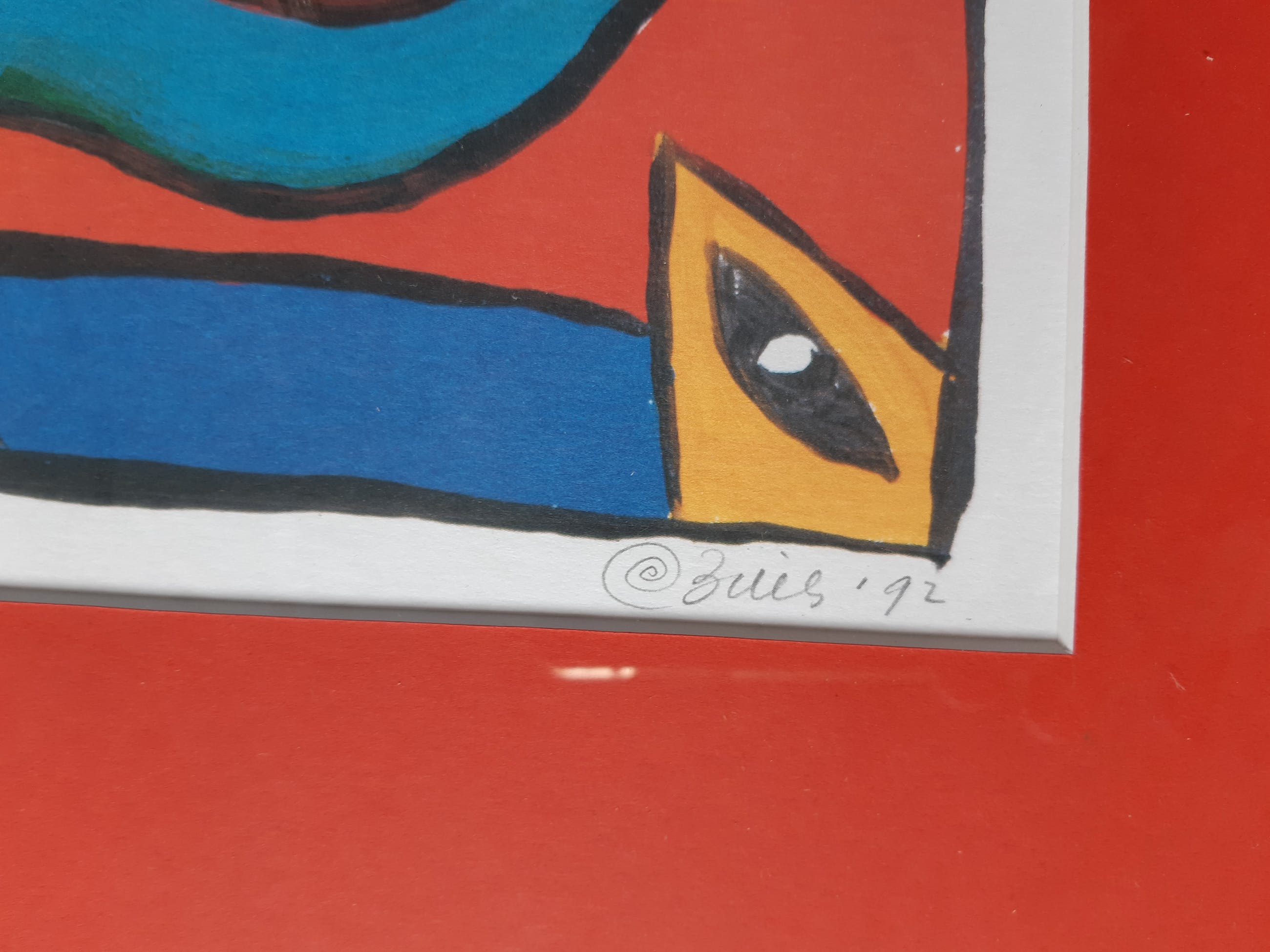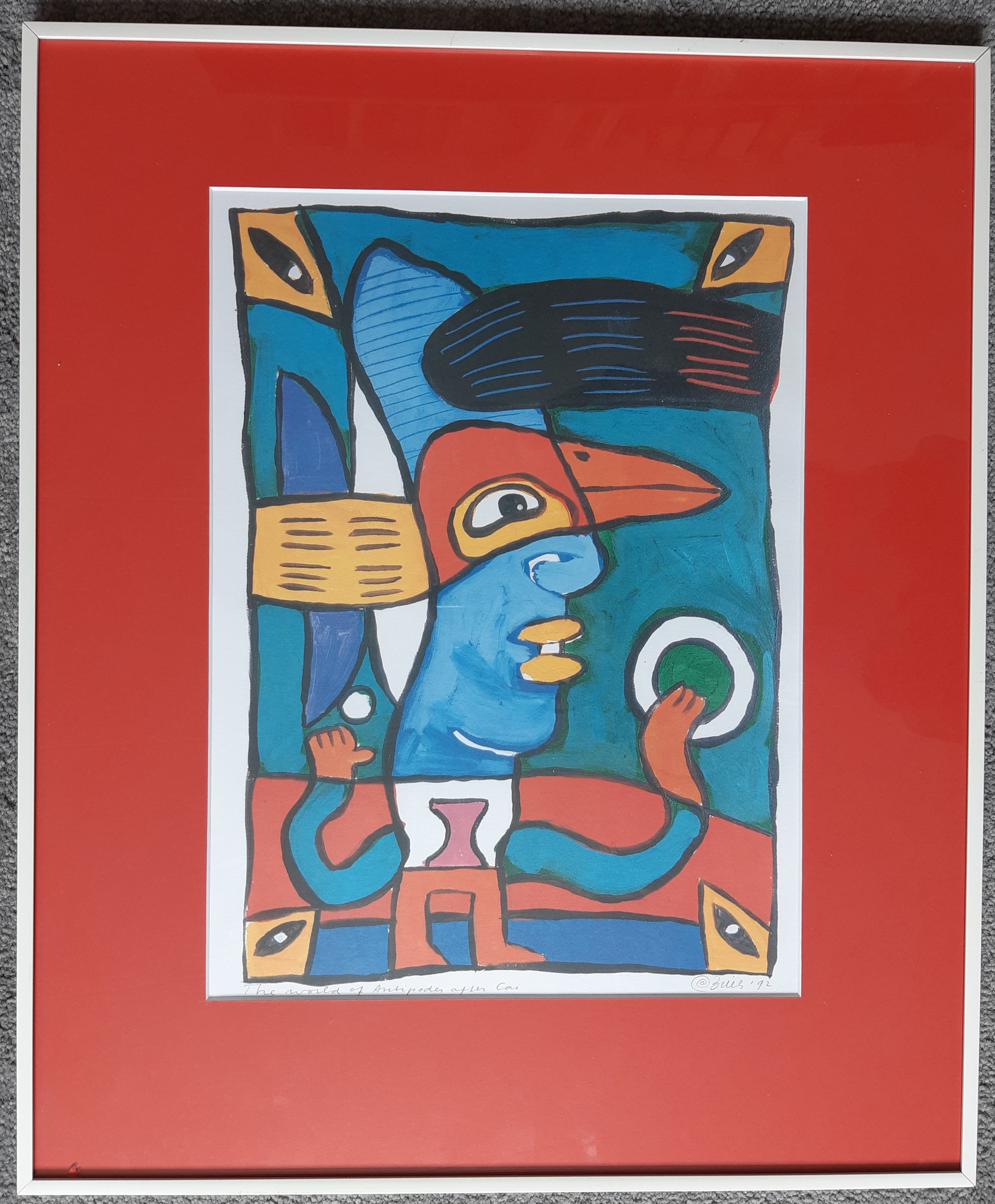 Zeefdruk van Clemens Briels, in eenvoudige witte kunststof lijst. De conditie van het werk is uitstekend, de lijst heeft lichte gebruikssporen.