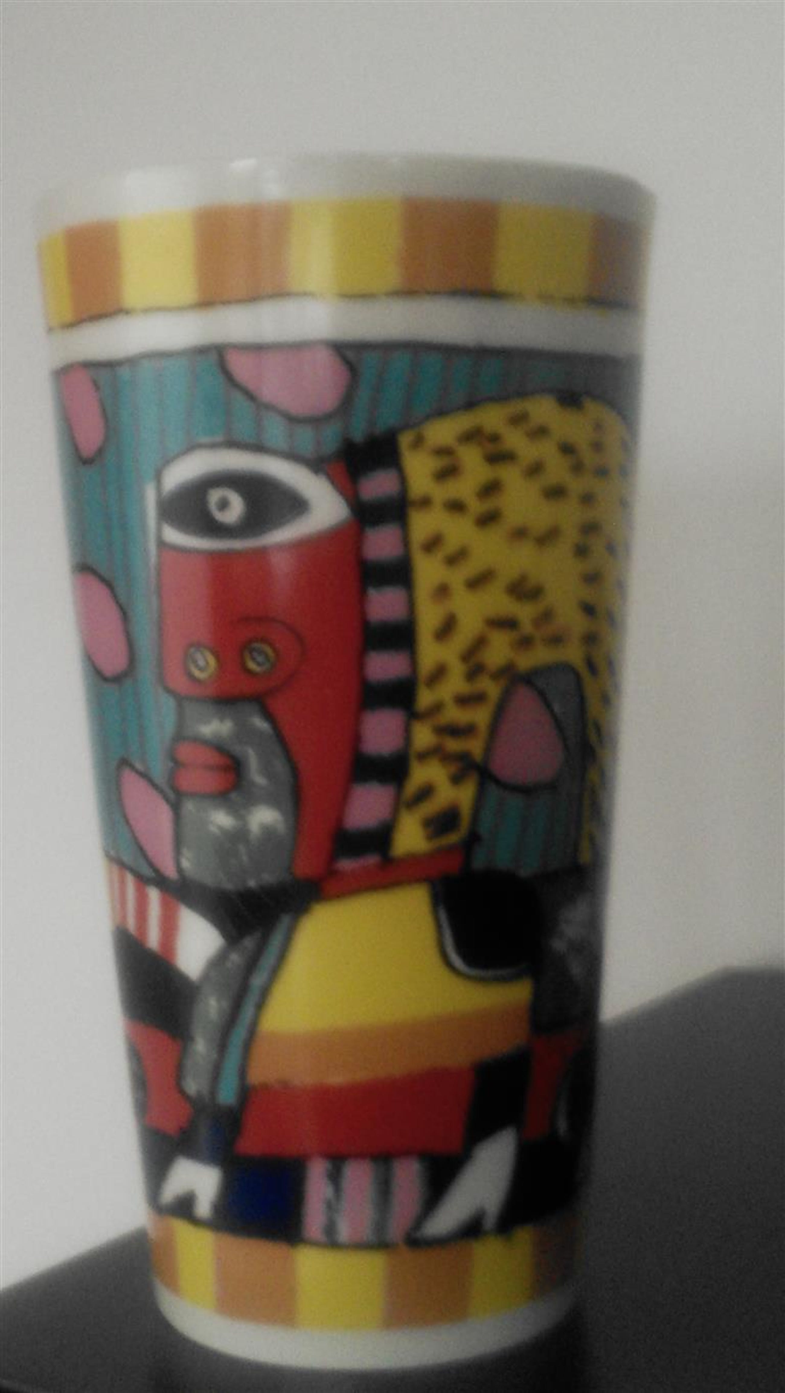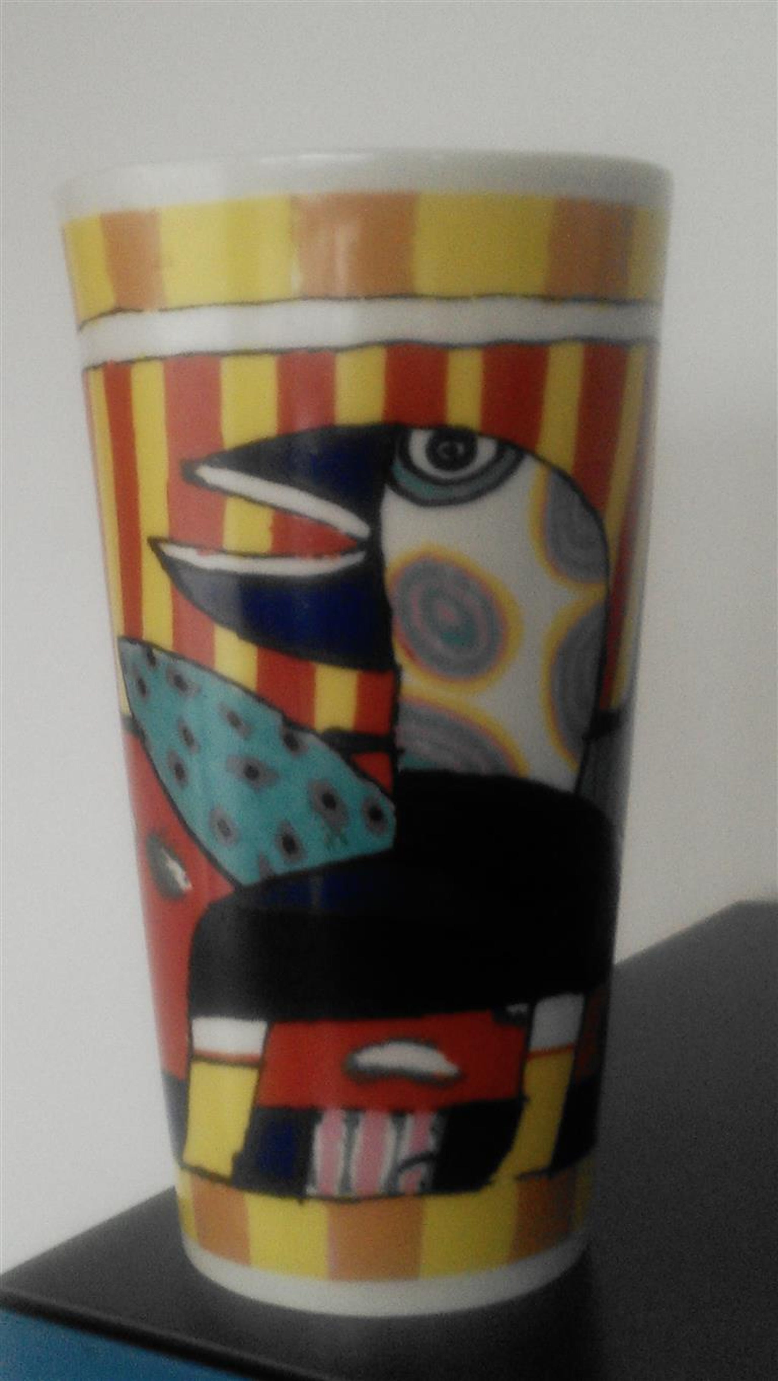 Gelimiteerde oplage genummerd 118 Grote Vaas: Crossing the fields of the unexpected Gemaakt bij Makkum voor Philips Heerlijk kleurrijk, typisch Clemens Briels