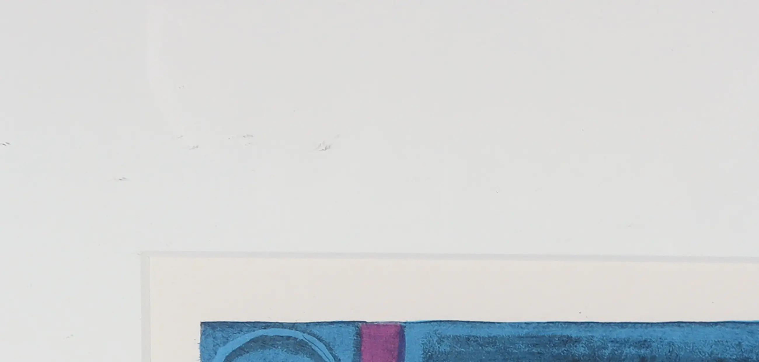 | Wat krassen op zowel lijst als glasplaat. Zeefdruk in zeer goede staat. | |