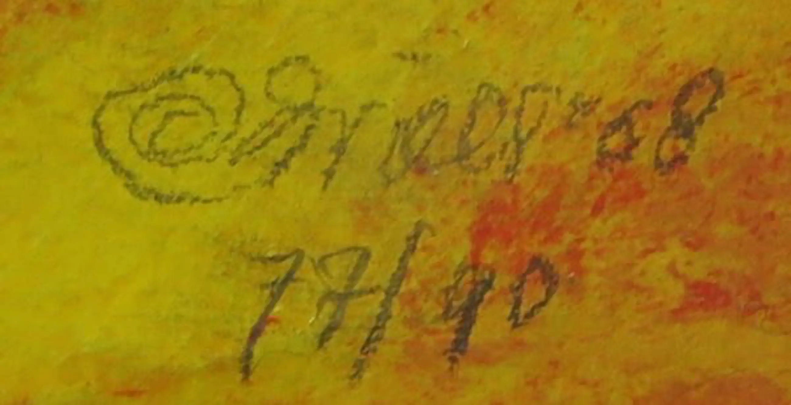 Ingelijst werk of werk in Passe-partout: beschadigingen aan lijsten beschrijven wij niet. Indien een werk achter glas is ingelijst en het glas kapot is, wordt dit vermeld. Passe-partouts zijn niet gegarandeerd.