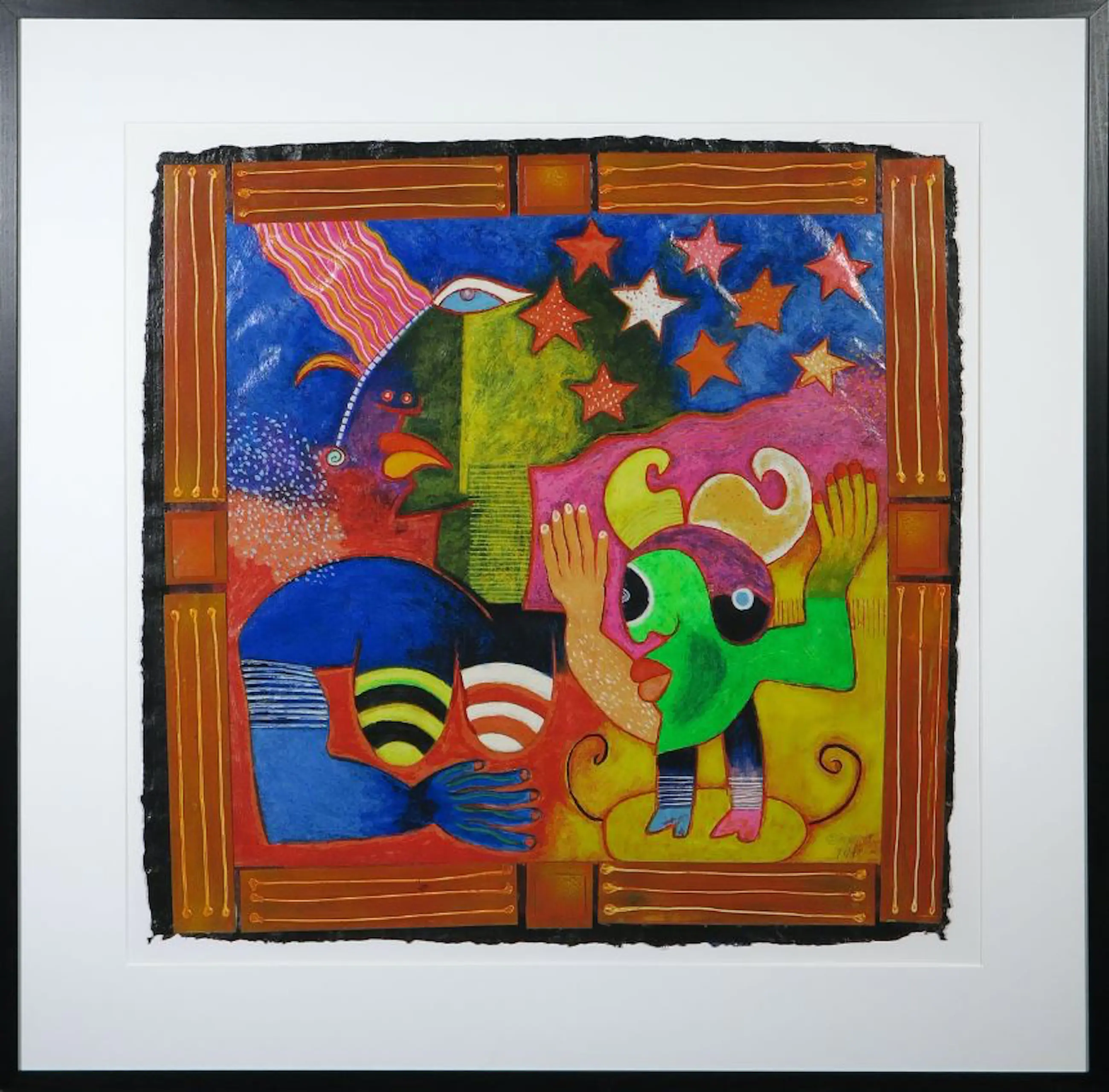 Clemens Briels - Zeefdruk en collage, Alagunas gente... - Ingelijst (Groot) - Verkocht