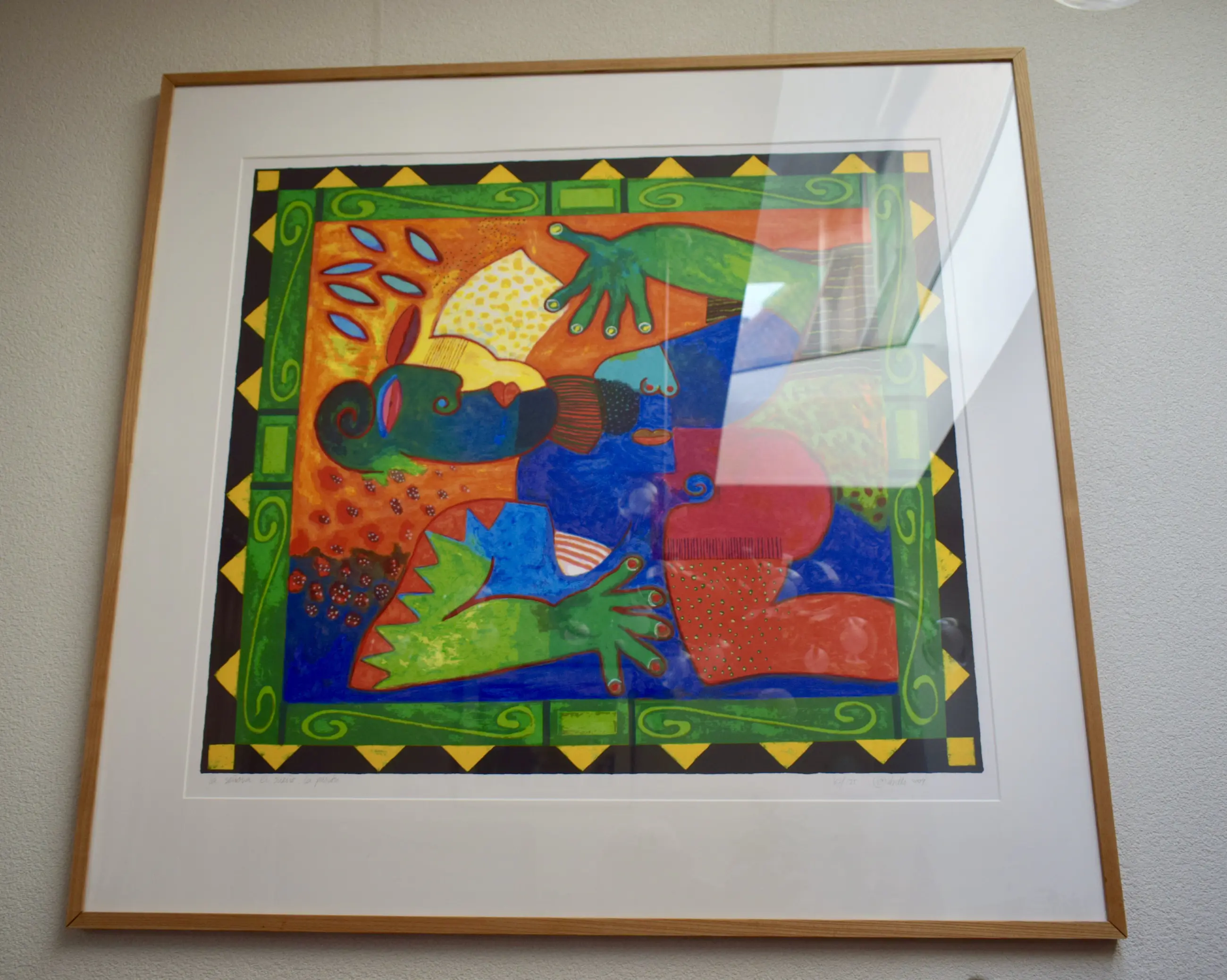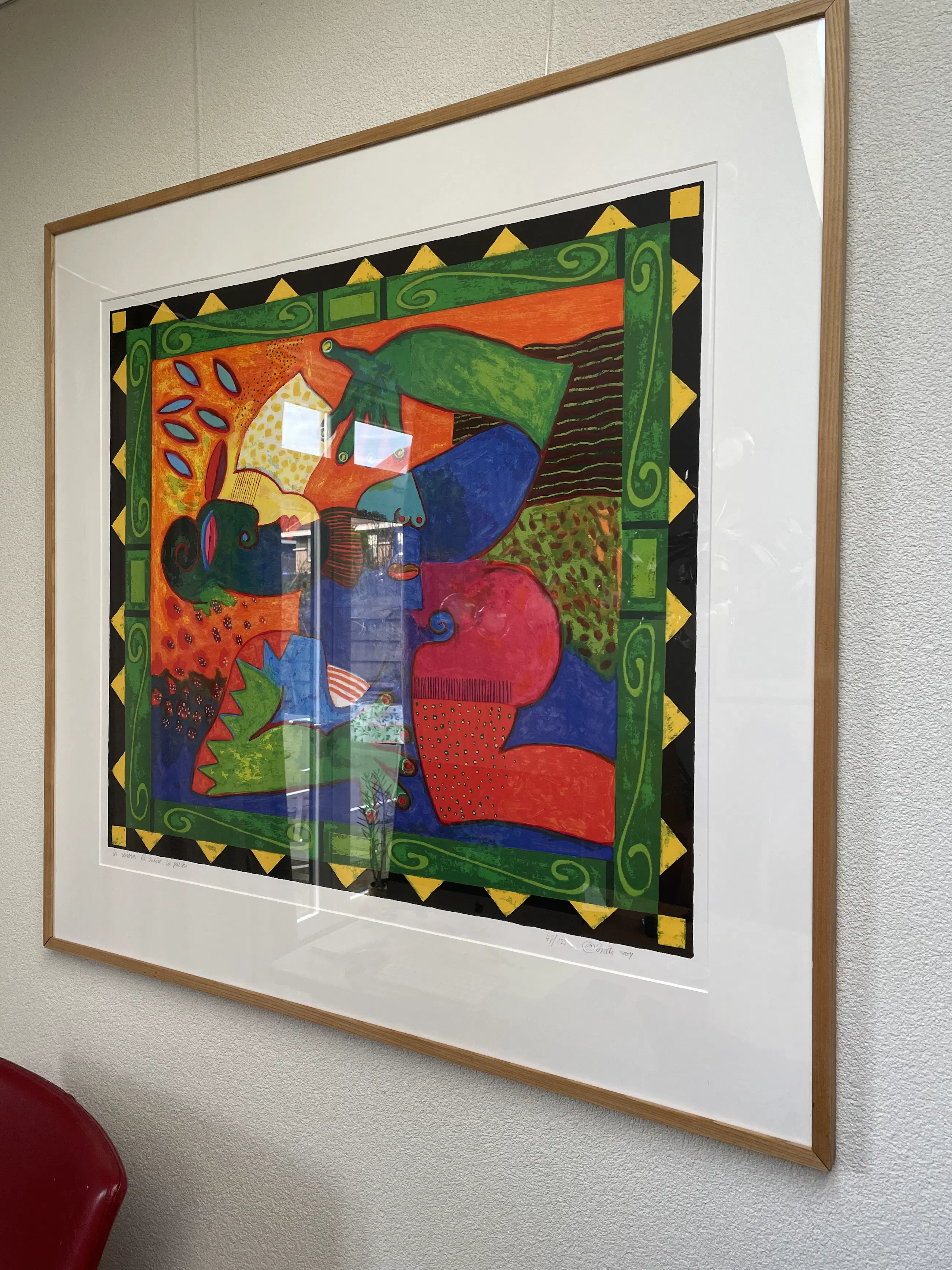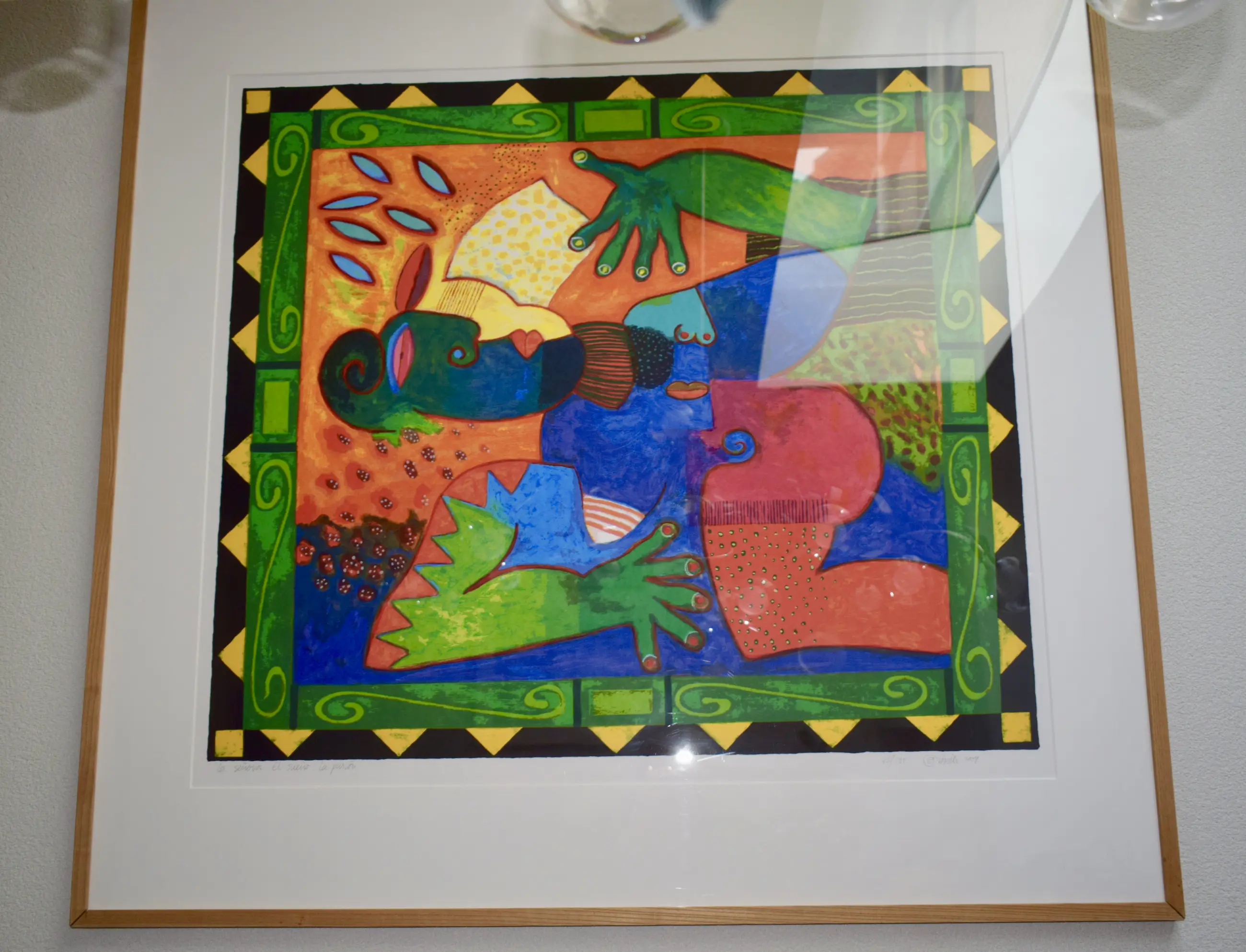 Jaartal: 2004 Techniek: Zeefdruk Drager: Papier Ingelijst: Ingelijst Afmetingen: 84 x 93 cm (h x b) Incl. lijst: 113 x 118 cm (h x b) Gesigneerd: Hand-gesigneerd Oplage: 42/125