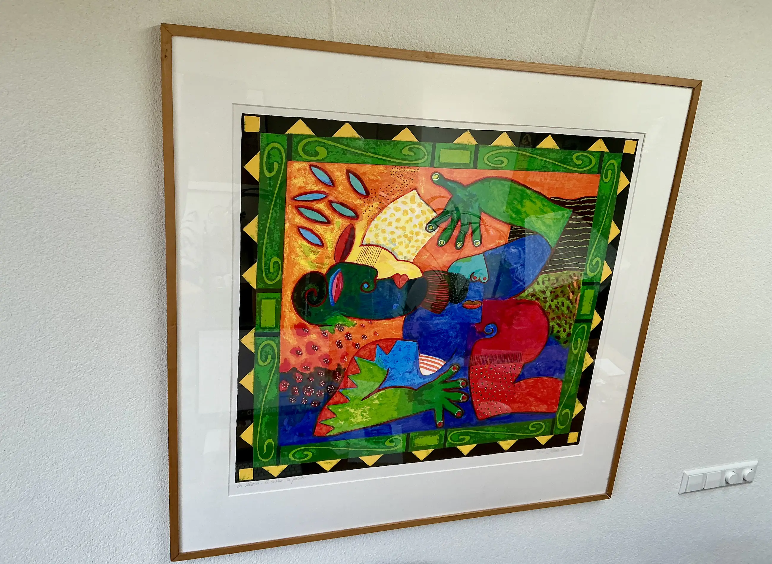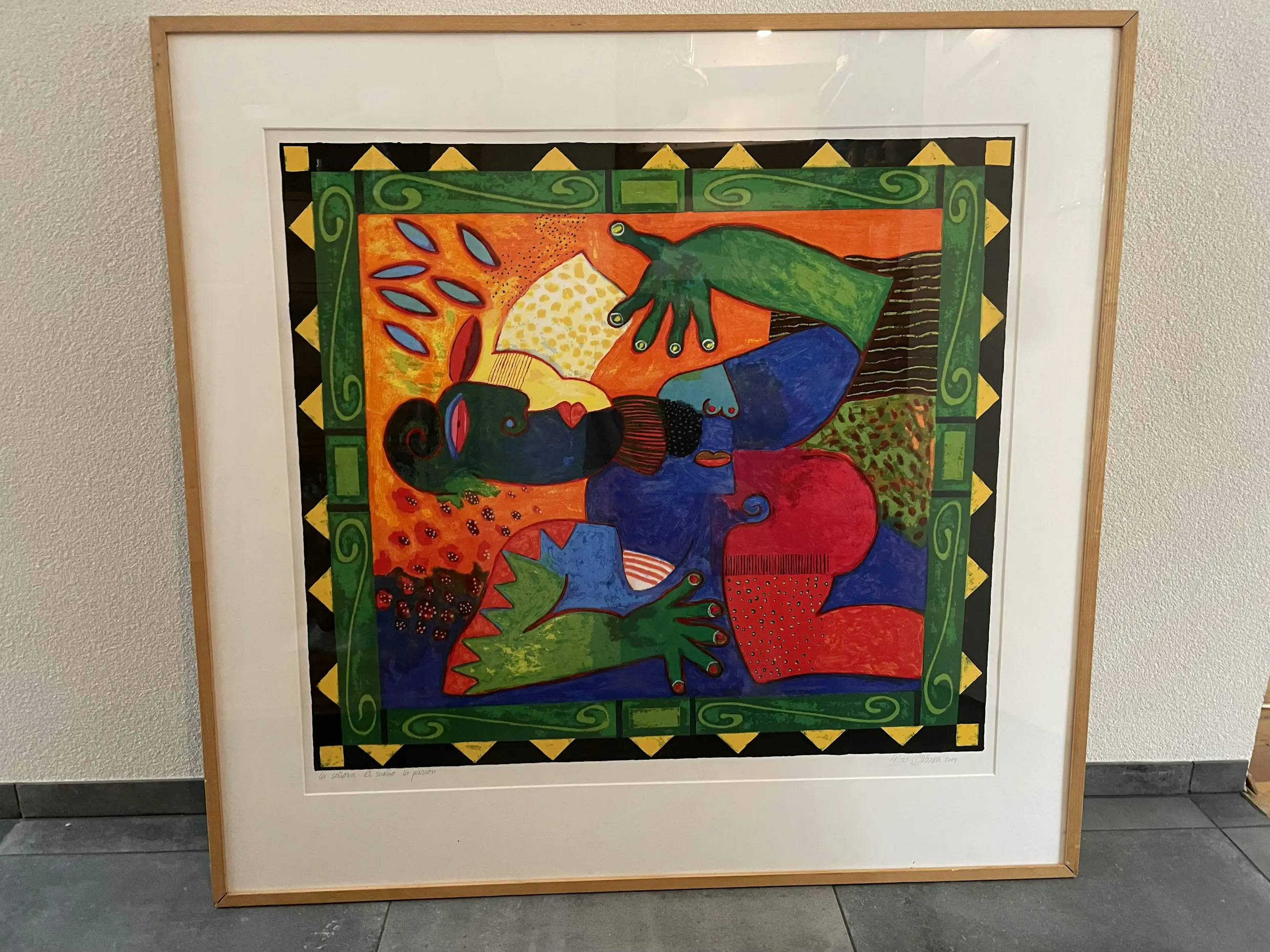 * Jaartal | 2007 * Techniek | Zeefdruk * Drager | Papier * Stijl | Modern * Onderwerp | FigurenIngelijst | Ingelijst * Afmetingen | 83 x 92 cm (h x b) * Incl. lijst | 113 x 118 cm (h x b) * Gesigneerd | Handgesigneerd * Oplage | 69/125