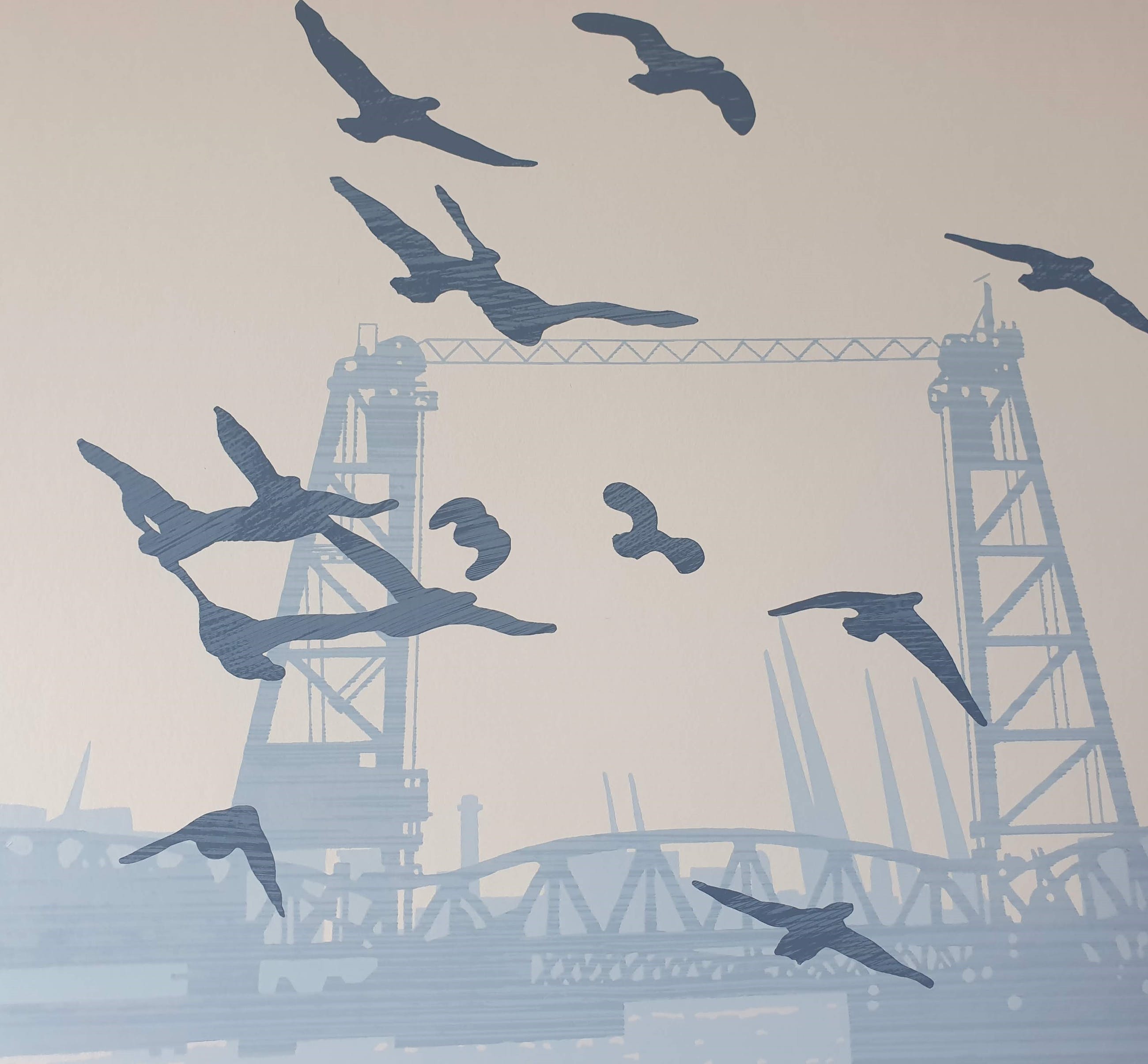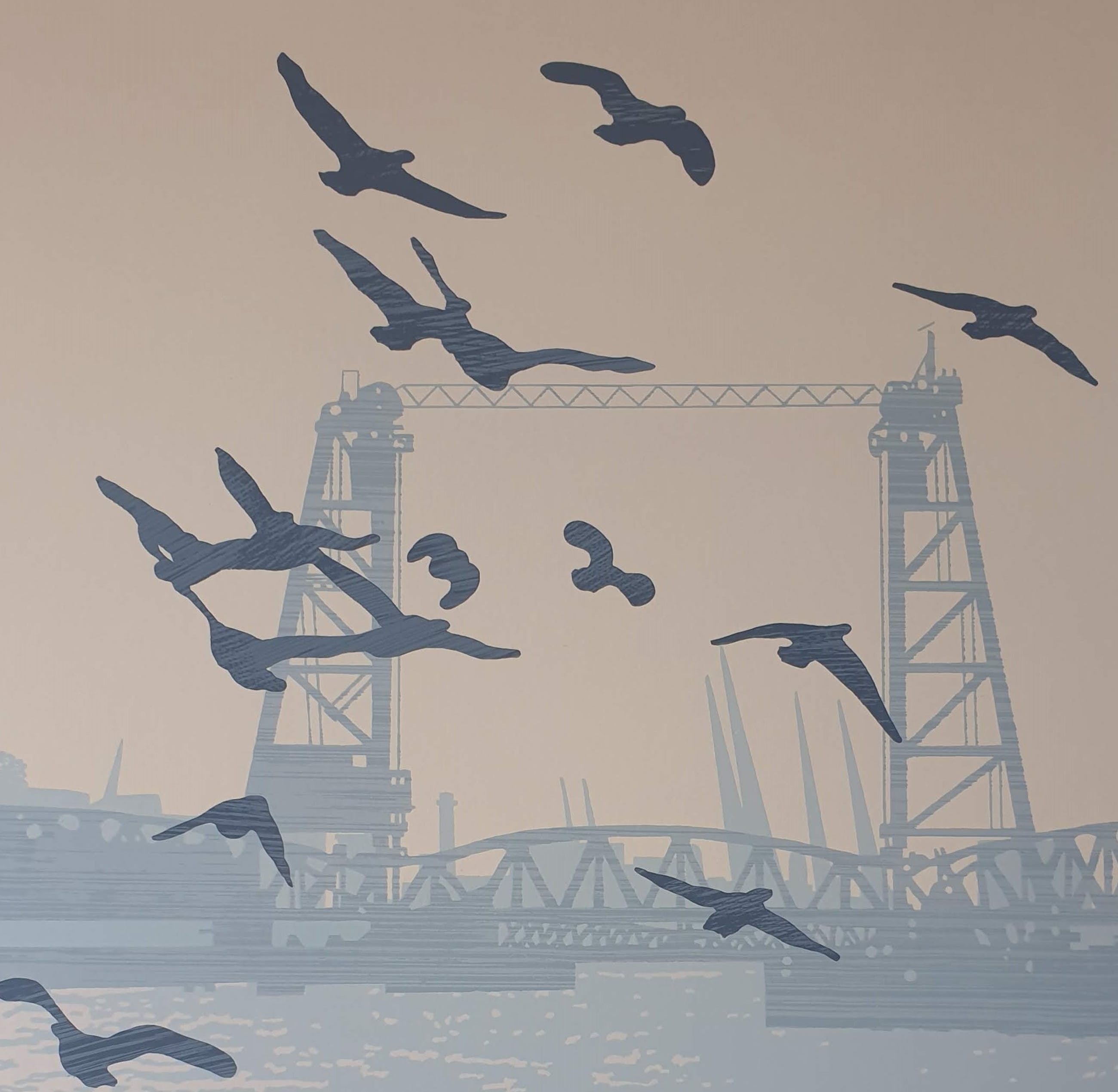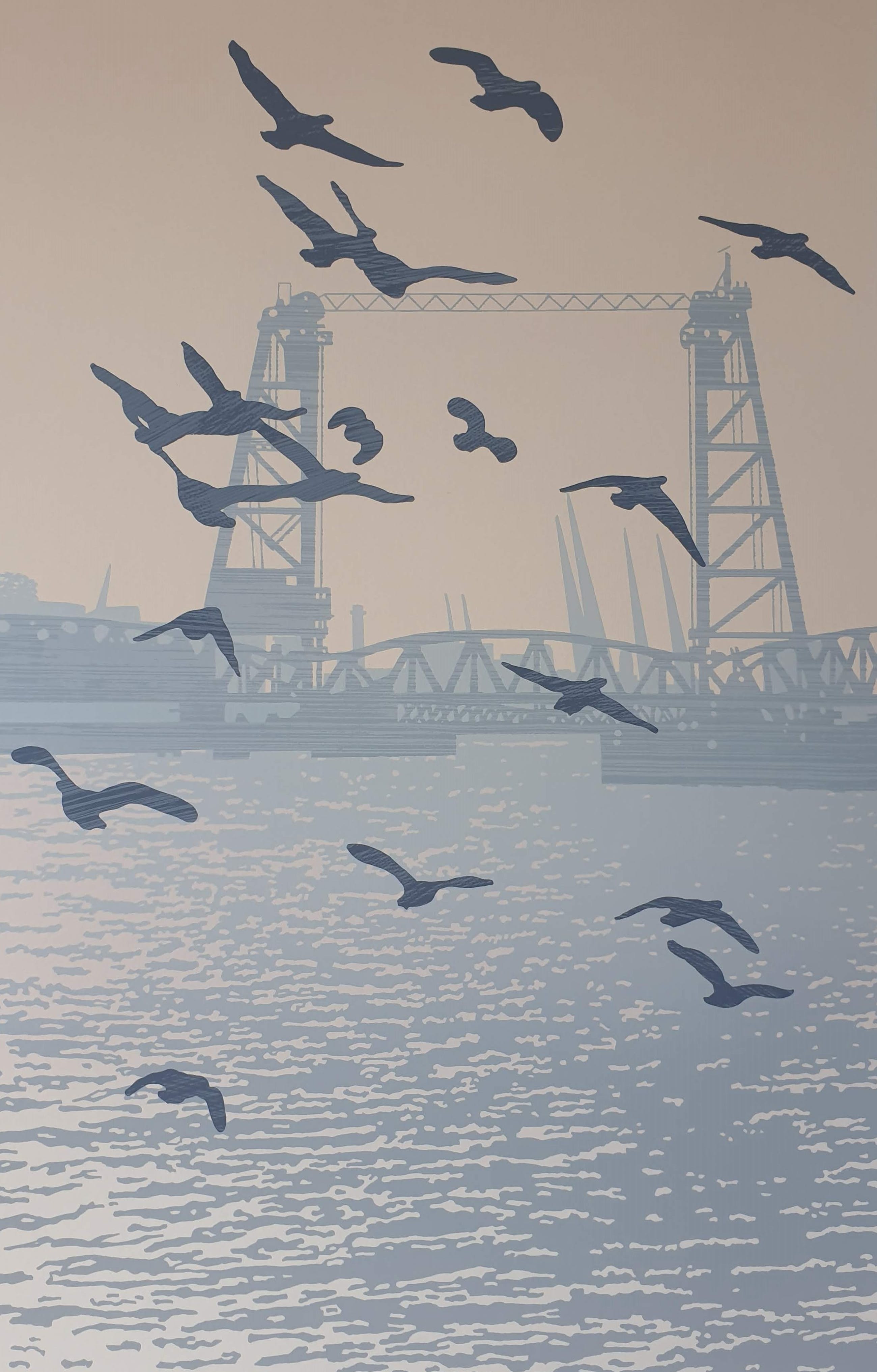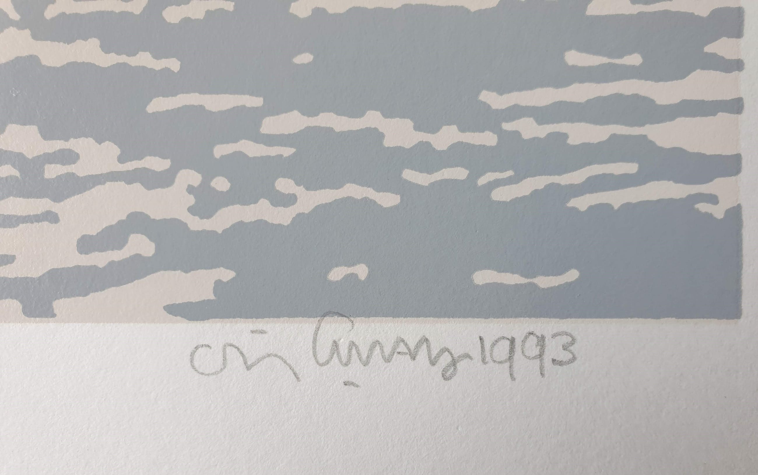 Mooie zeefdruk van de in Rotterdam geboren schilder, tekenaar en zeefdrukker Clemens Zijlmans, geboren 30-12-1948 (RKD 86393). Hij genoot zijn opleiding aan de Academie voor Beeldende Kunsten in Breda en de Jan van Eyck Academie in Maastricht. Zijlmans woont en werkt in Rotterdam.