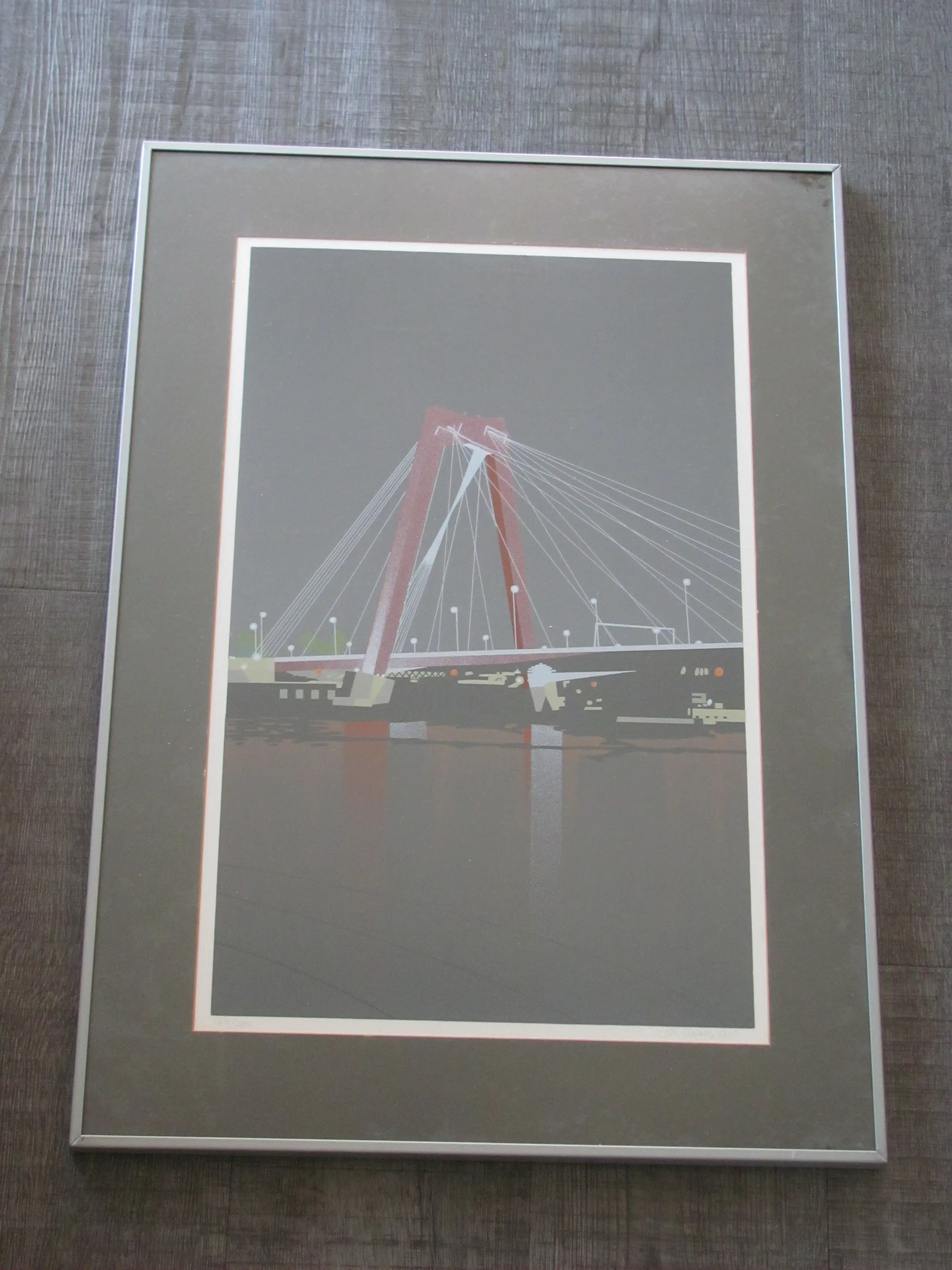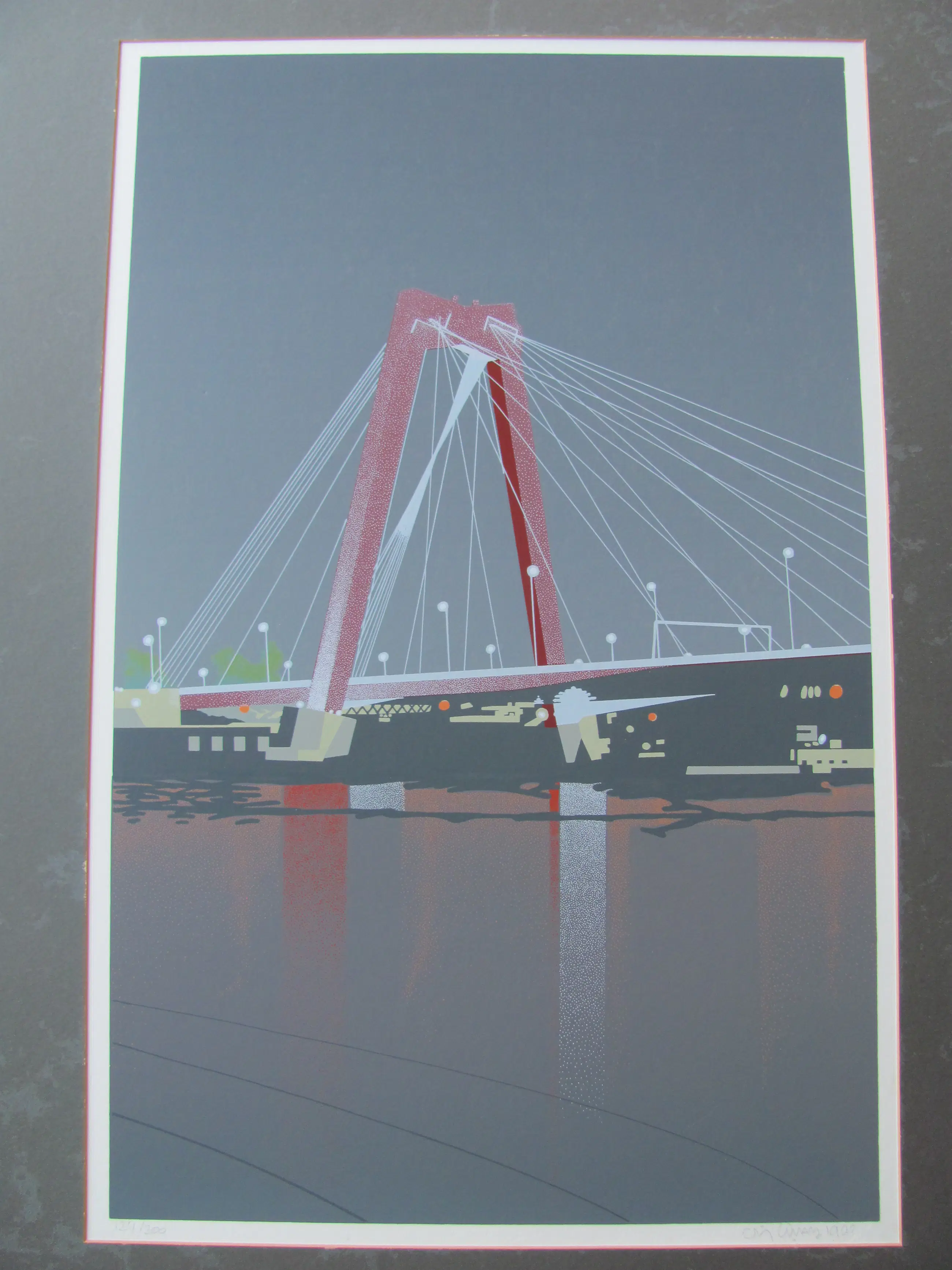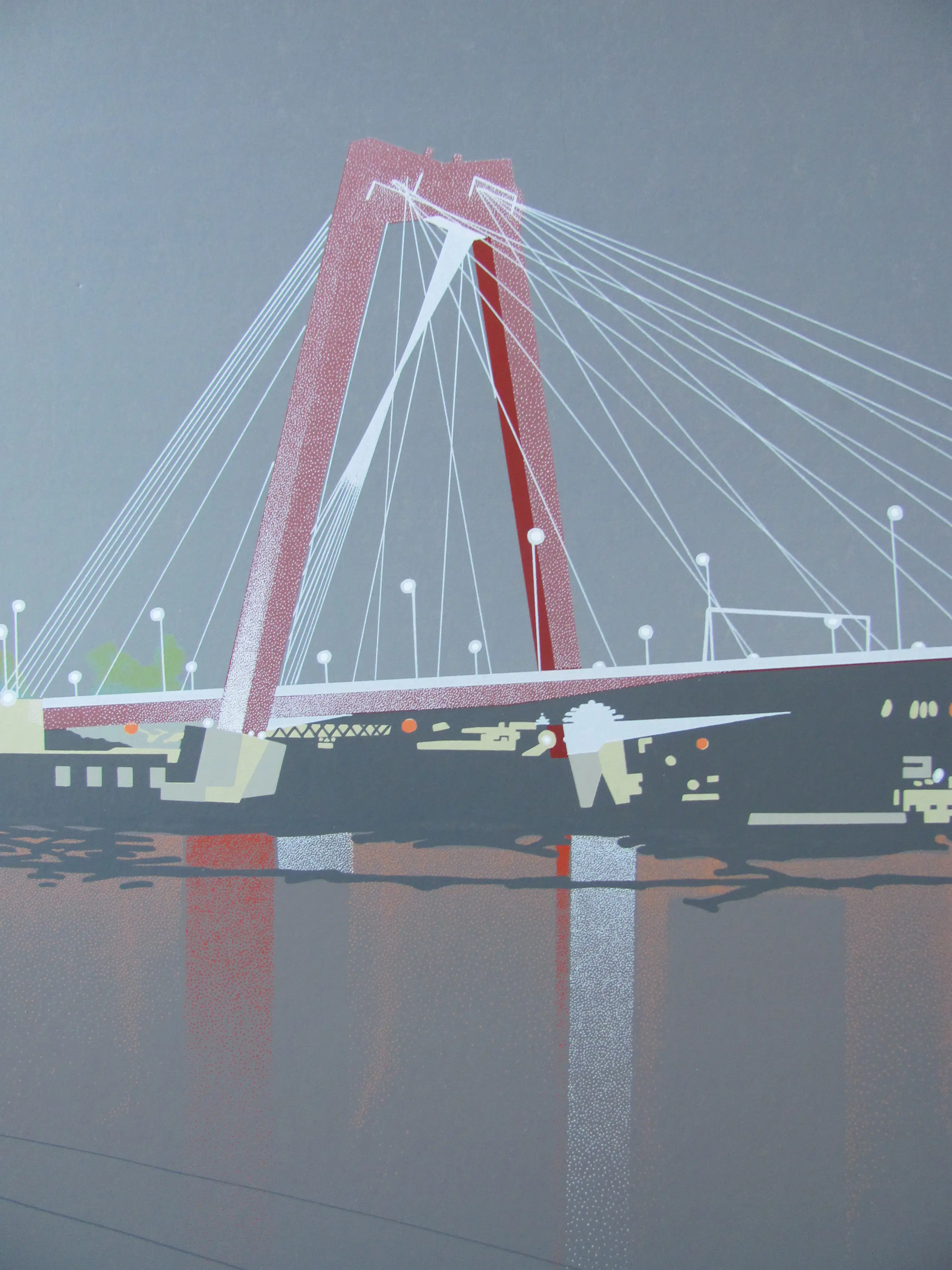 Zeefdruk van Clemens Zijlmans uit 1992 van de Willemsbrug in Rotterdam.