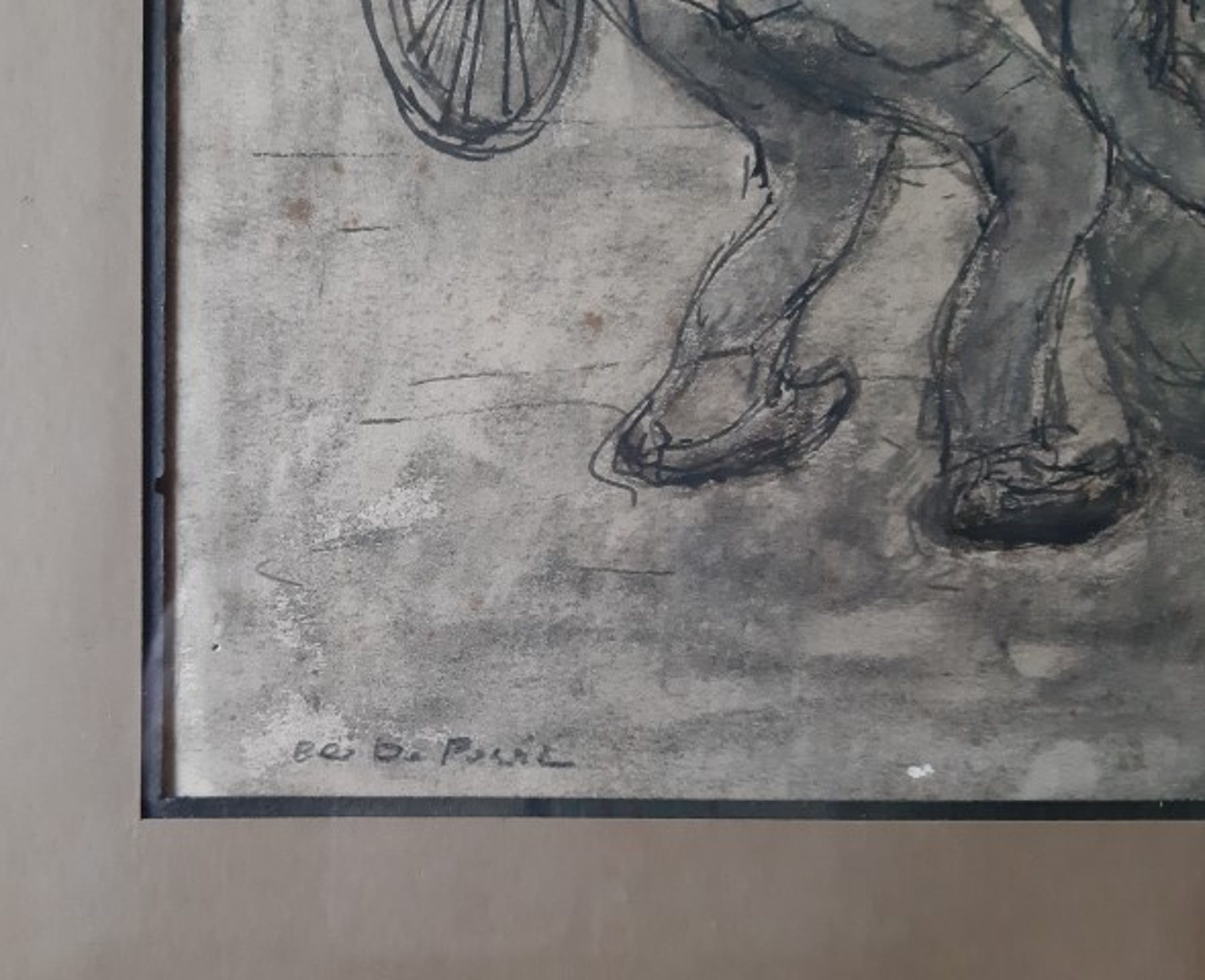 Onder glas met eikenhouten lijst en passepartout. Geen enkele schade.