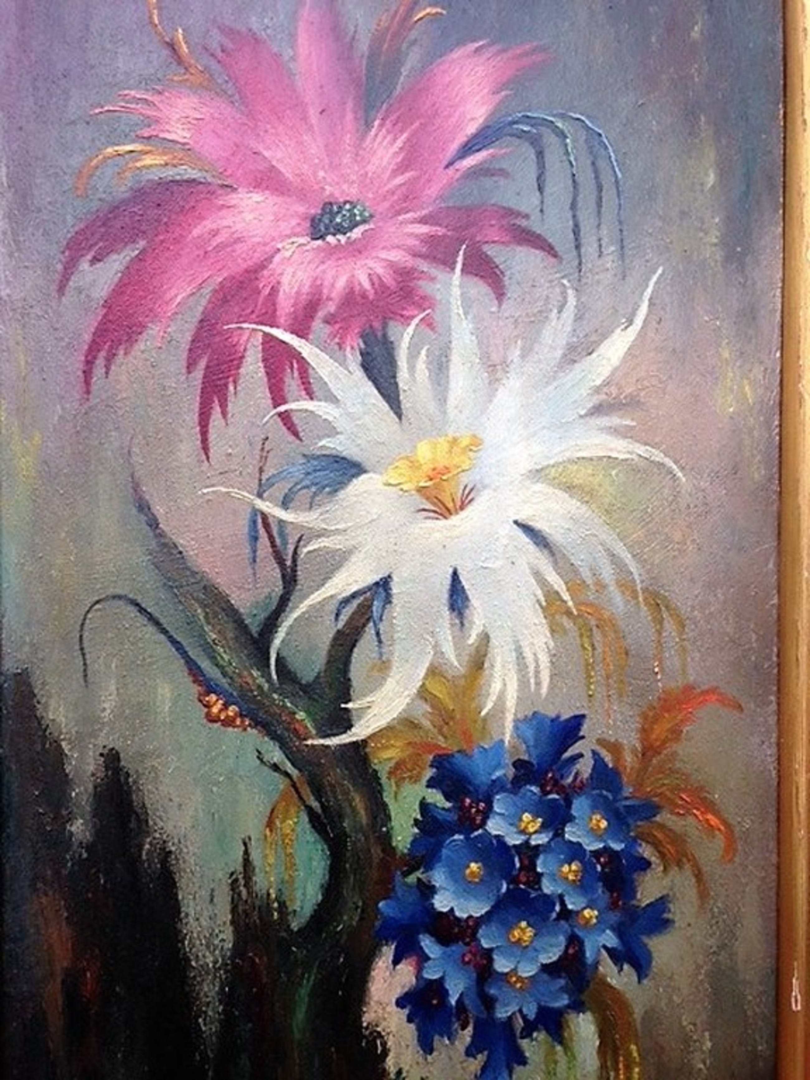 Fraai werk van Clement Sielens (1960). Voorstellende: Exotische bloemen. Techniek: olieverf op paneel. Gesigneerd aan de linker onderzijde. De afmetingen van het paneel zijn: 20,5 cm x 35 cm. Inclusief de lijst zijn de afmetingen: 36 cm x 51 cm. Het geheel verkeert in een mooie staat.