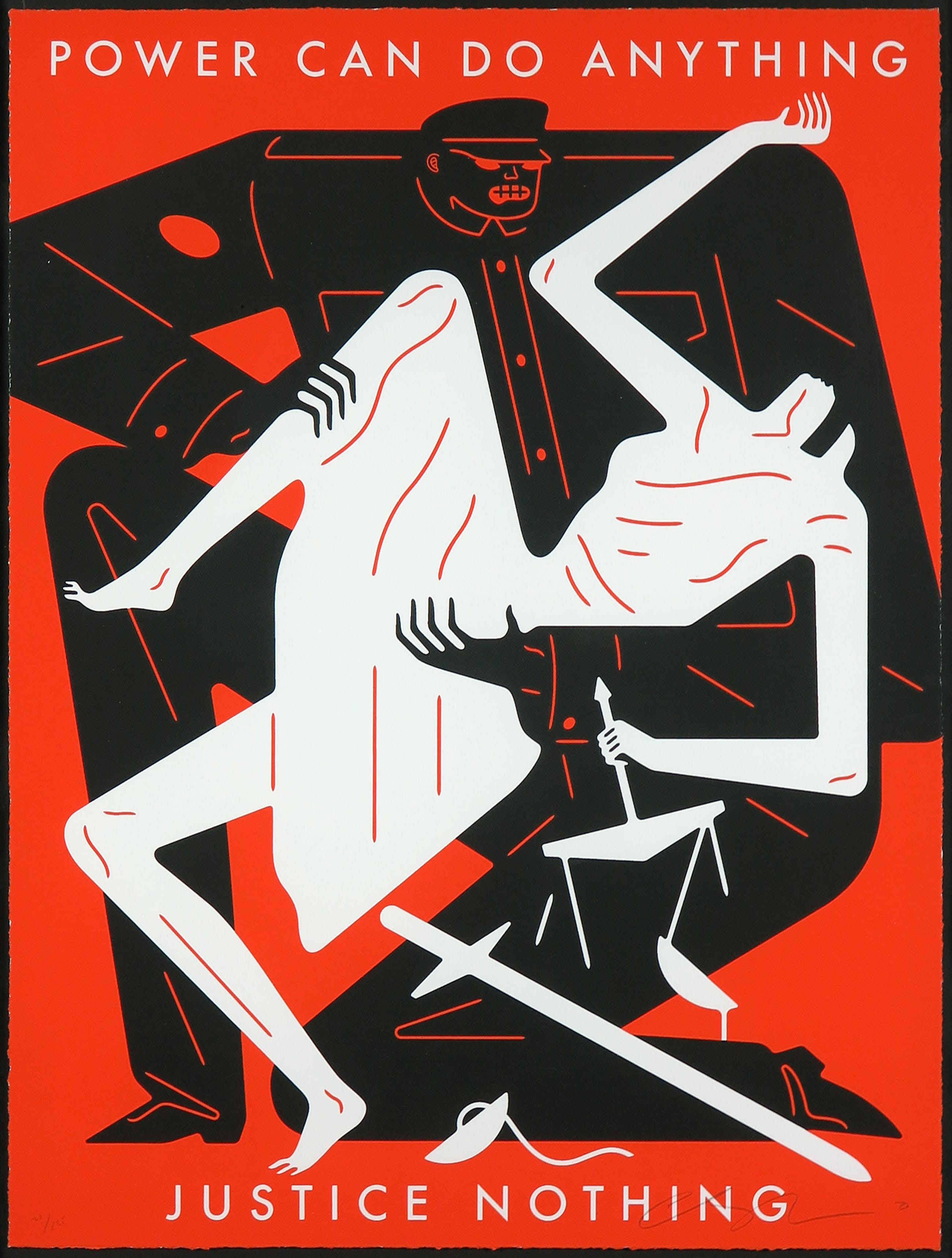 Bijzondere maatschappij-kritische zeefdruk door de Amerikaanse kunstenaar Cleon Peterson. Deze zeefdruk, uit 2020 en uitgegeven in een oplage van 125 exemplaren, is ontworpen als kritiek op de regering van Donald Trump.