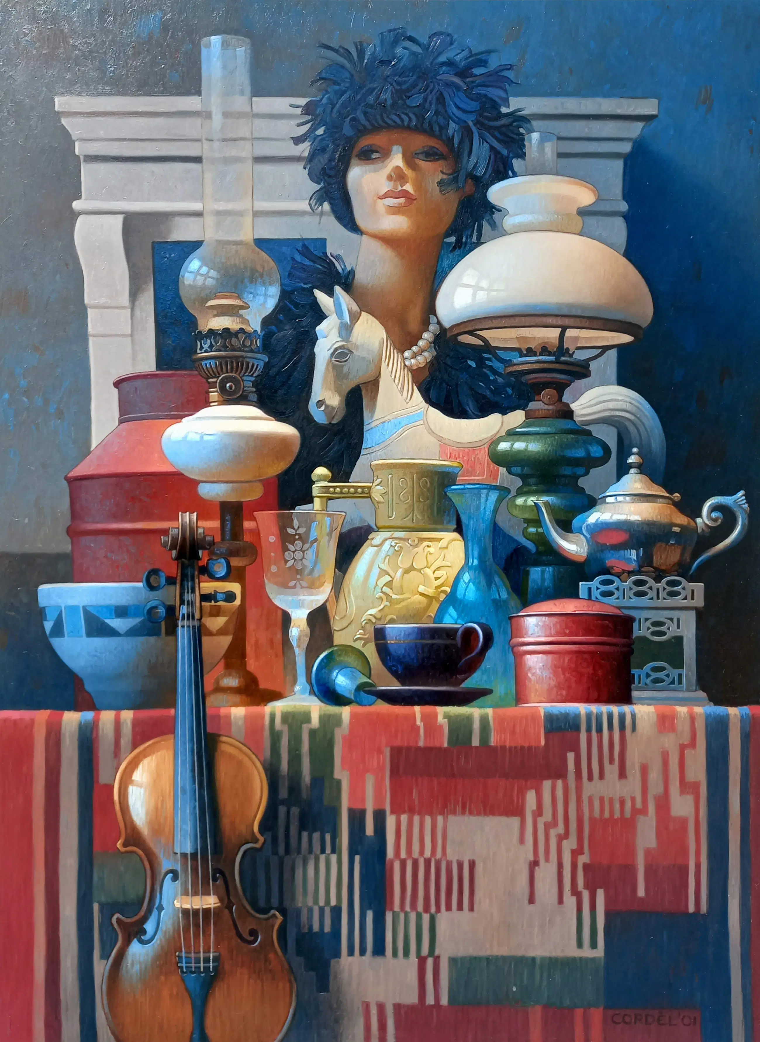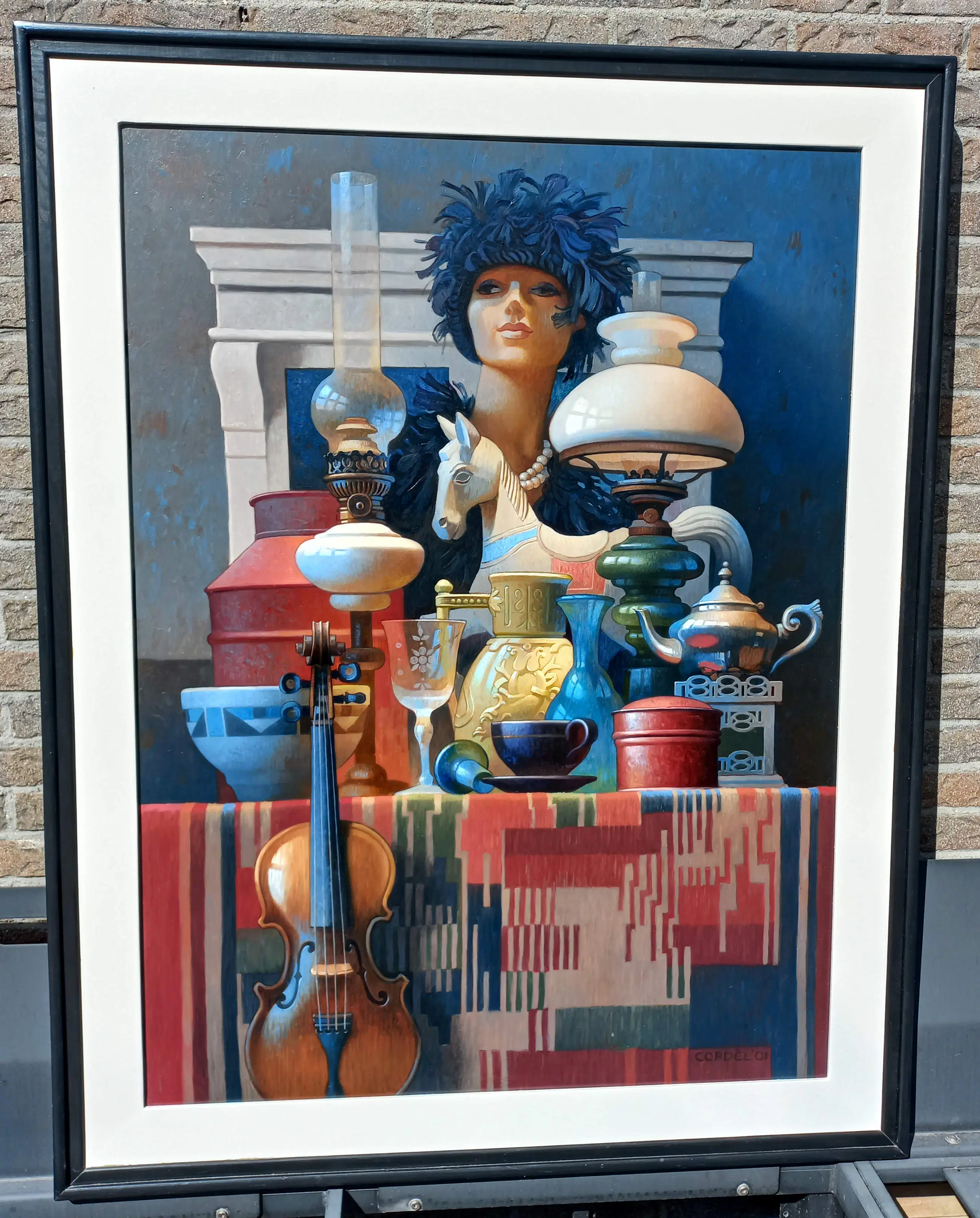 Prachtig, groot werk van één van de grote Realisten uit het Noorden; Co Cordel (Epko Terpstra). Opgeleid aan de Academie Minerva (1977-1983) en vooral bekend van zijn bijna magisch realistische stillevens.