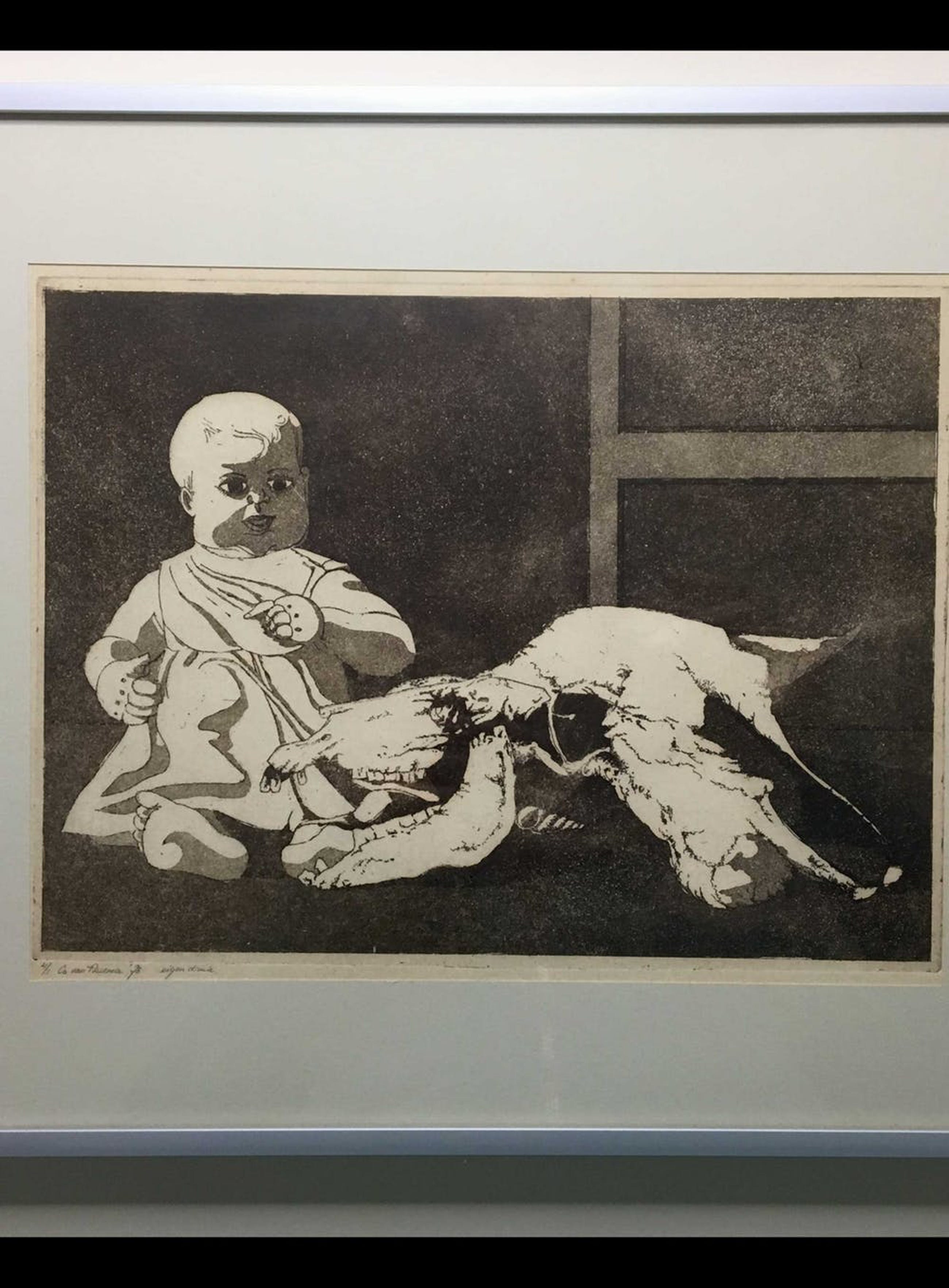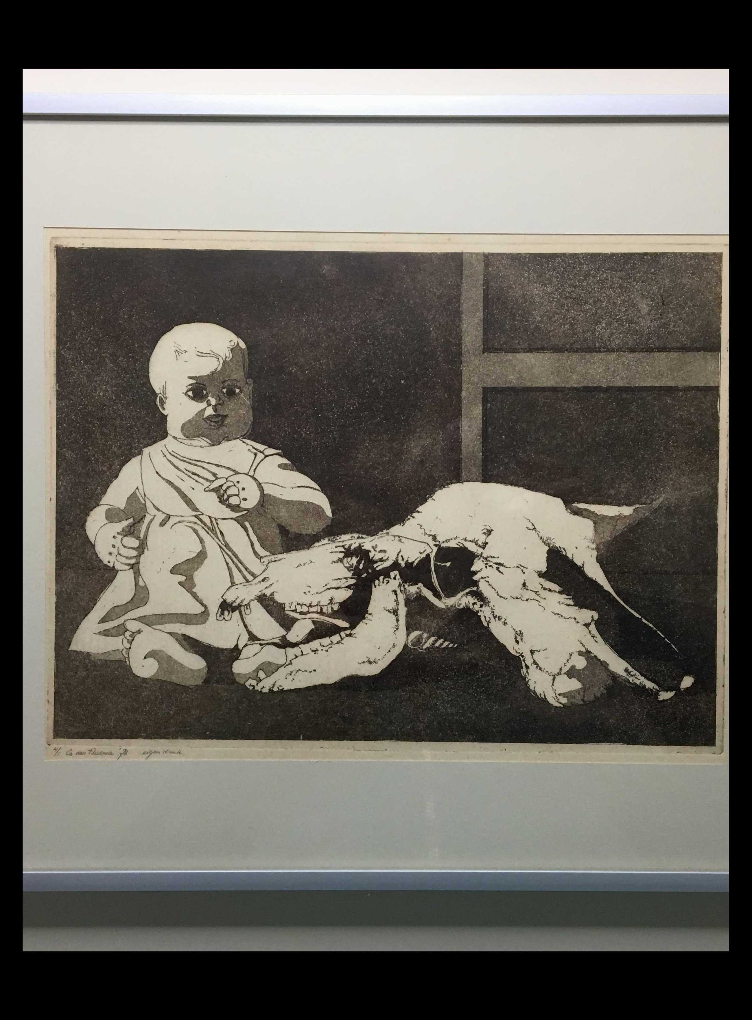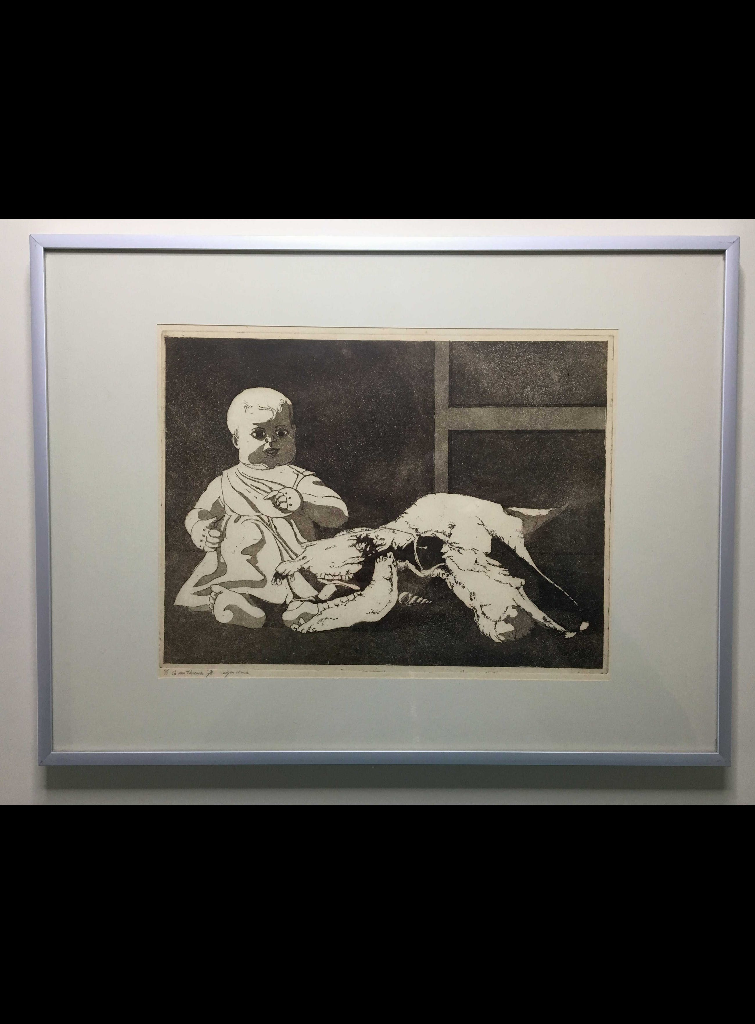 Bijzonder stilleven zonder titel. Droge naad techniek. Ets uit de beginperiode van het oevre van Co van Assema. Hij was op dat moment pas 23. Intrigerend, lieflijk, en tegelijkertijd de vergankelijkheid tonend van de aardse dingen.