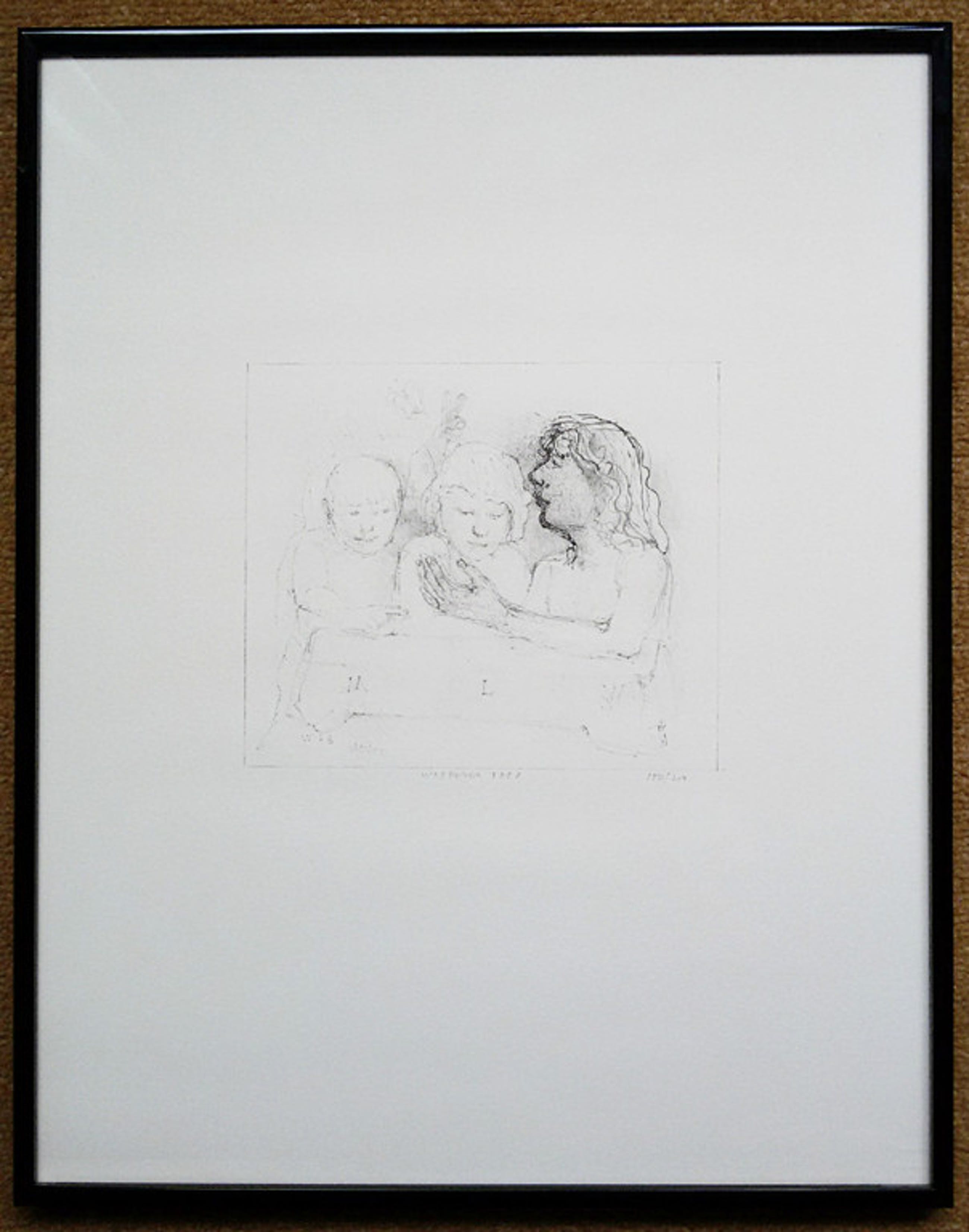Persoonlijk zou ik een grijs passe-partout om het beeld heen doen om het te focussen. Zonder passe-partout wordt het beeld een beetje overweldigd door het grote witte blad eromheen.