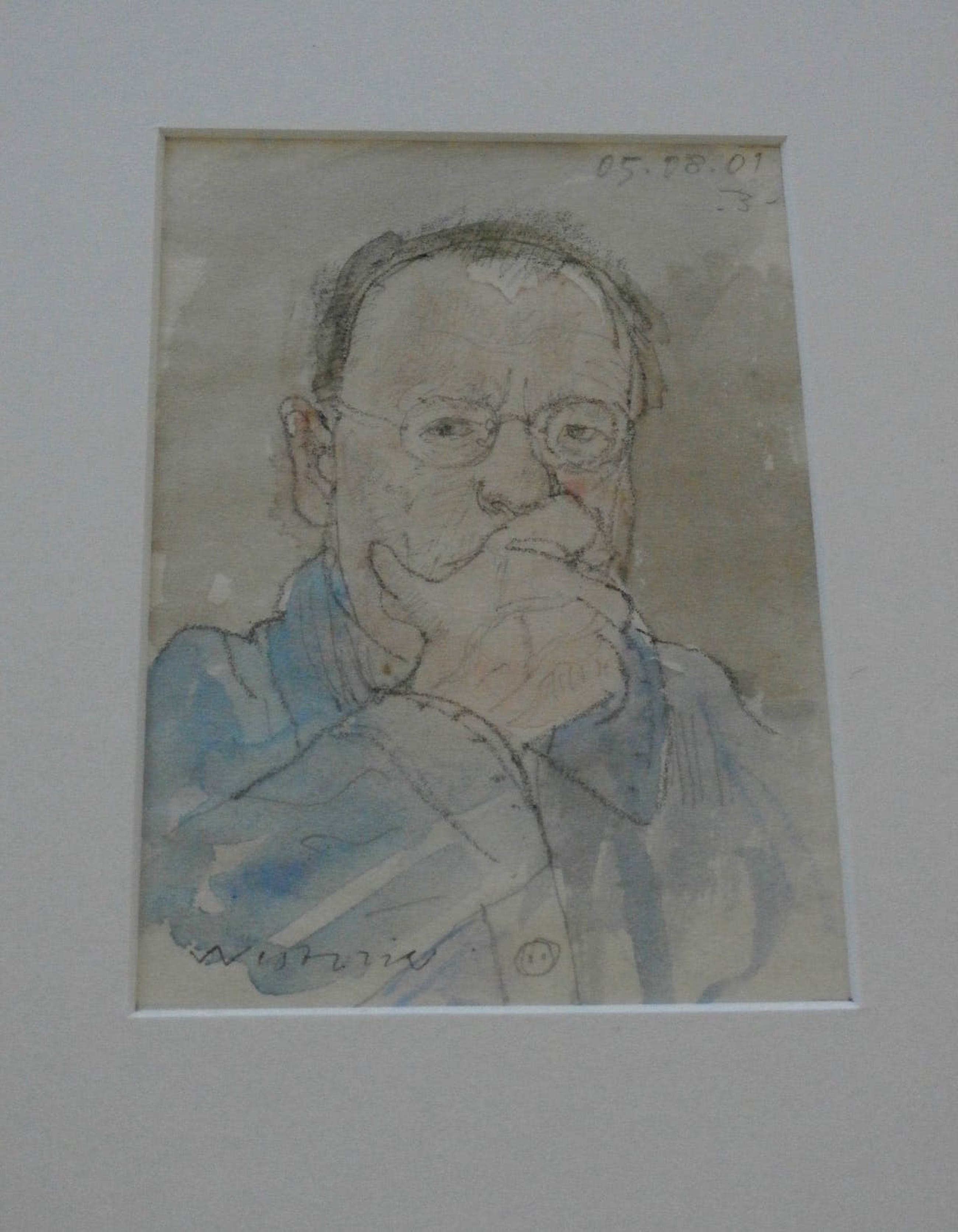 Aquarel van Co Westerik. Datum: 5/8/ 2001. Titel: Zelfportret. De authenticiteit van het aangeboden werk wordt voor 100% gegarandeerd. Een certificaat van echtheid kan, op aanvraag worden gemaild.