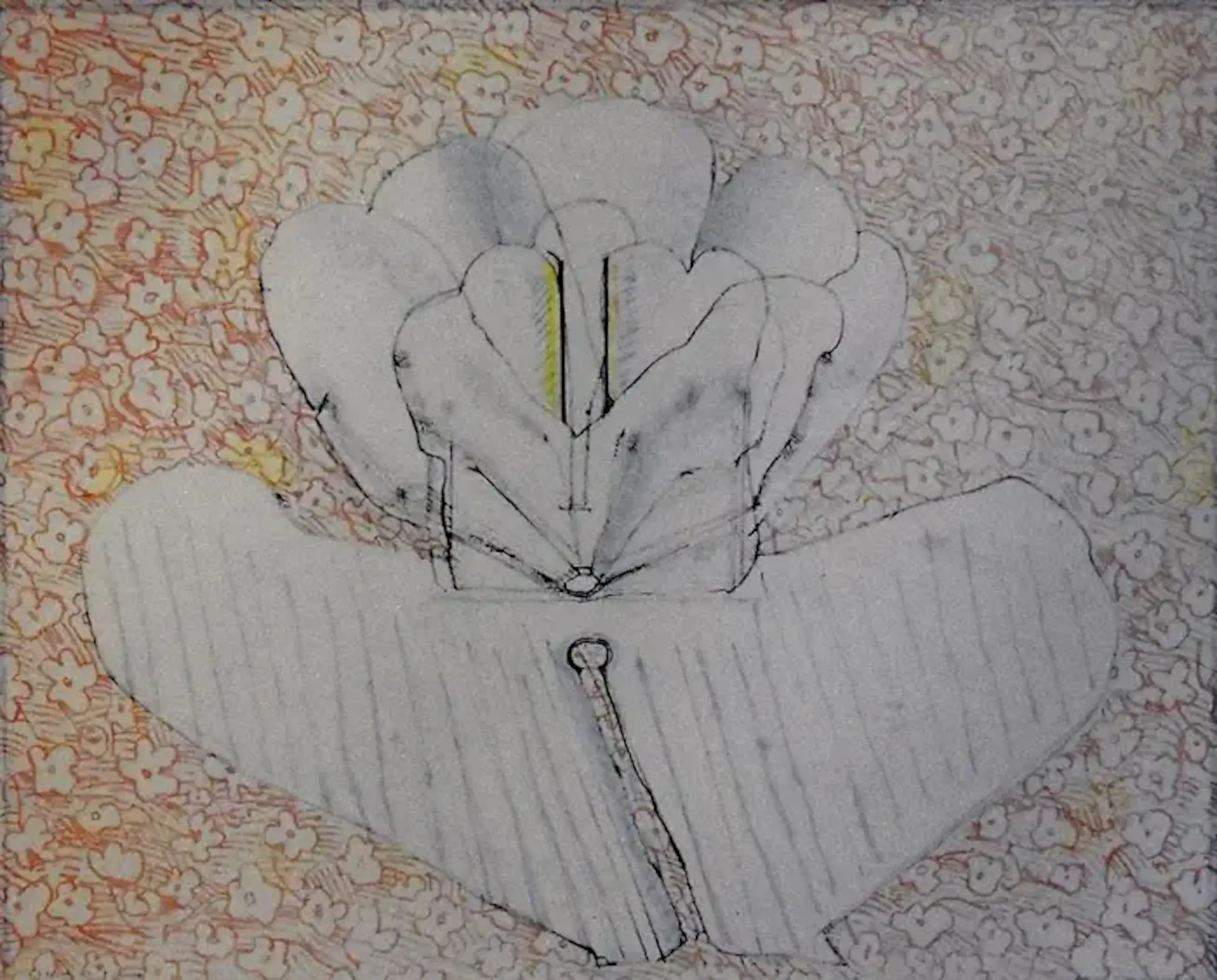 Co Westerik - Kleurenlitho: "Bloemornament" - 1987 (nette lijst!)