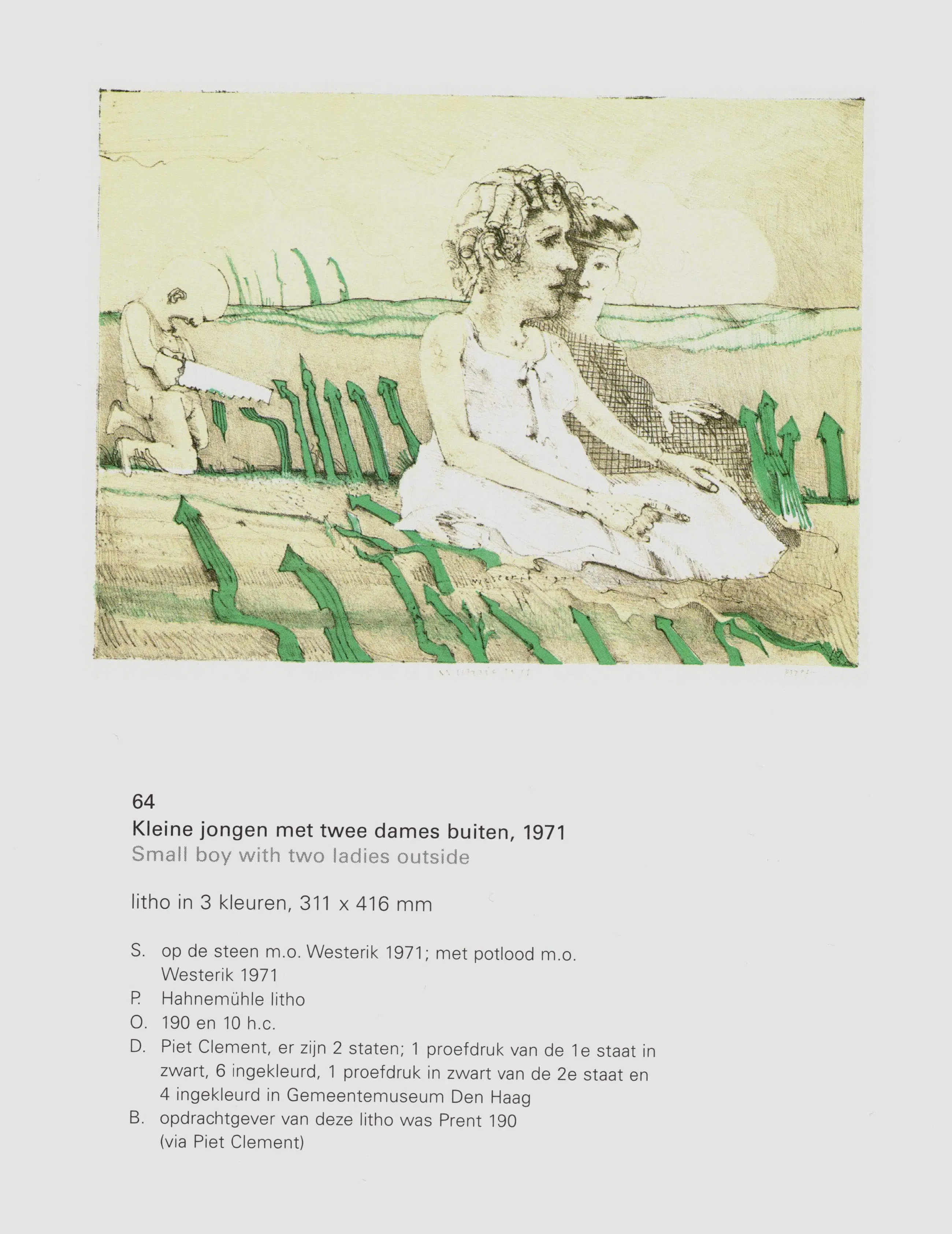 Co Westerik - Kleine jongen met twee dames buiten, litho